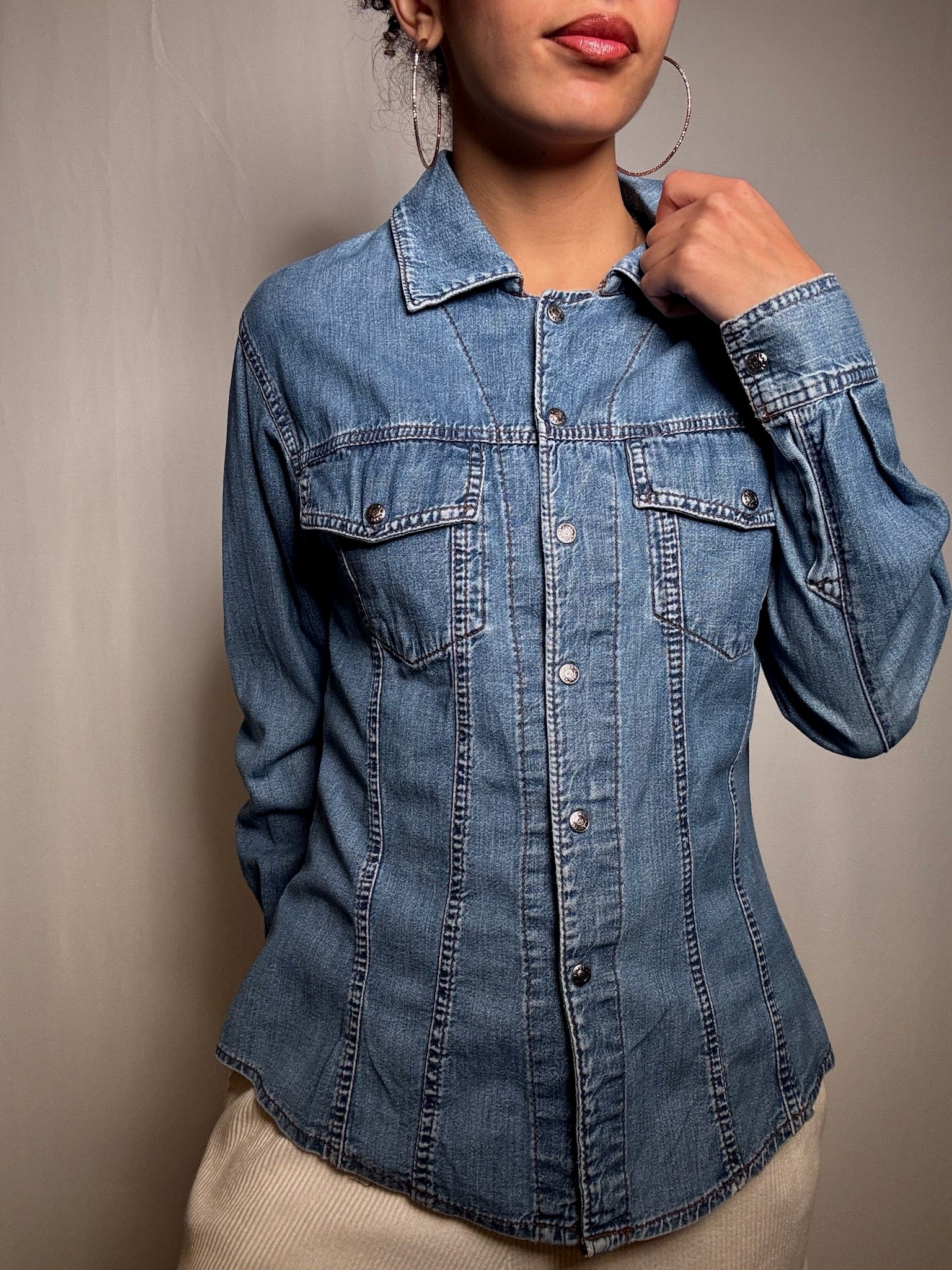 Chemise en denim cintrée S/M vintage