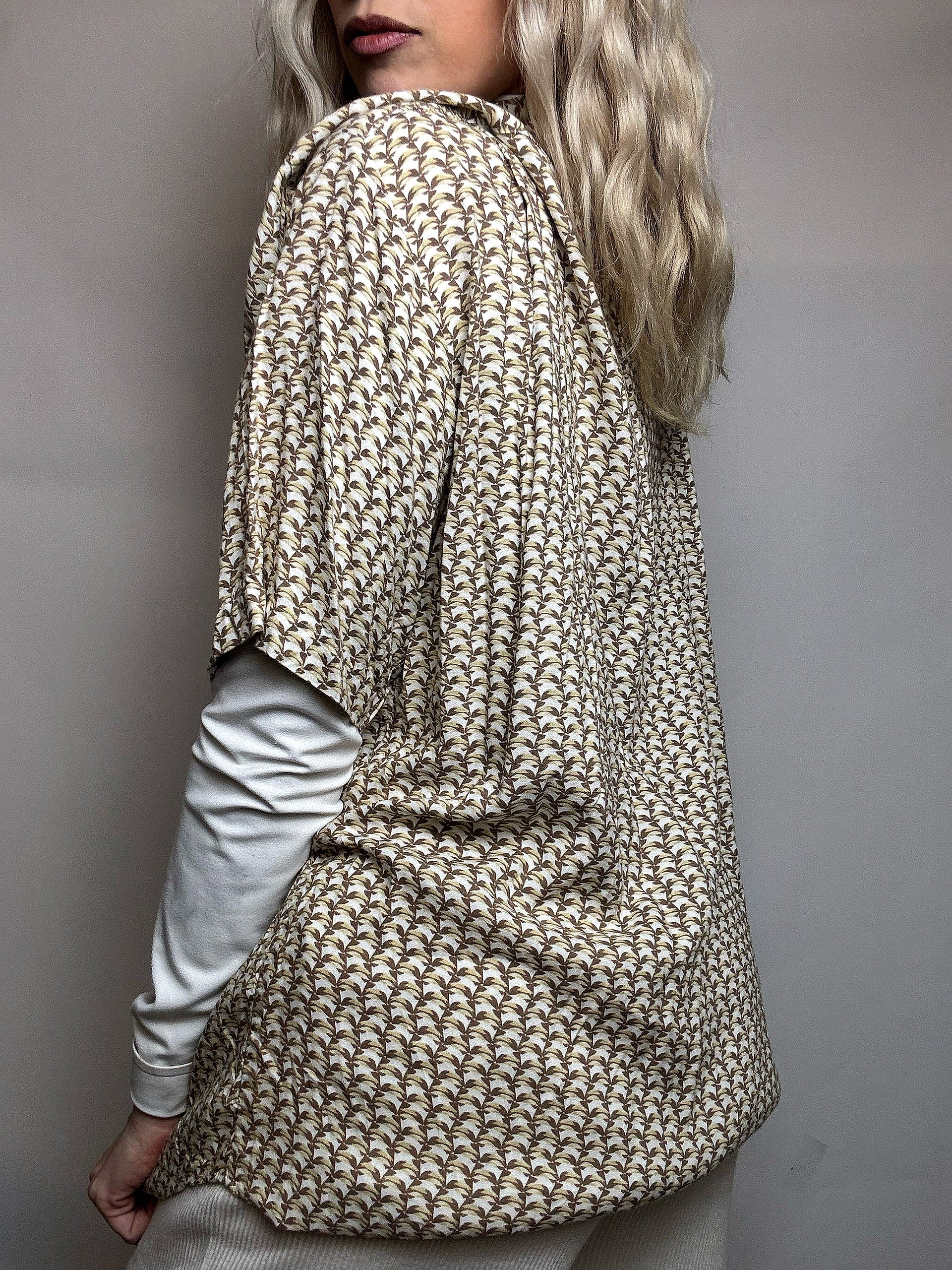 ses graphsismes ! Elle est en viscose, légère et fluide, et se porte aussi bien ouverte sur un tee shirt blanc et un short en jean ou fermé tuck in dans un pantalon taille haute ...