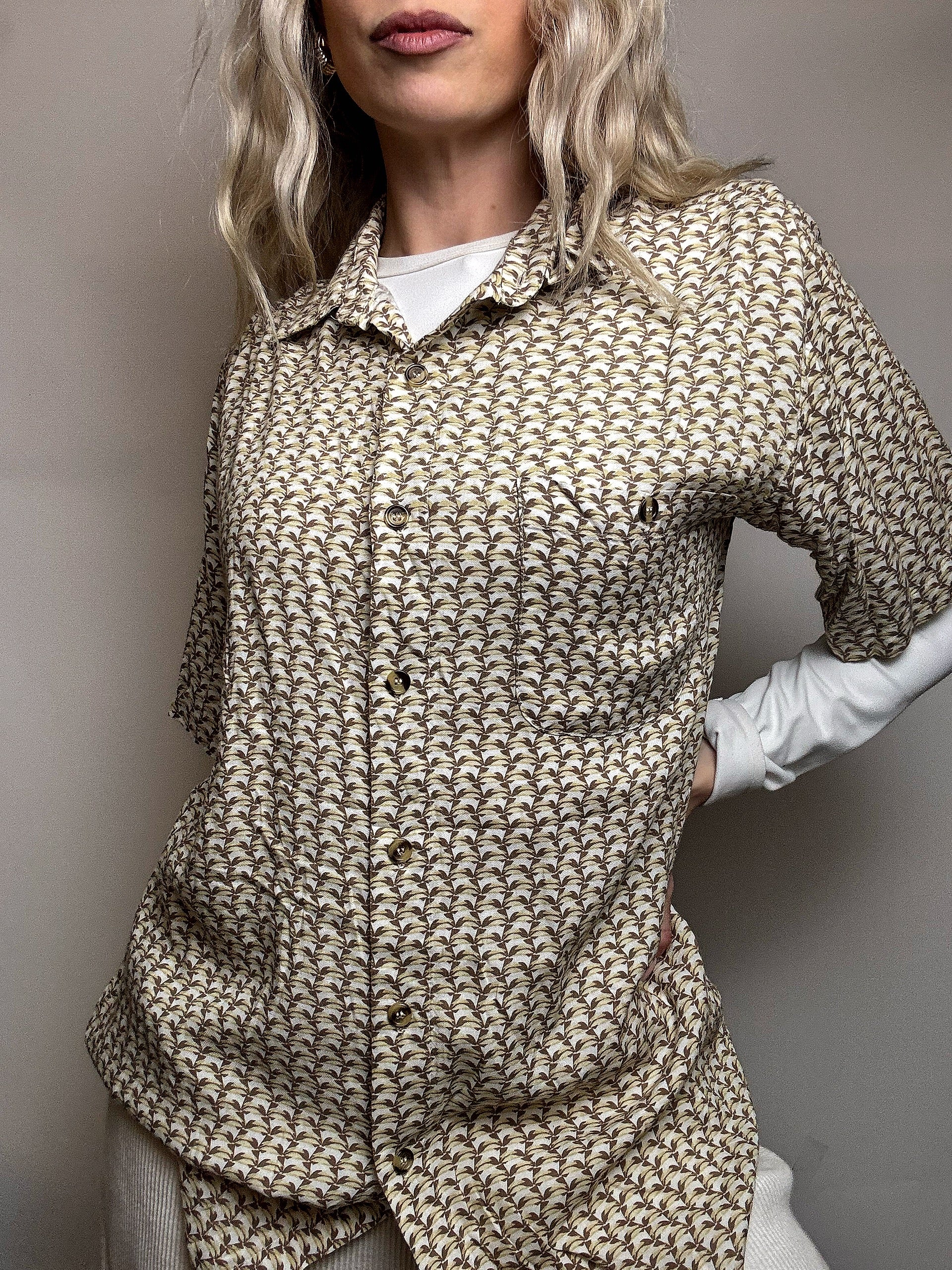 Chemise fluide à manches courtes graphique L vintage