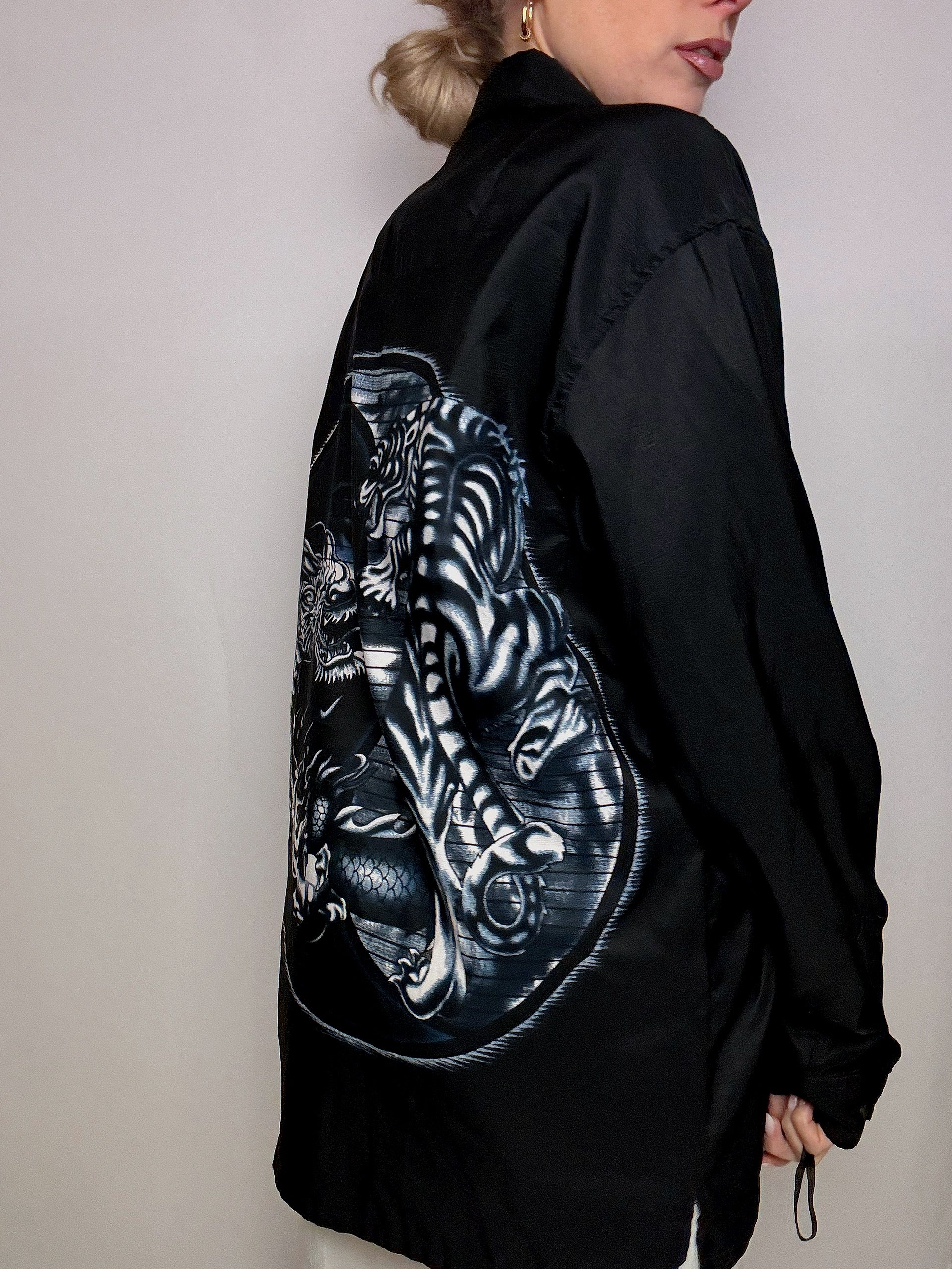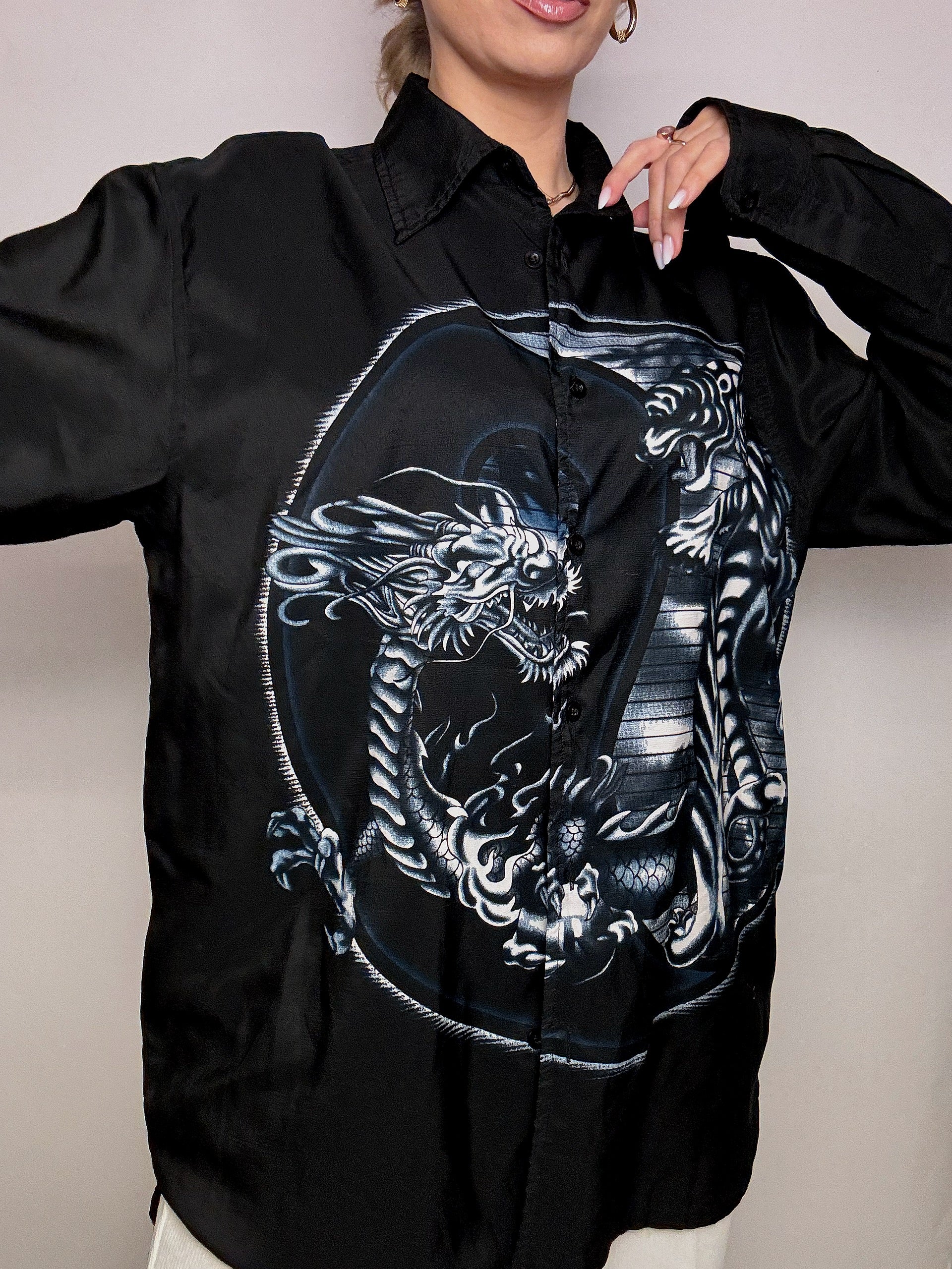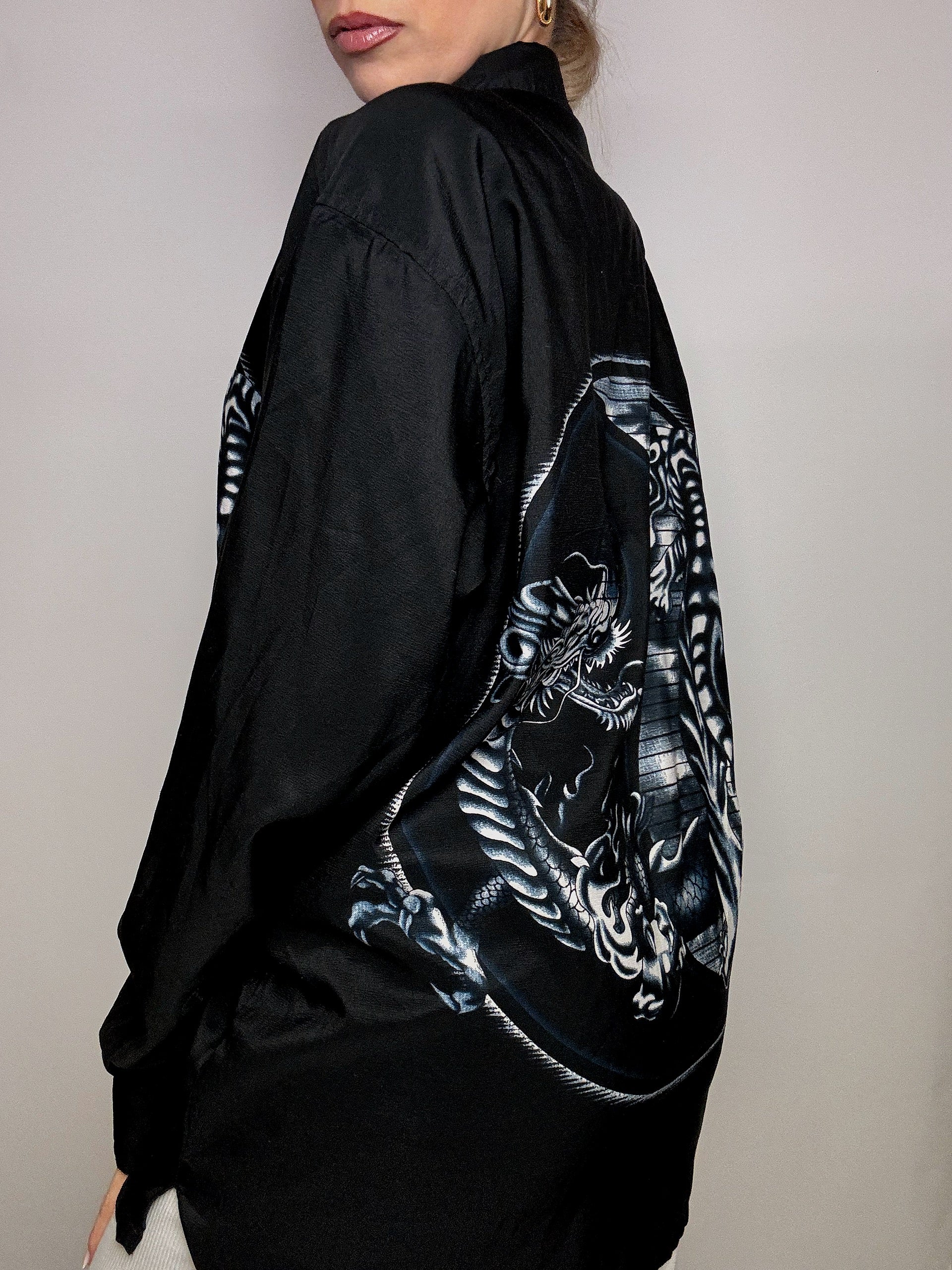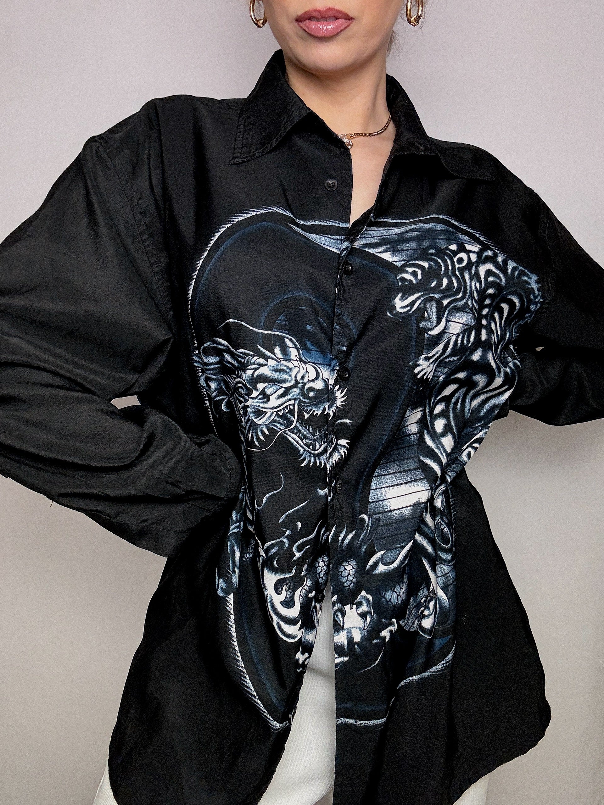 Chemise fluide dragon noire L/XL vintage