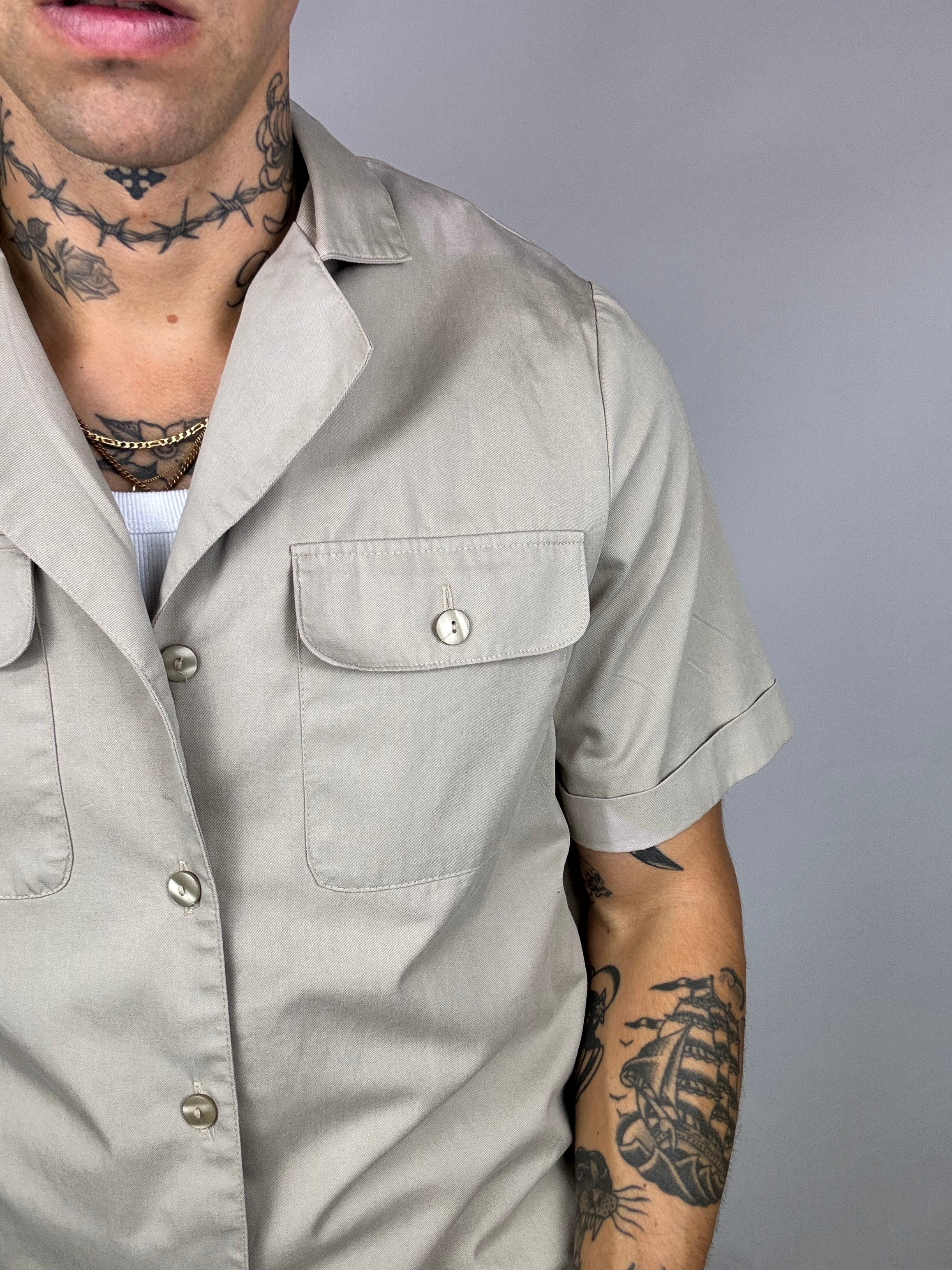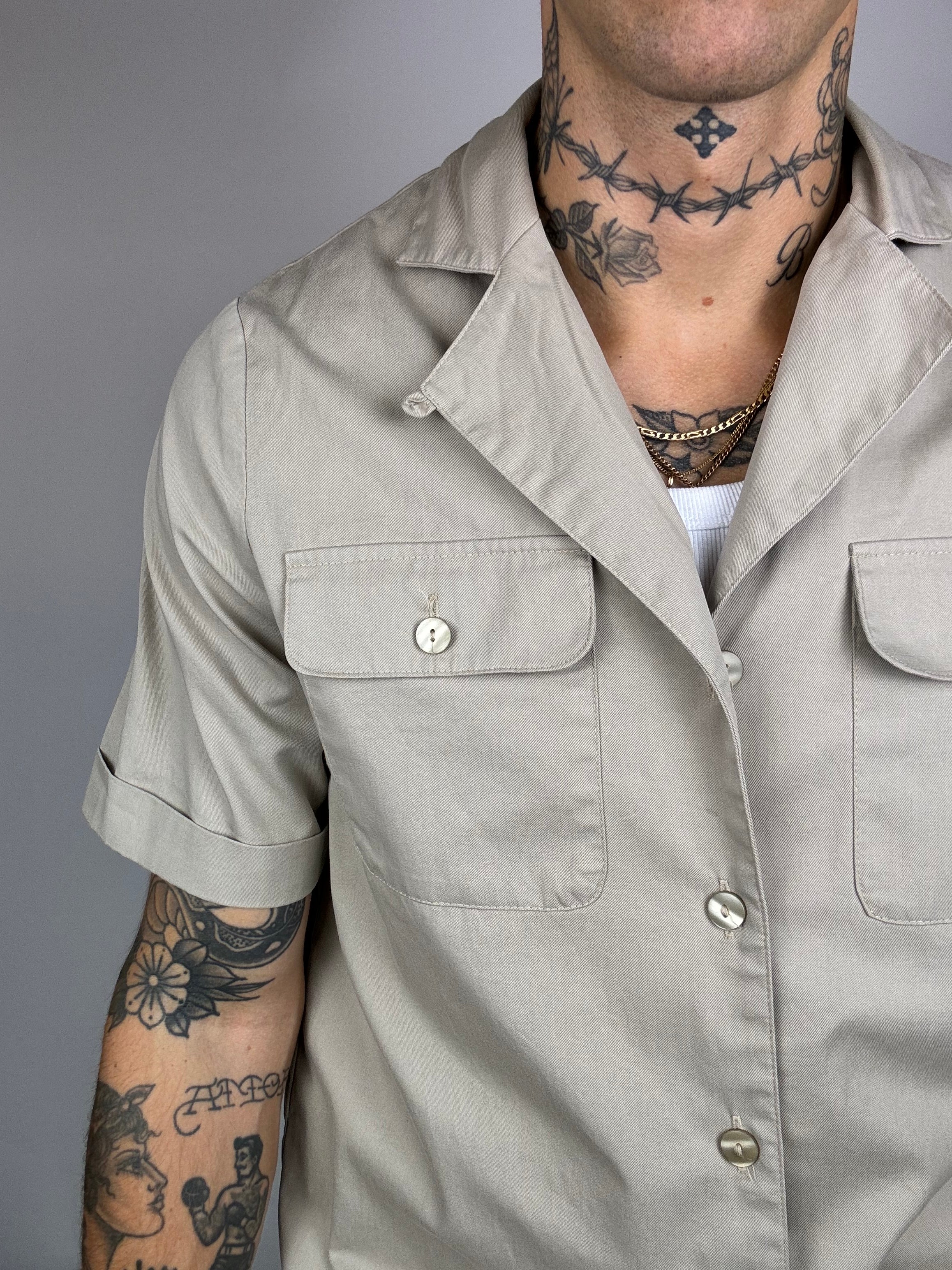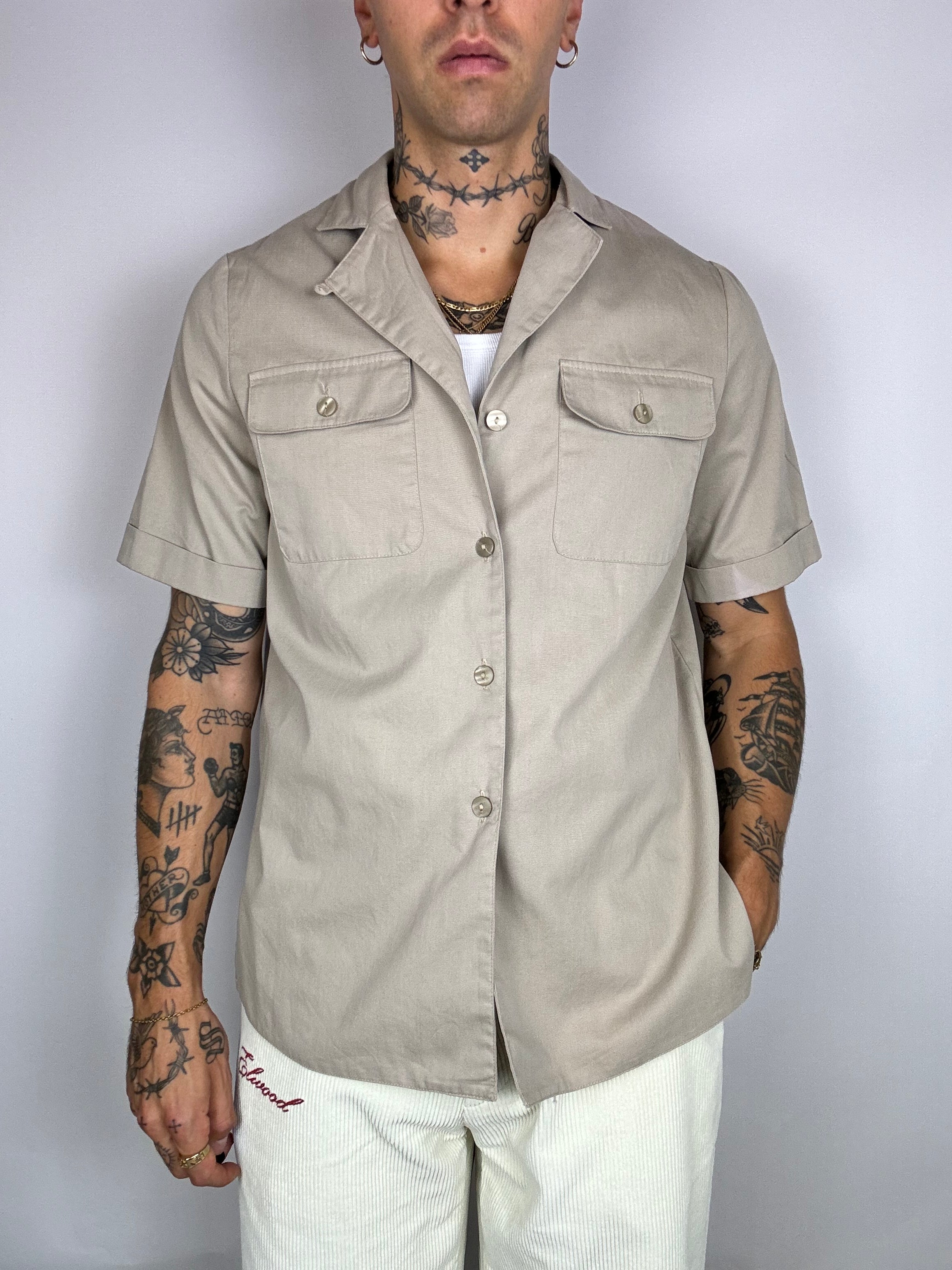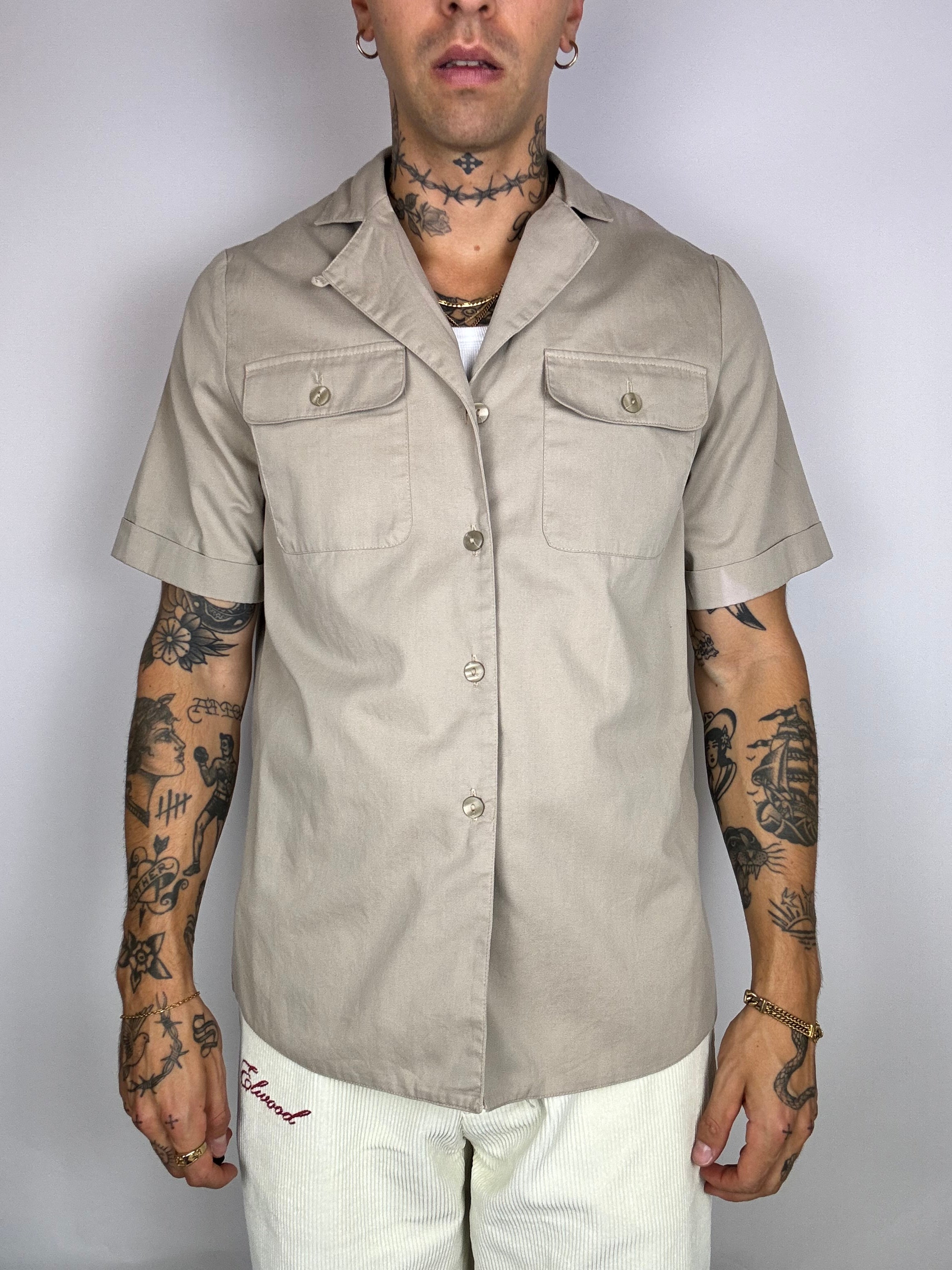 Chemise manche courte denim beige