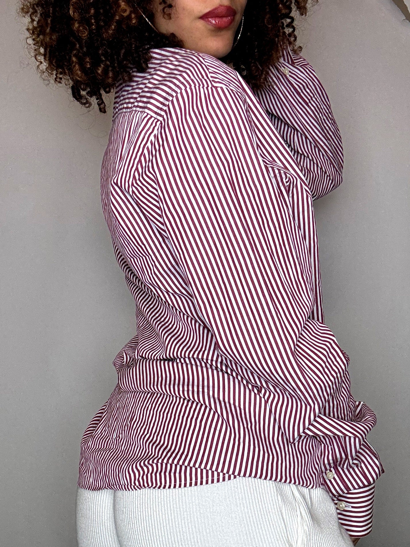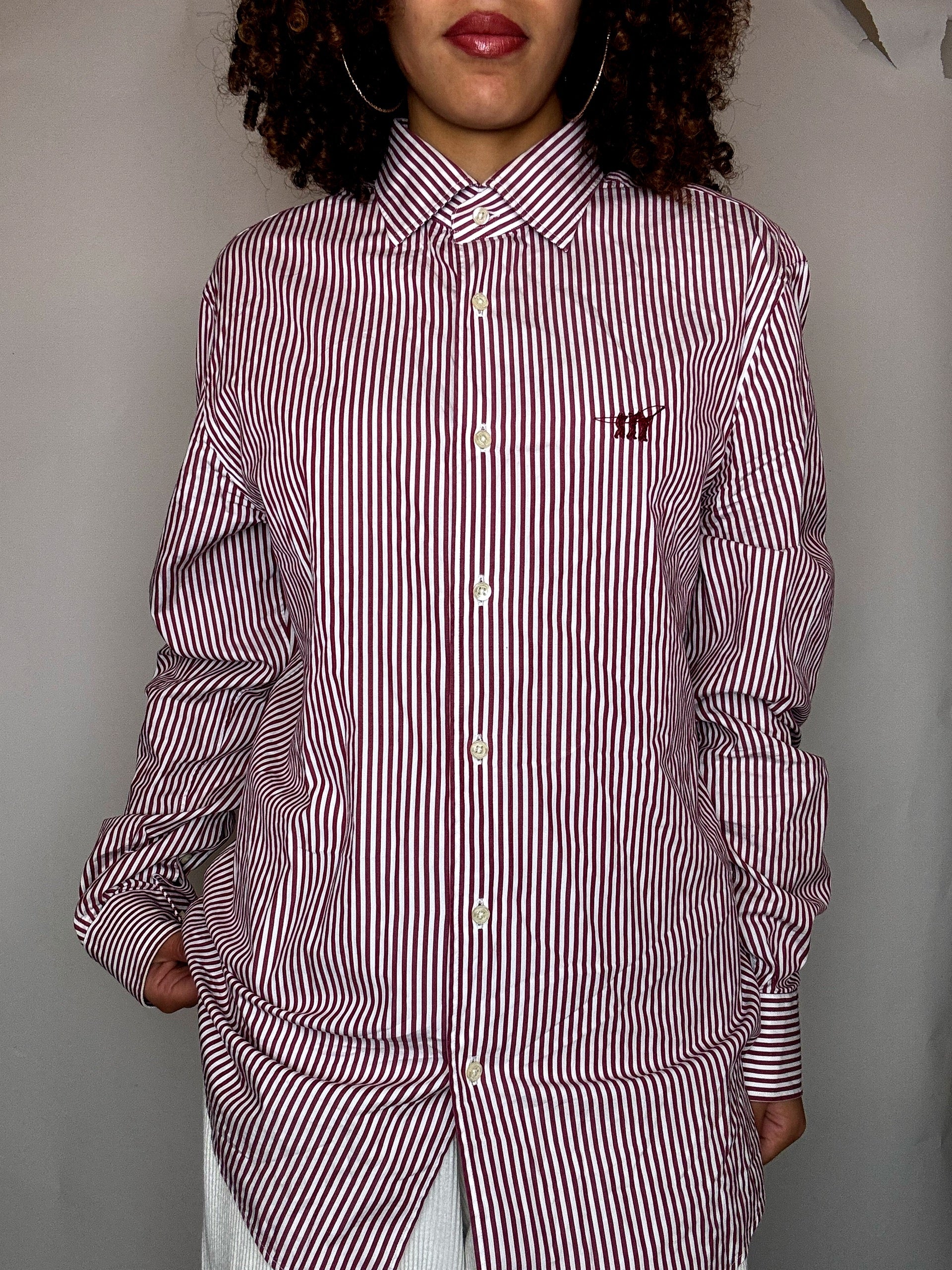 Chemise rayée blanche et rouge L vintage