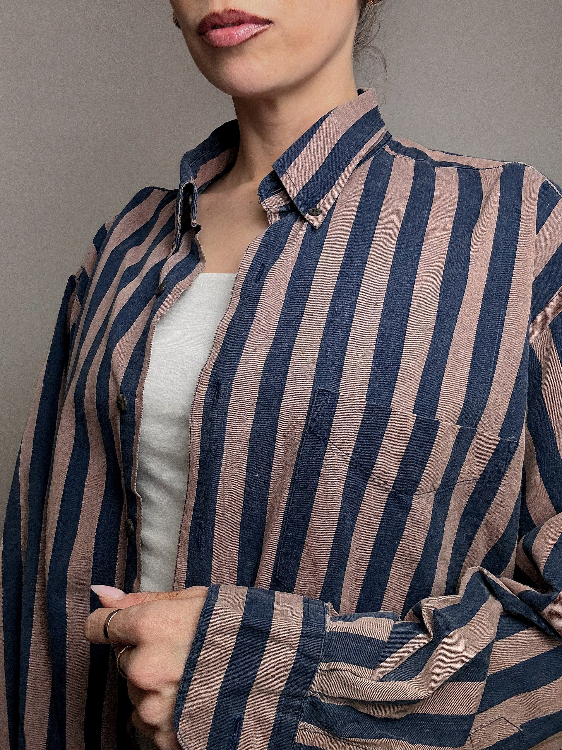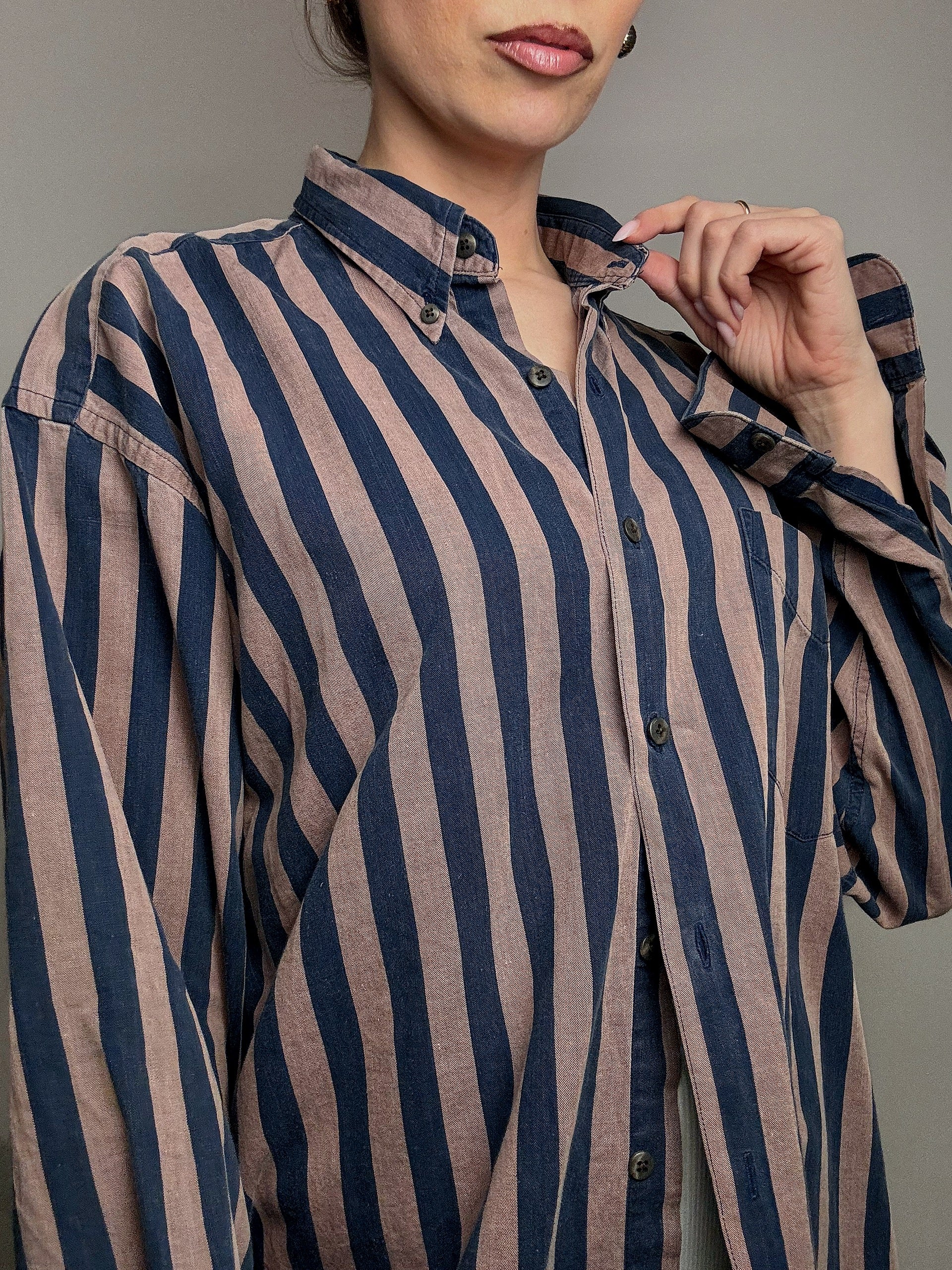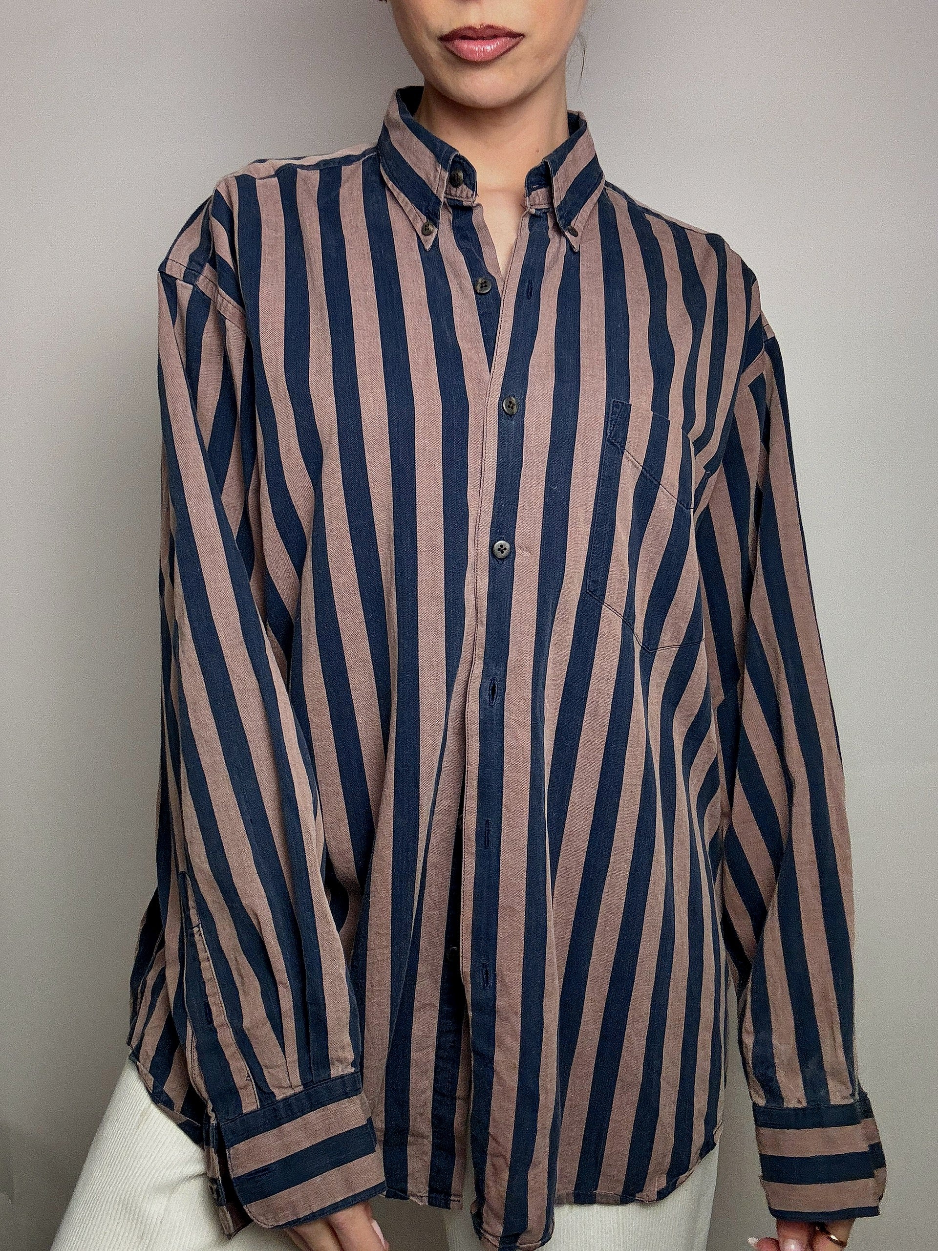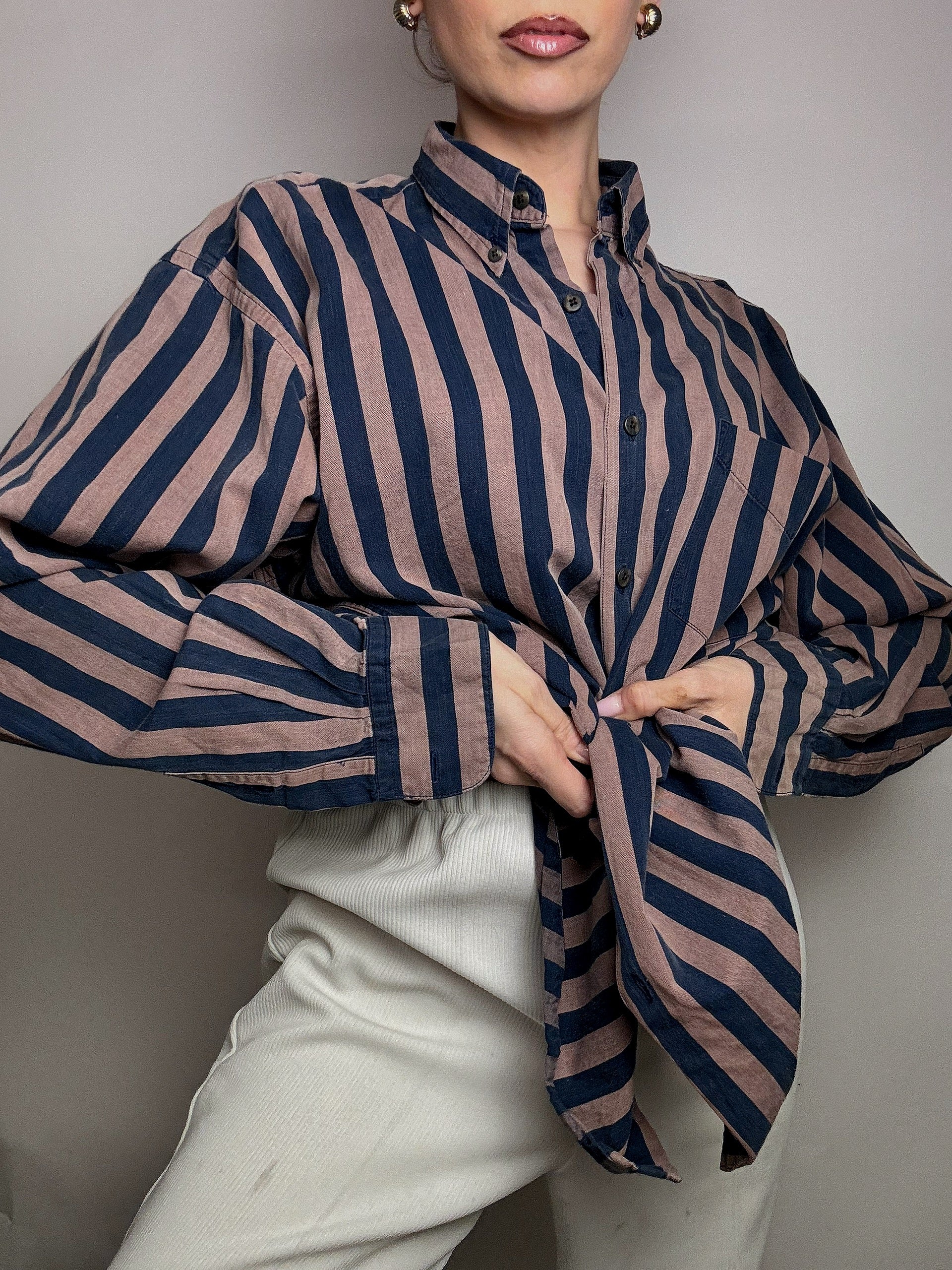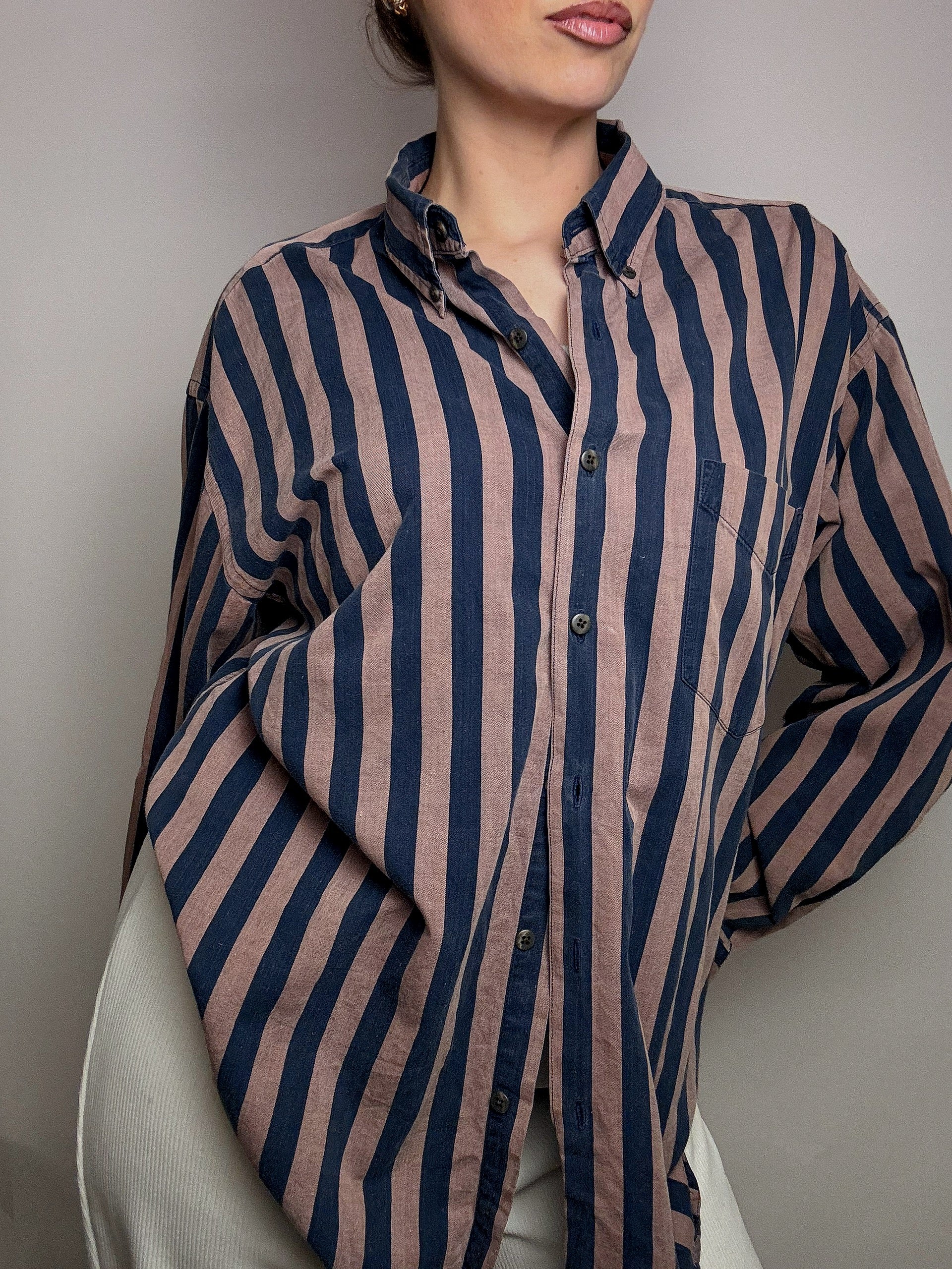 Chemise rayée brun et marine GAP L vintage