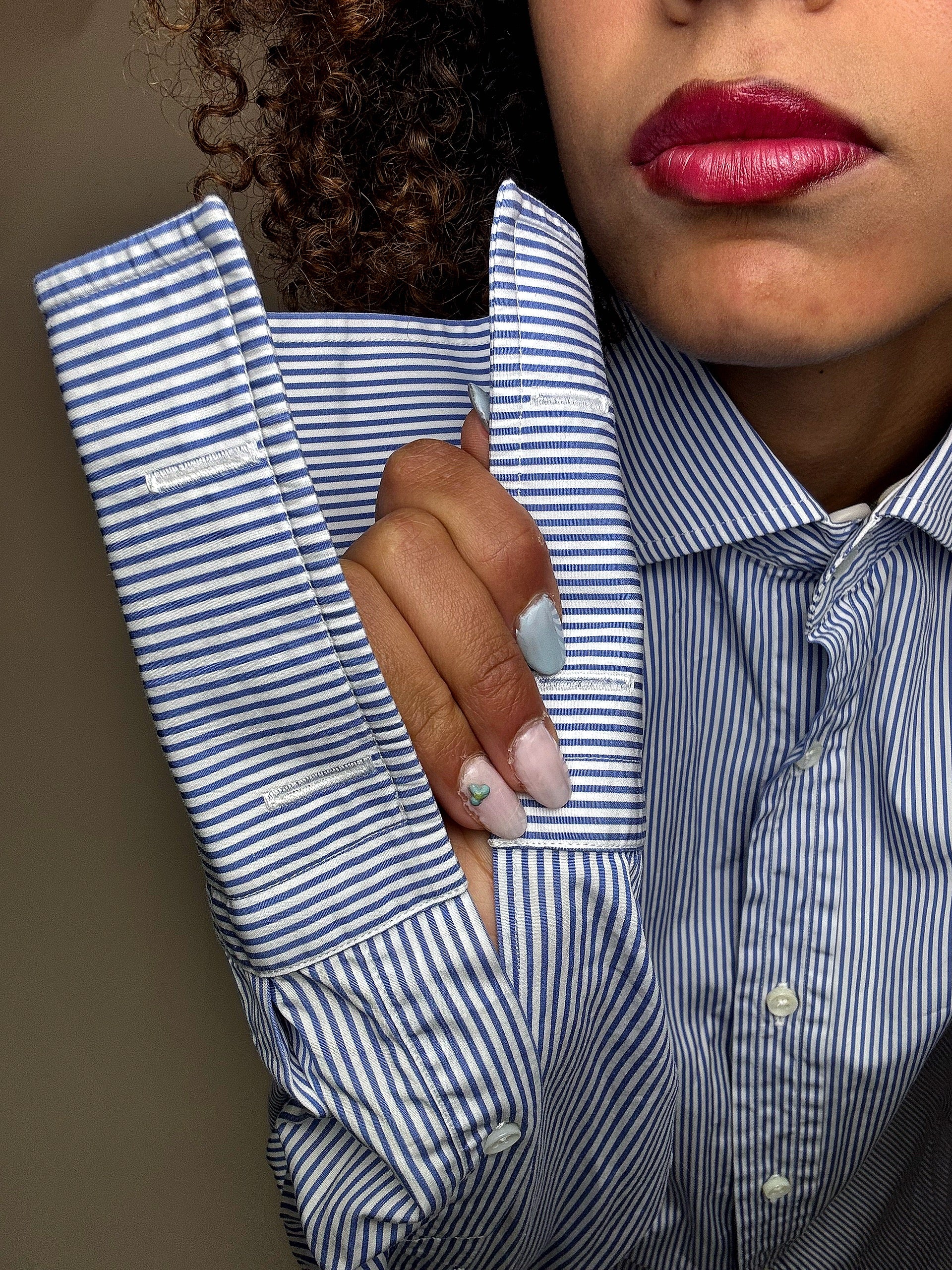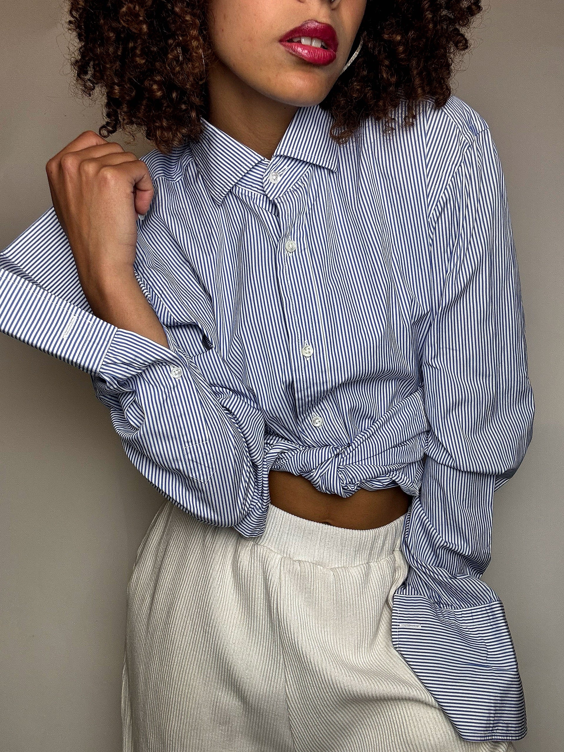 Celle ci a des emmanchures pour bouton de manchettes : 2 fois plus longues : on aime !