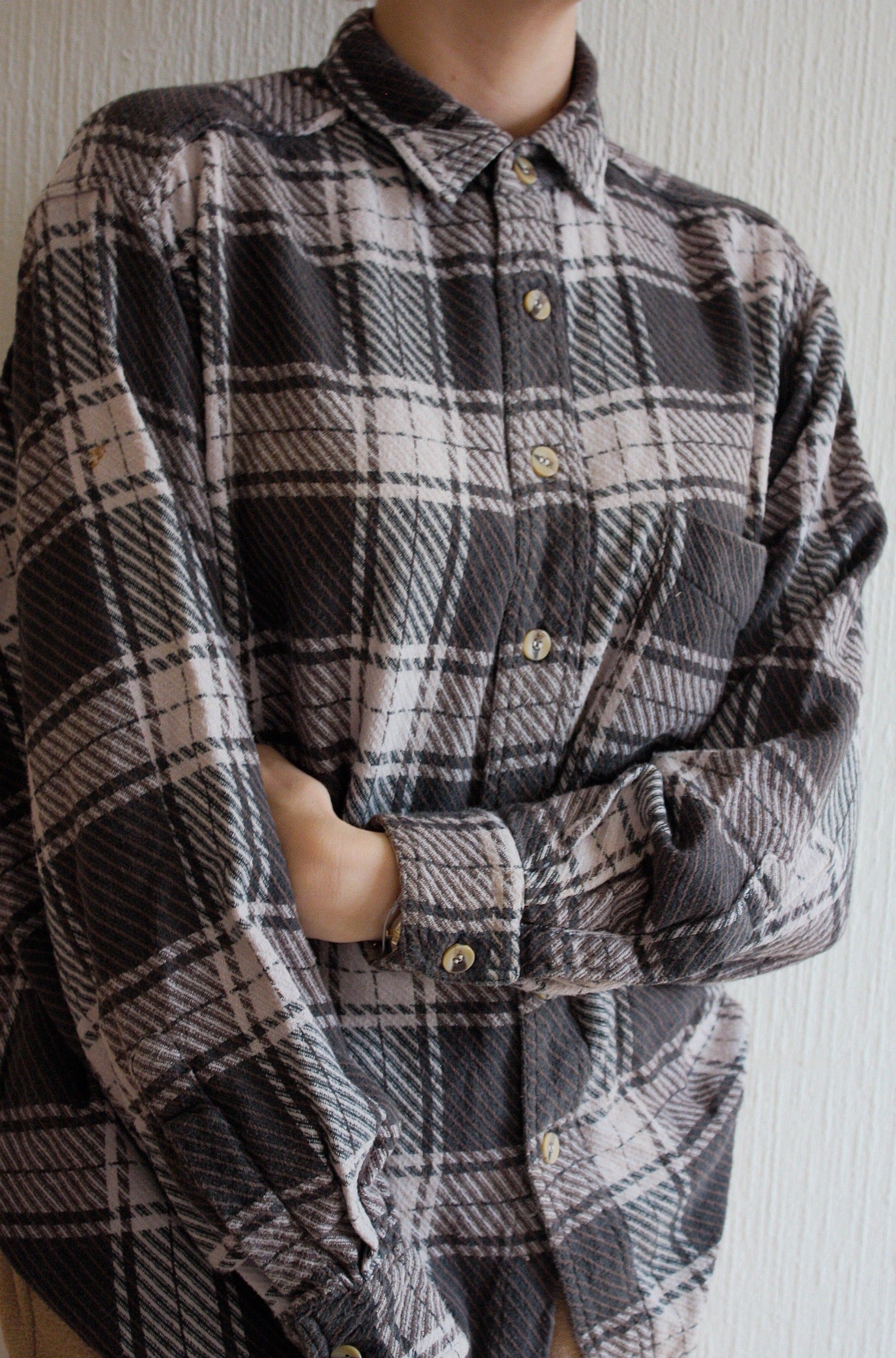 Chemise Vintage 80/90s à carreaux gris/brun/beige L