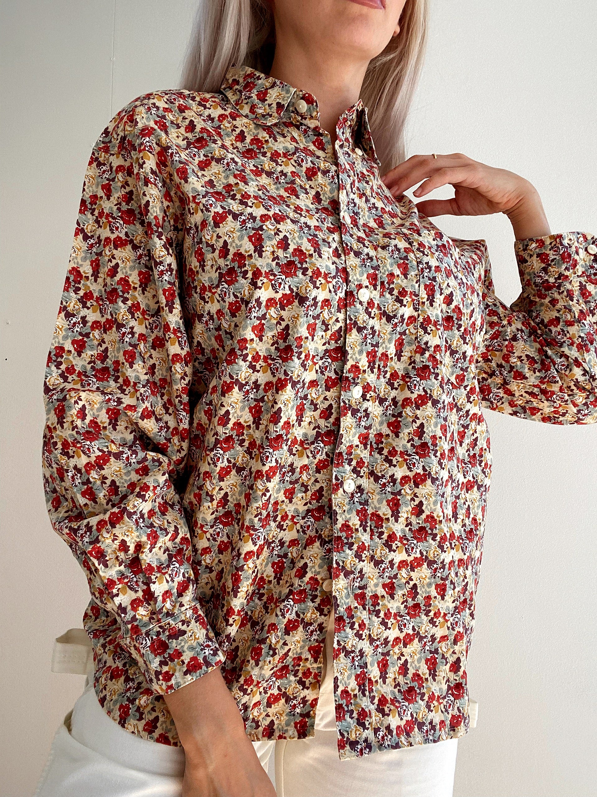 Chemise Vintage 80/90s à fleurs rouges et beiges S