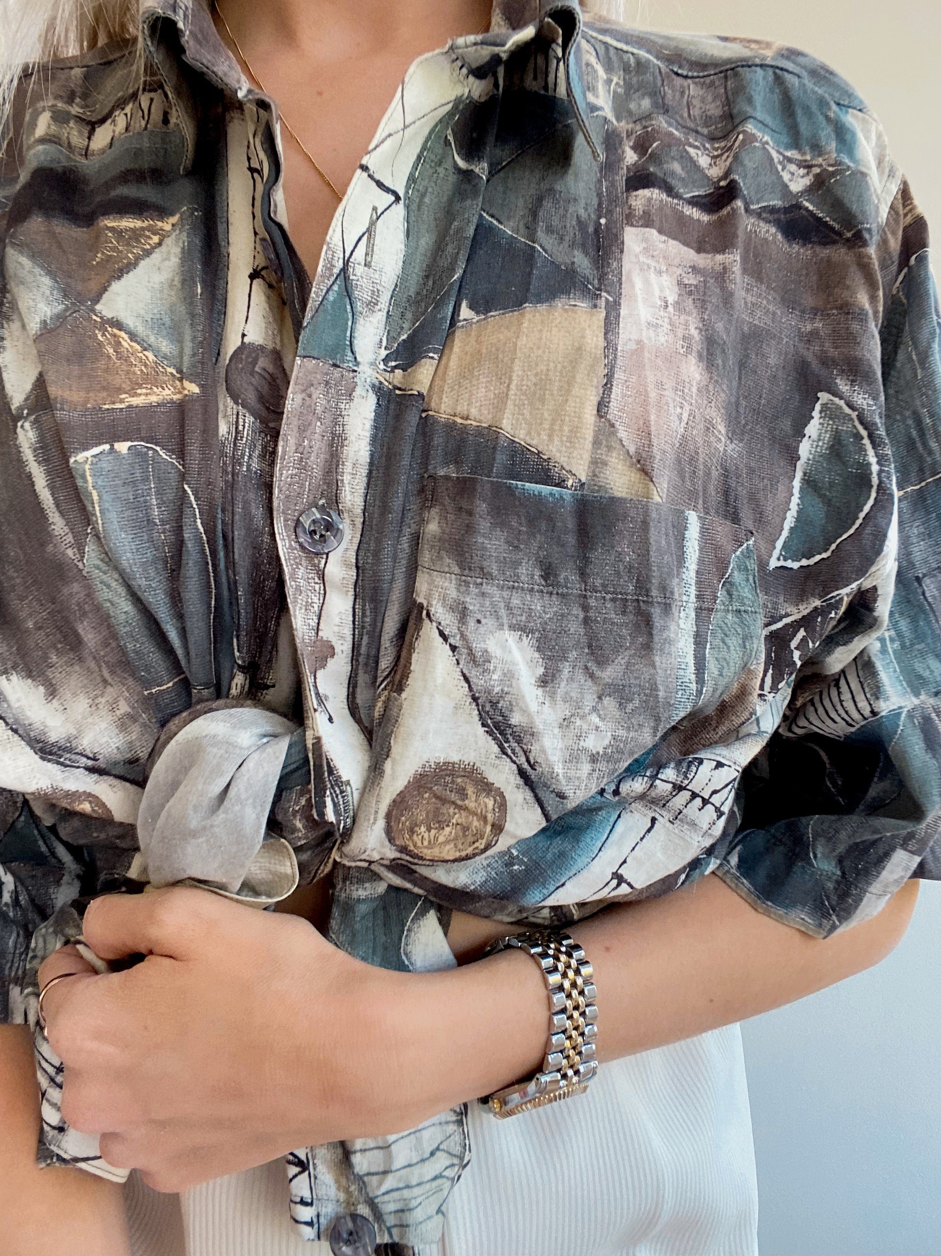 Chemise Vintage 80/90s à motifs gris/beiges