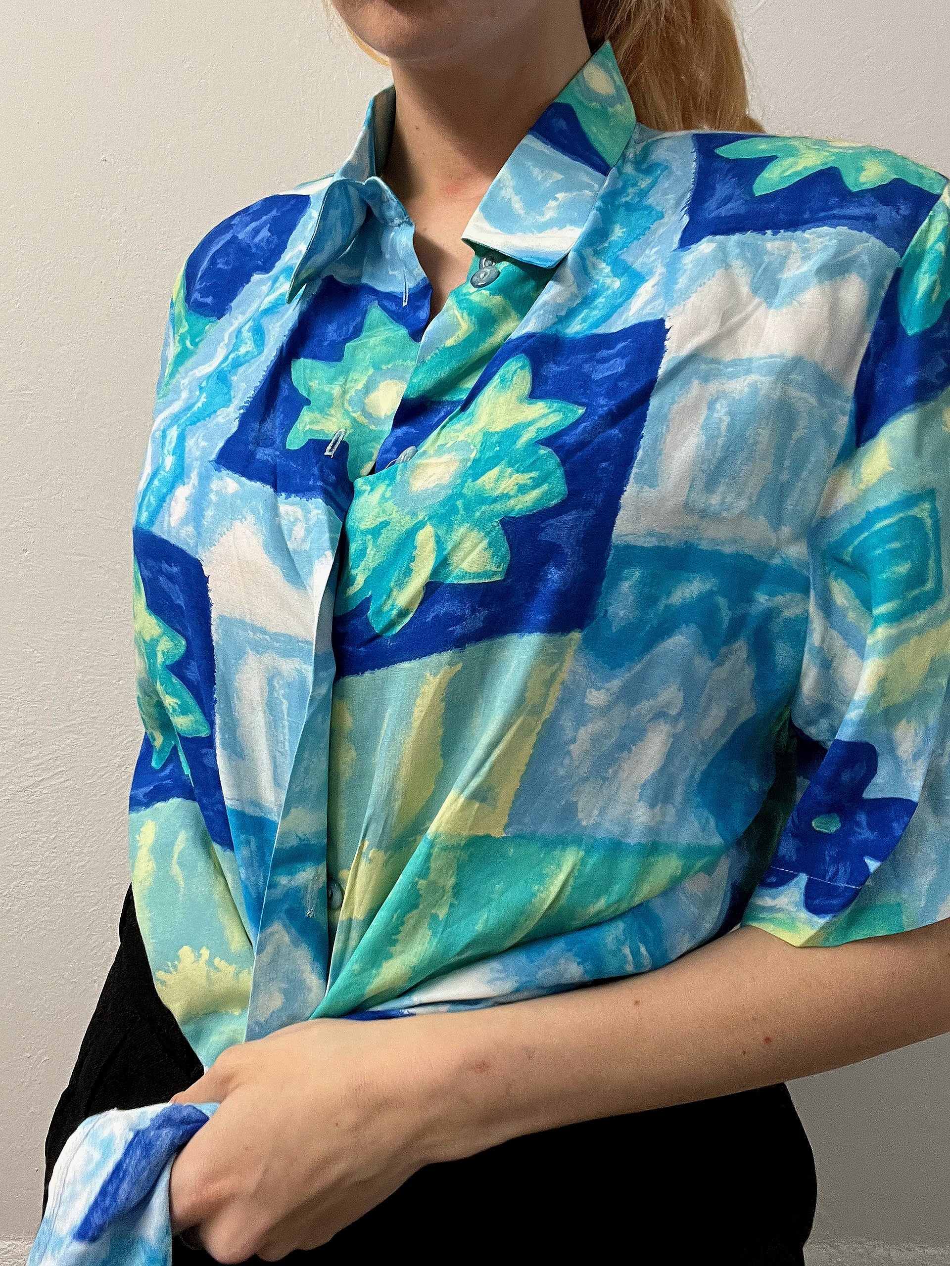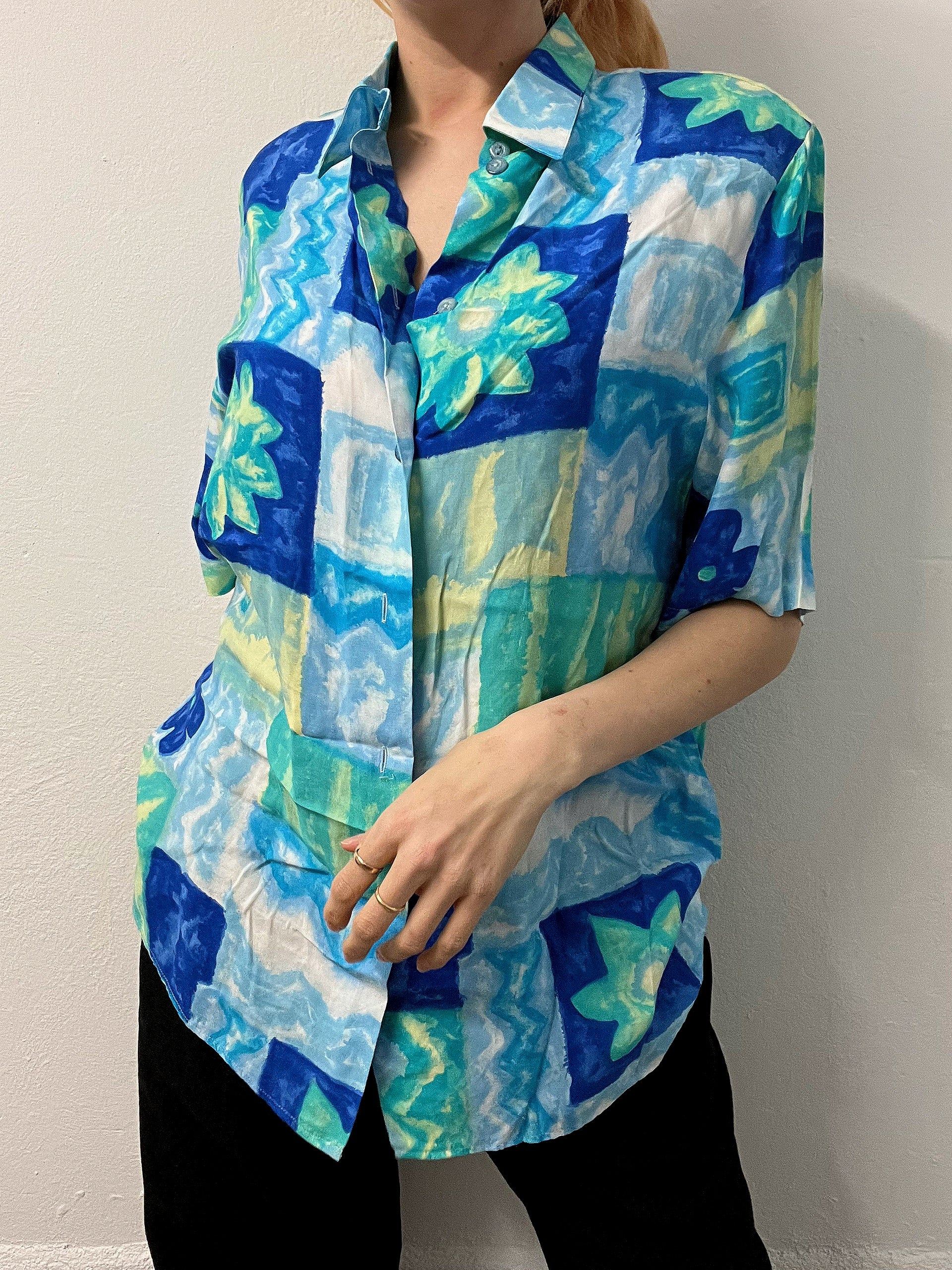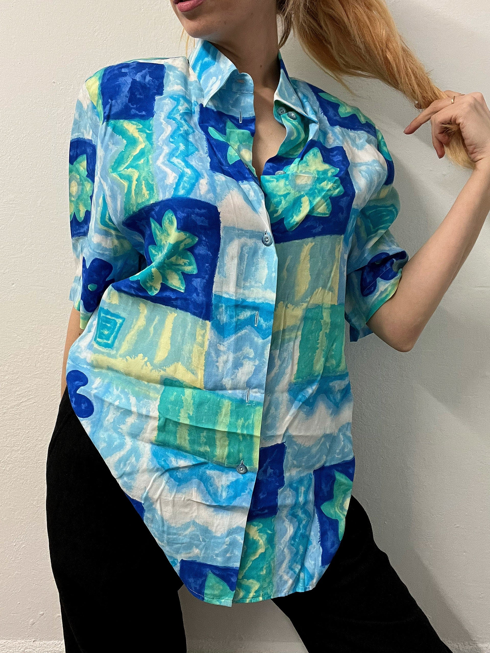 Chemise Vintage 80/90s à motifs turquoise L