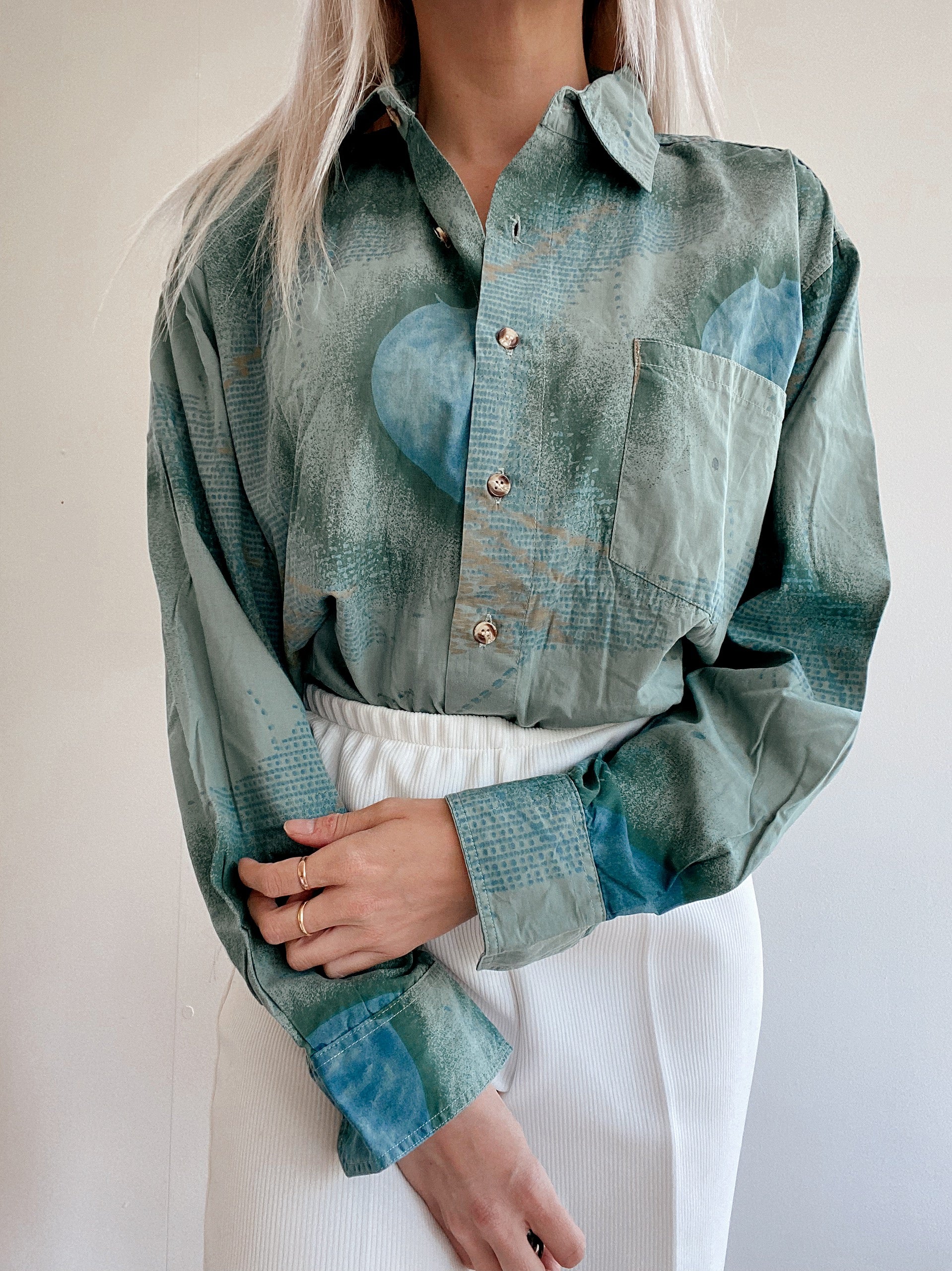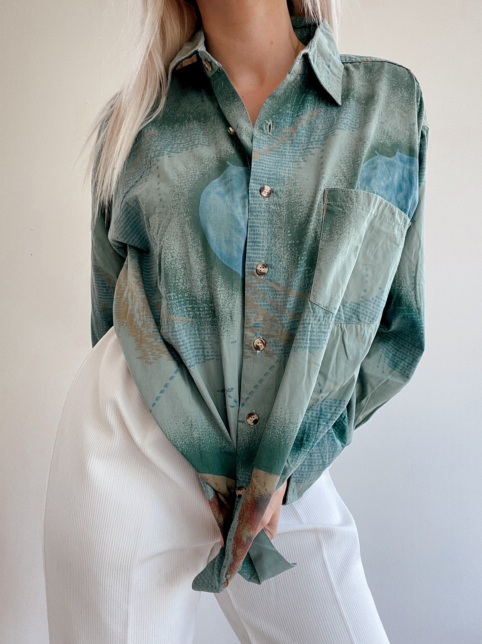 Chemise Vintage 80/90s à motifs turquoises/verts
