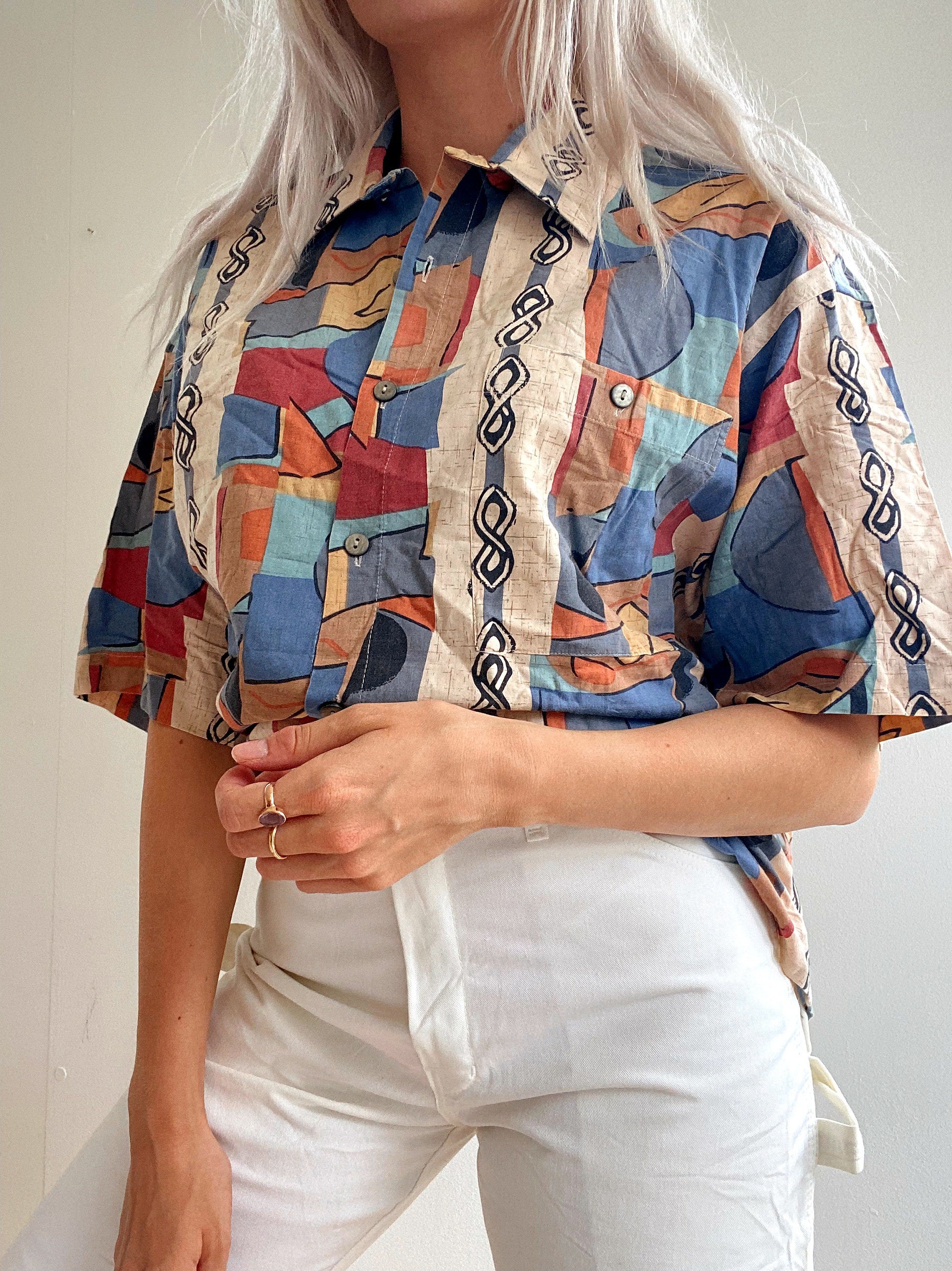 Chemise Vintage 80/90s beige à motifs