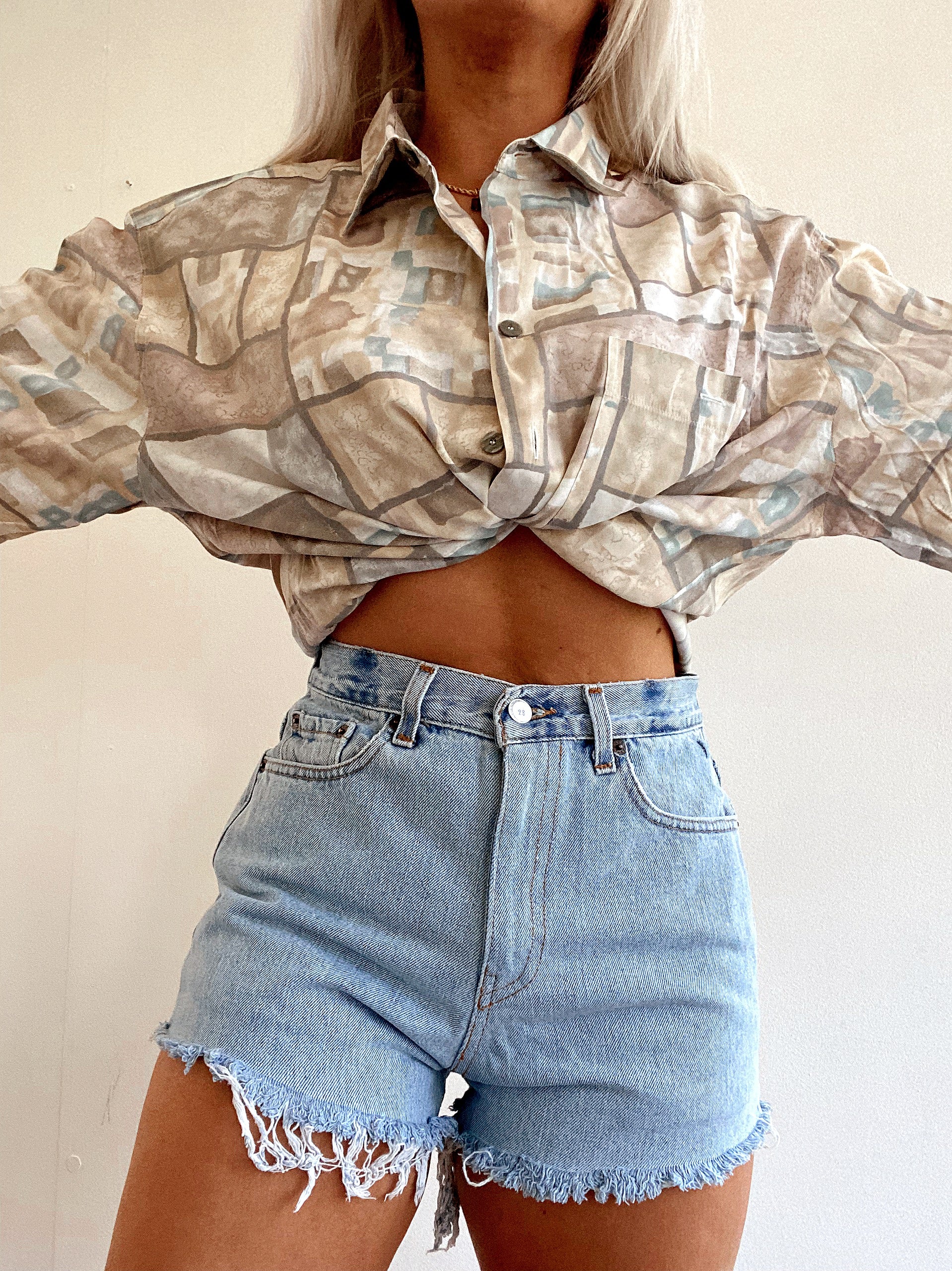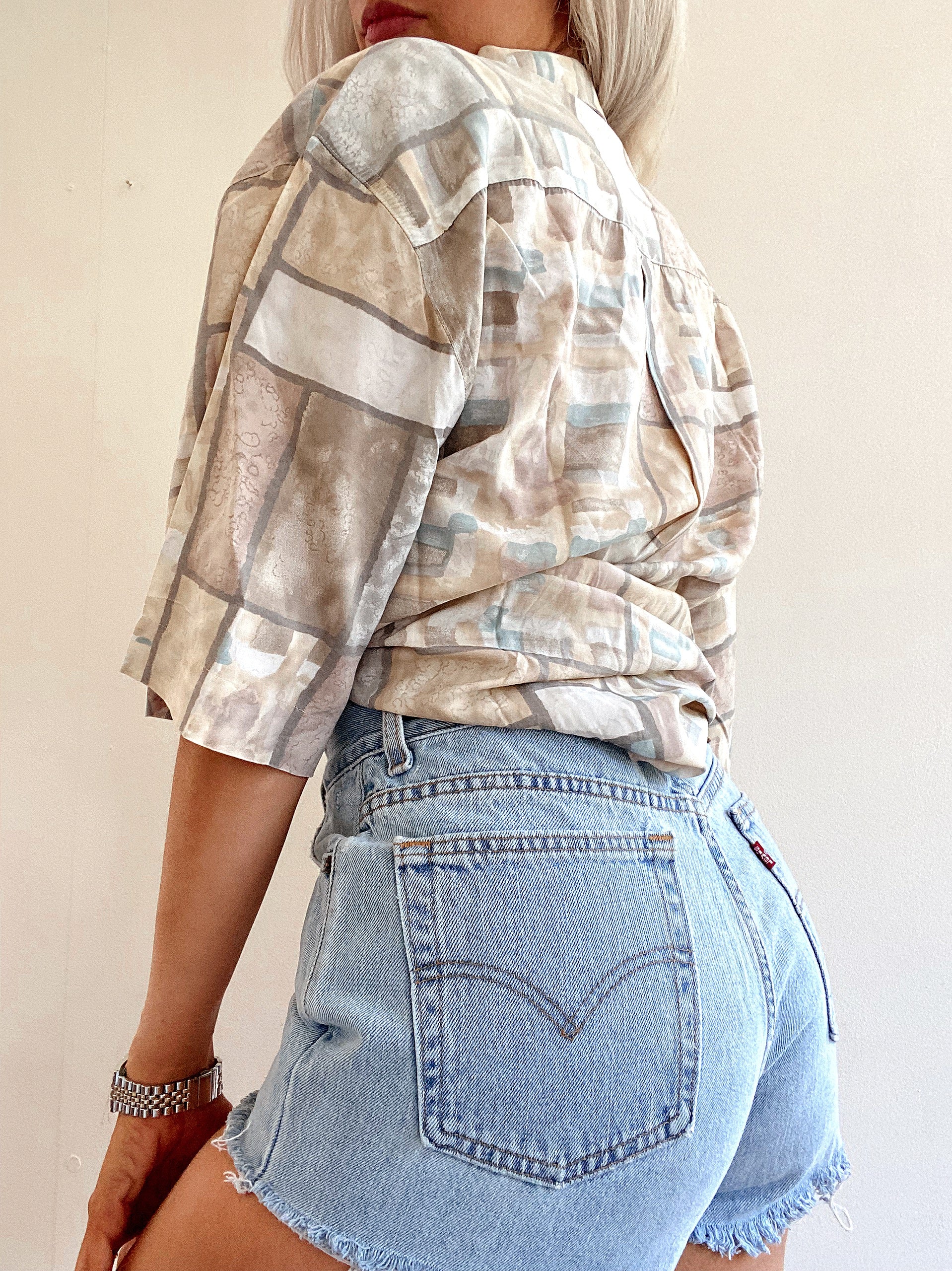 Chemise Vintage 80/90s beige à motifs