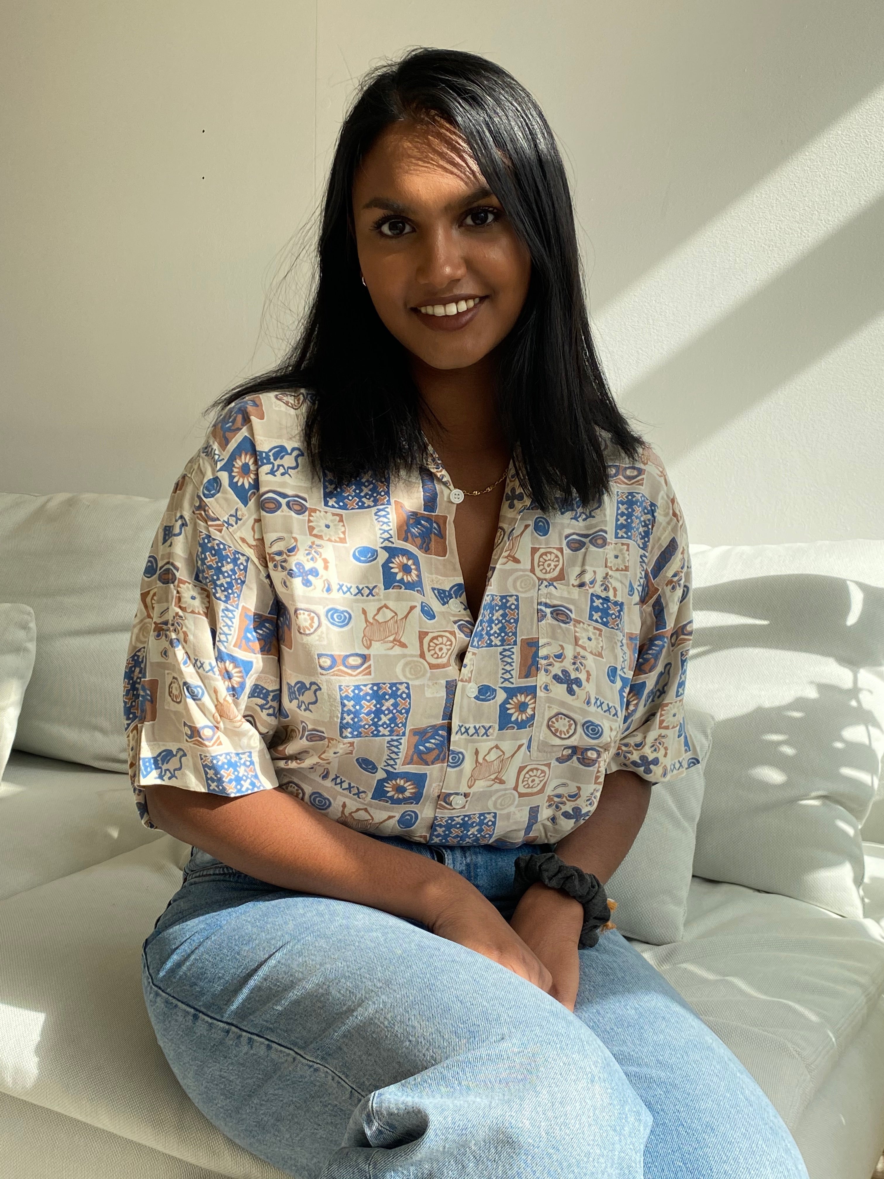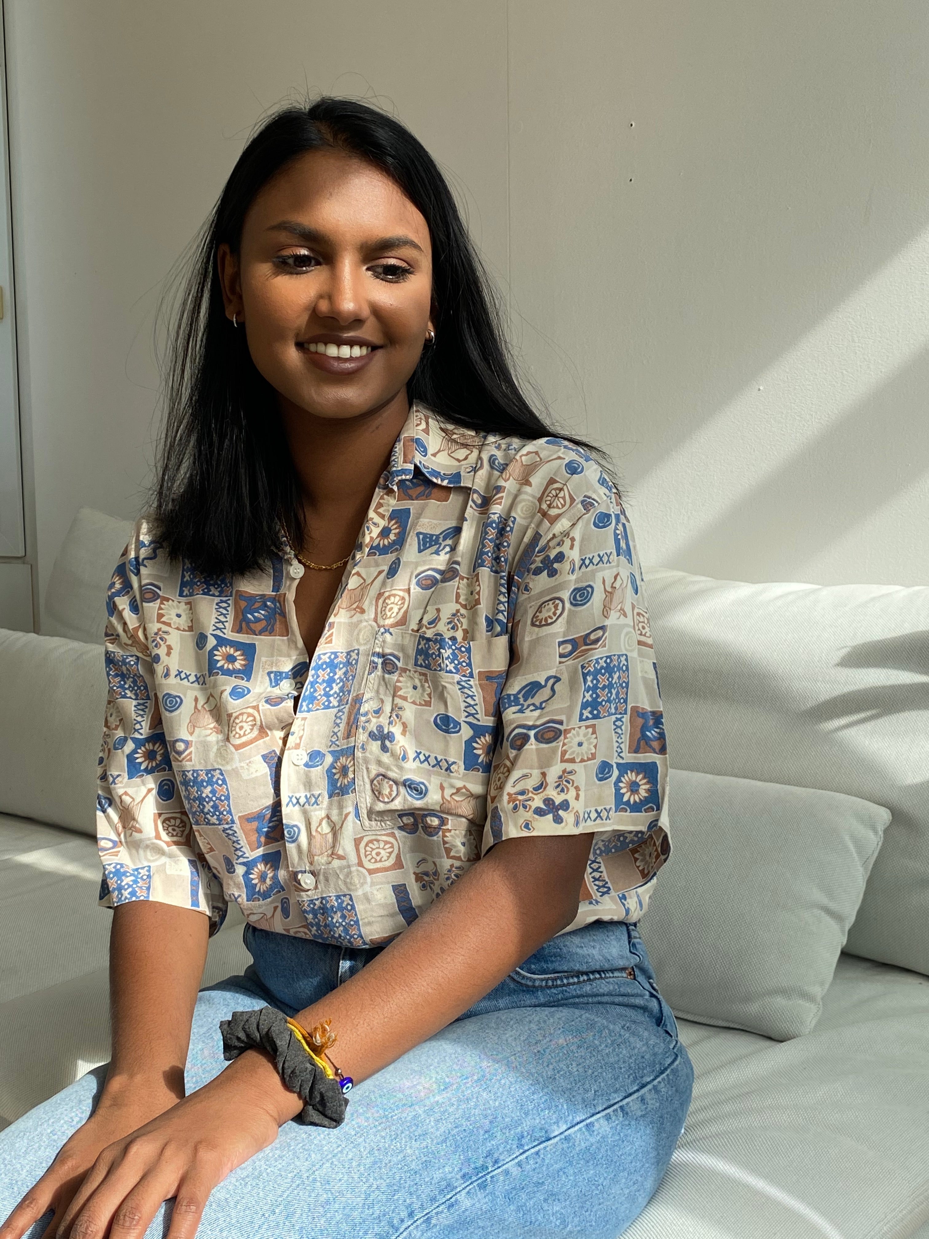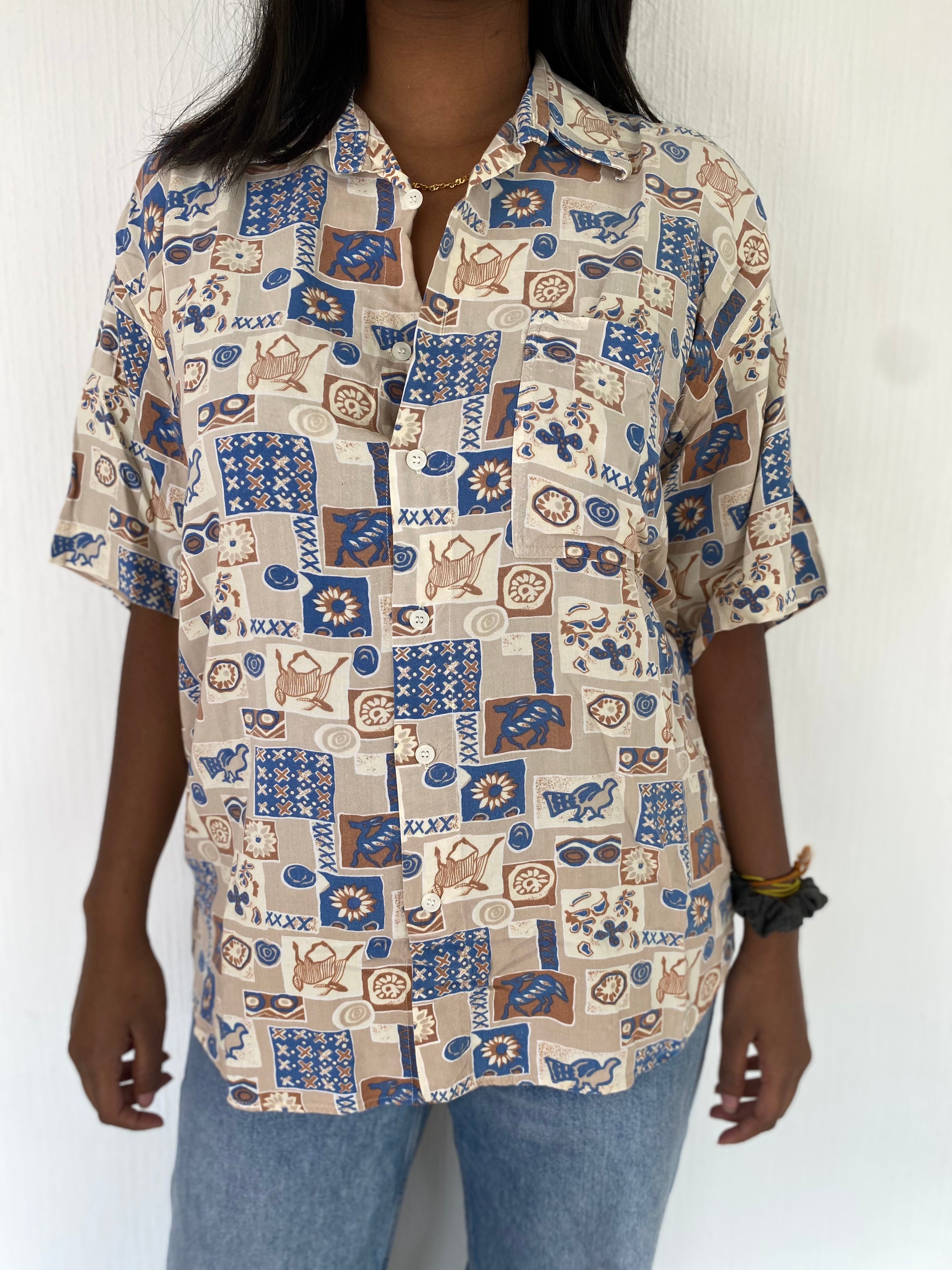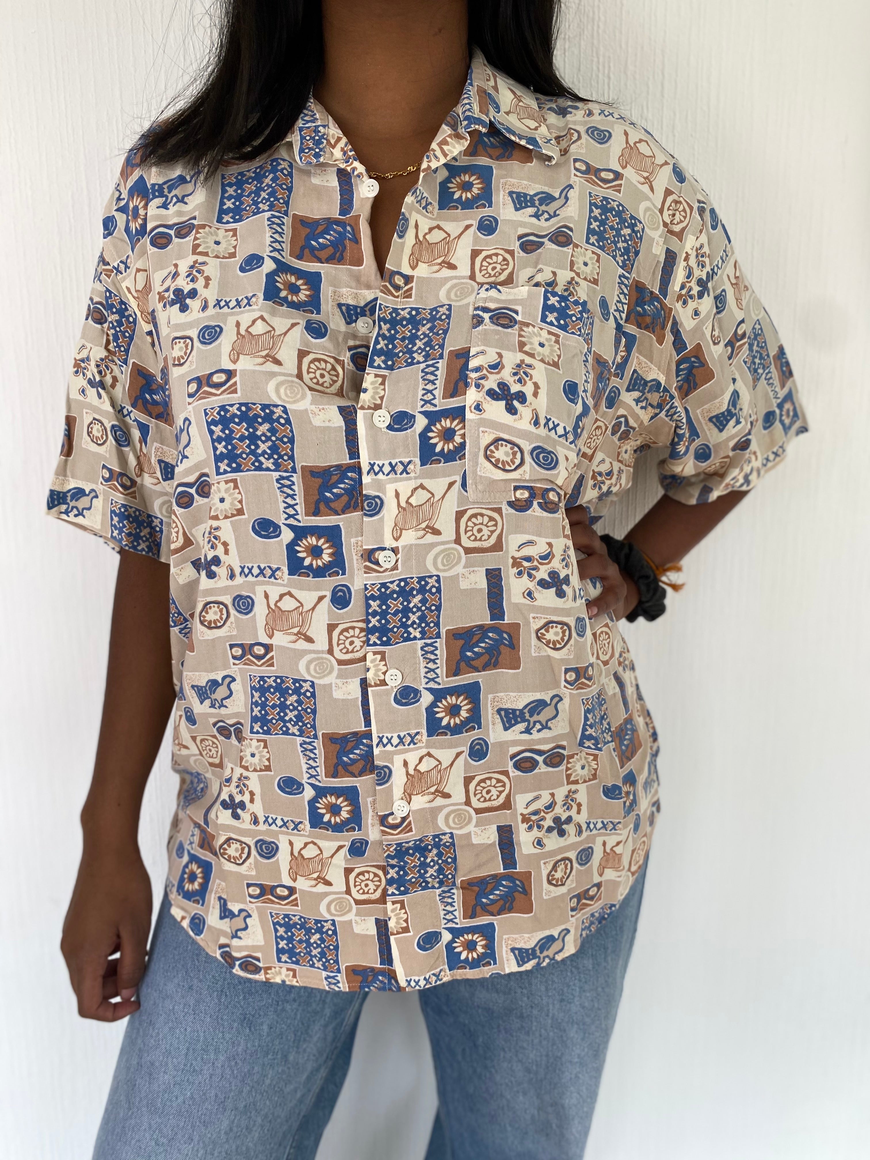 Chemise Vintage 80/90s beige à motifs bleus L