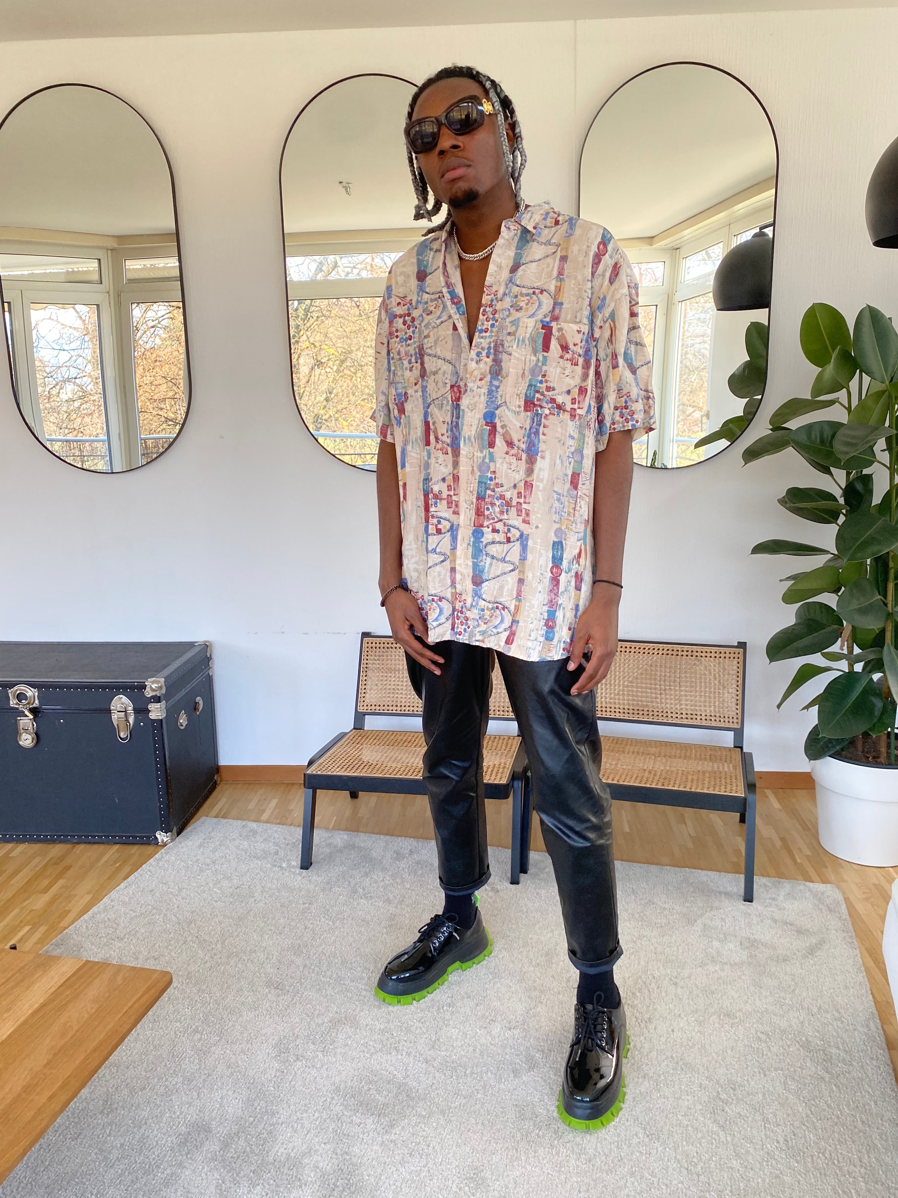 Chemise Vintage 80/90s beige à motifs XL