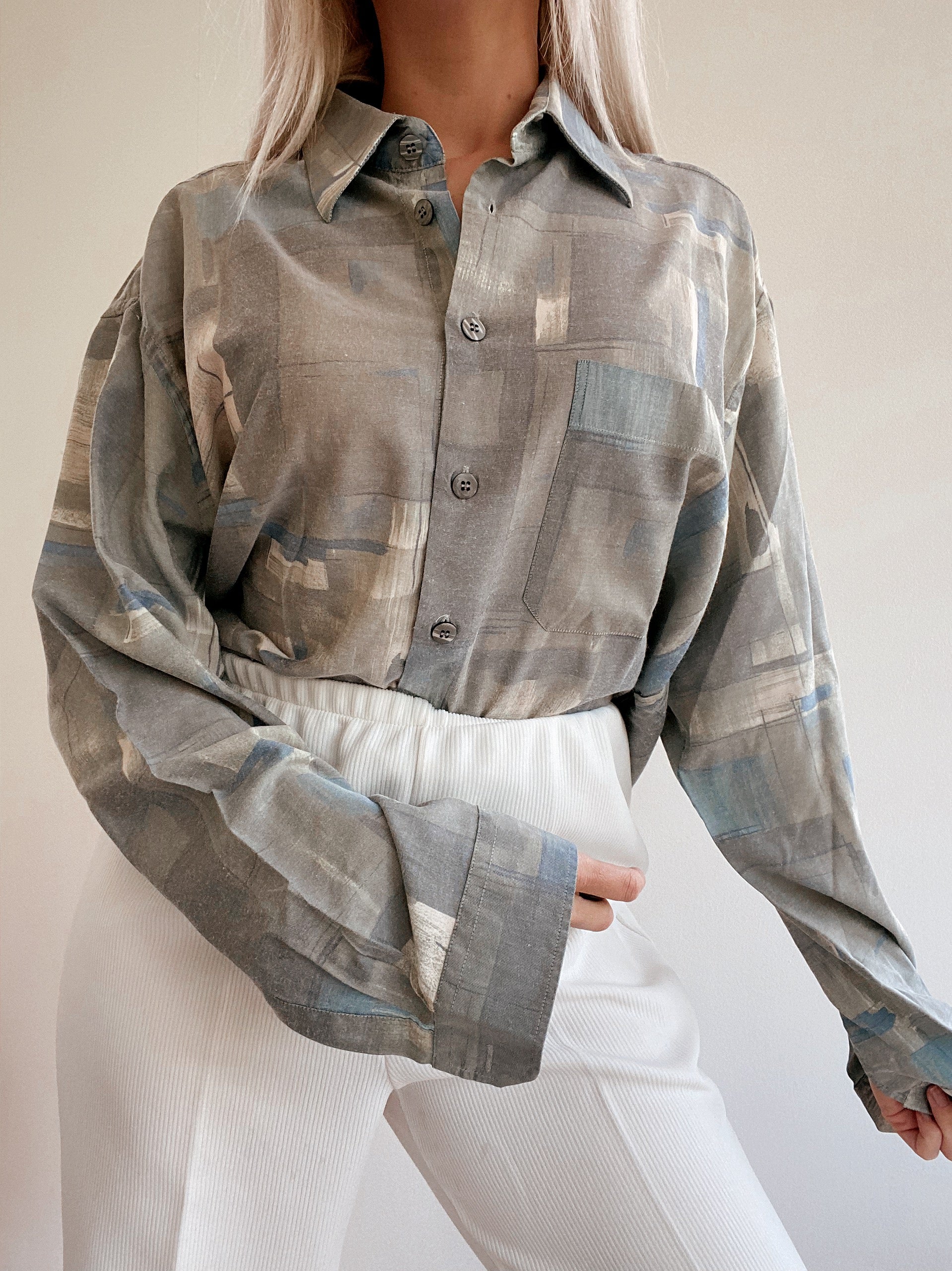 Chemise Vintage 80/90s beige/grise à motifs