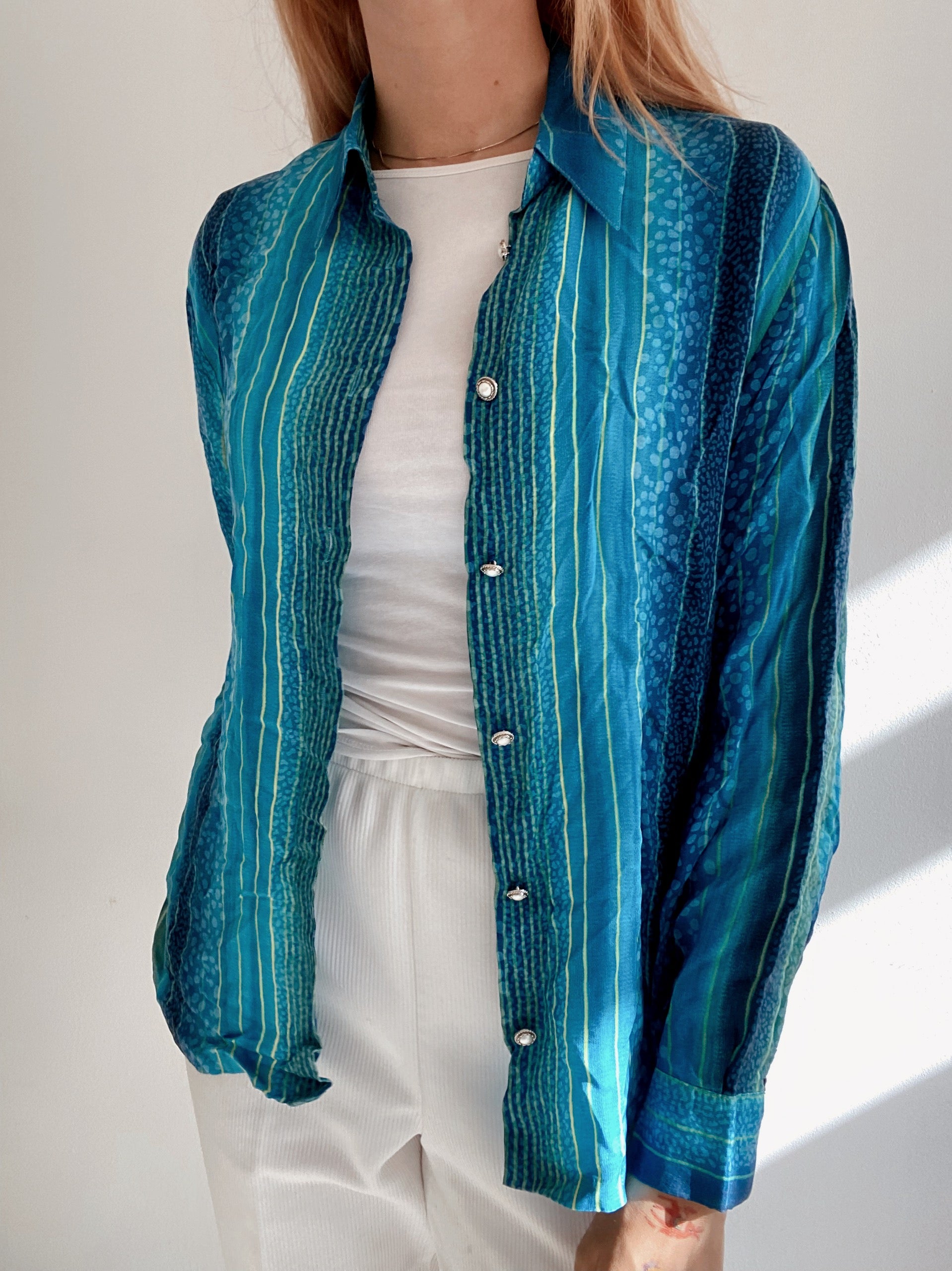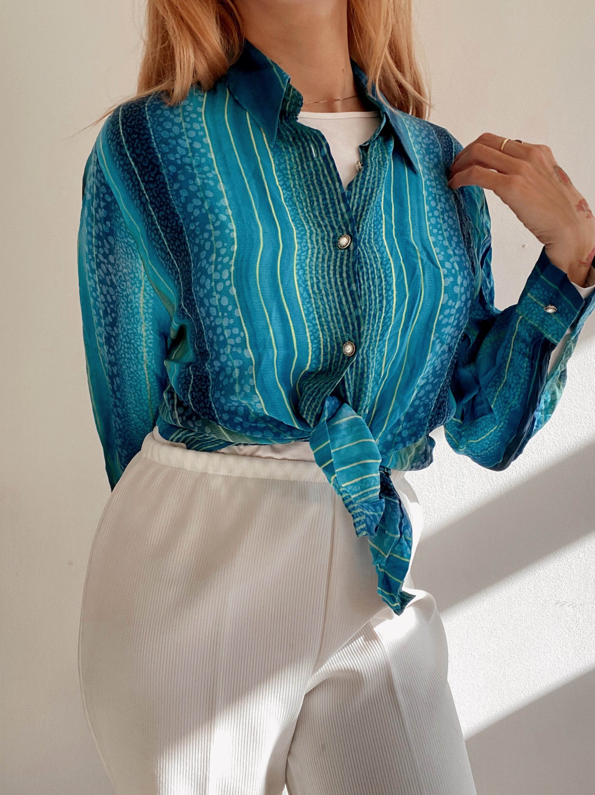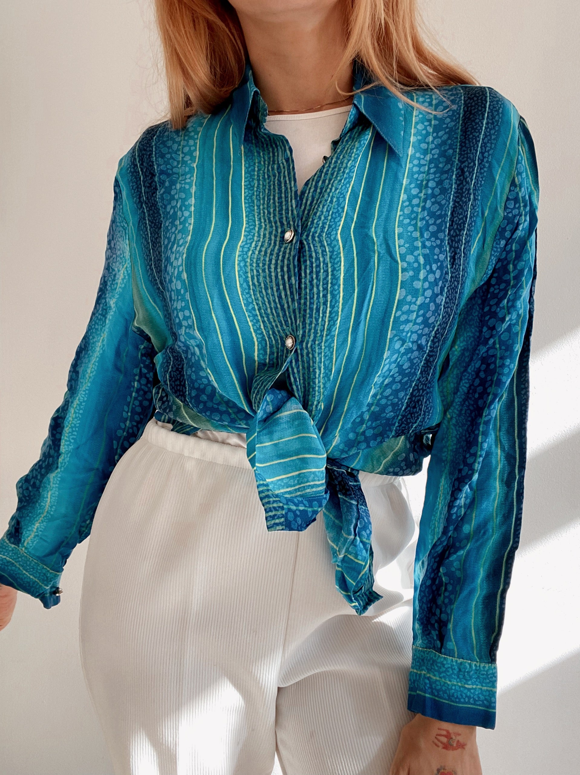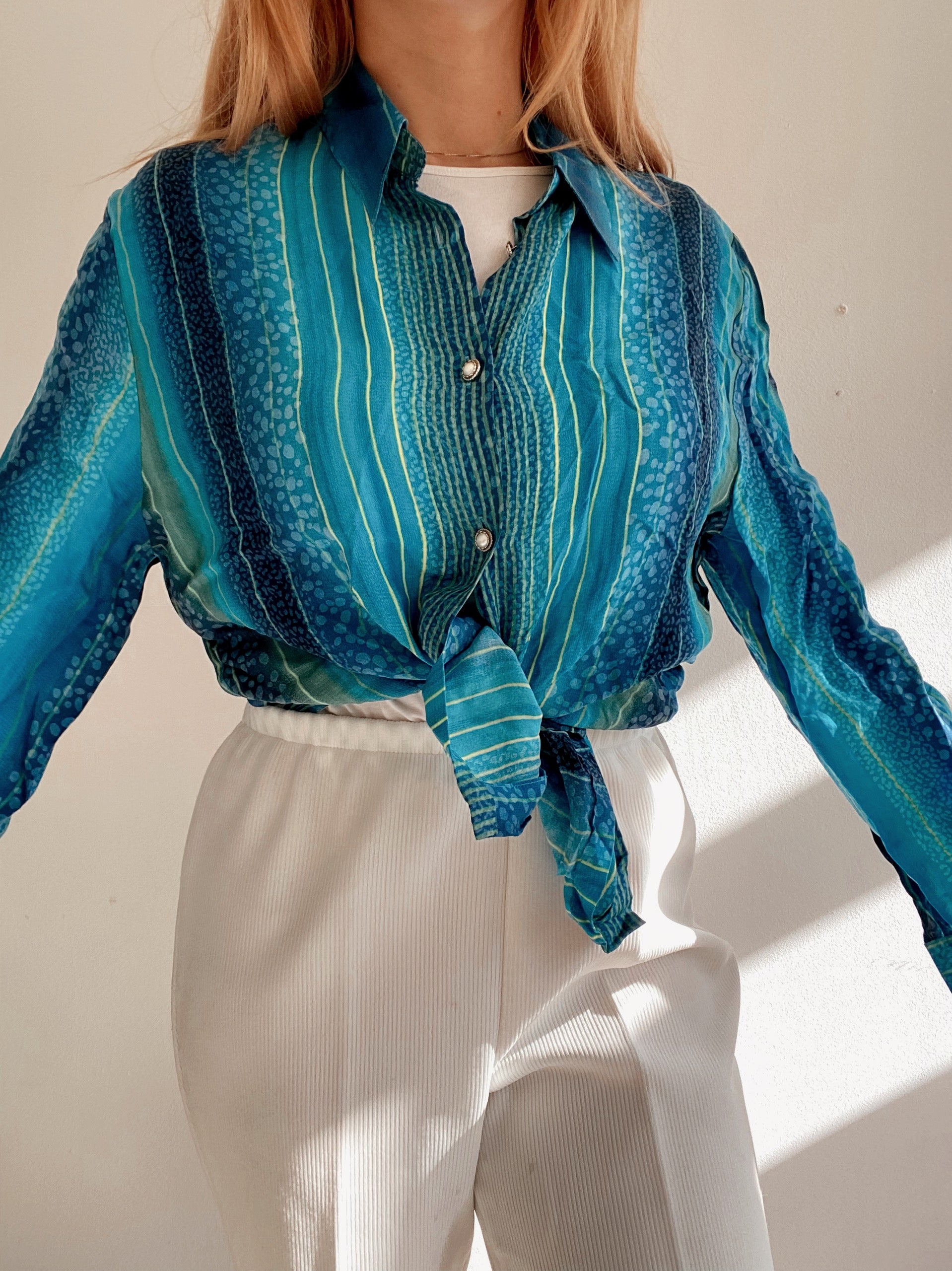 Chemise Vintage 80/90s bleue et turquoise à motifs