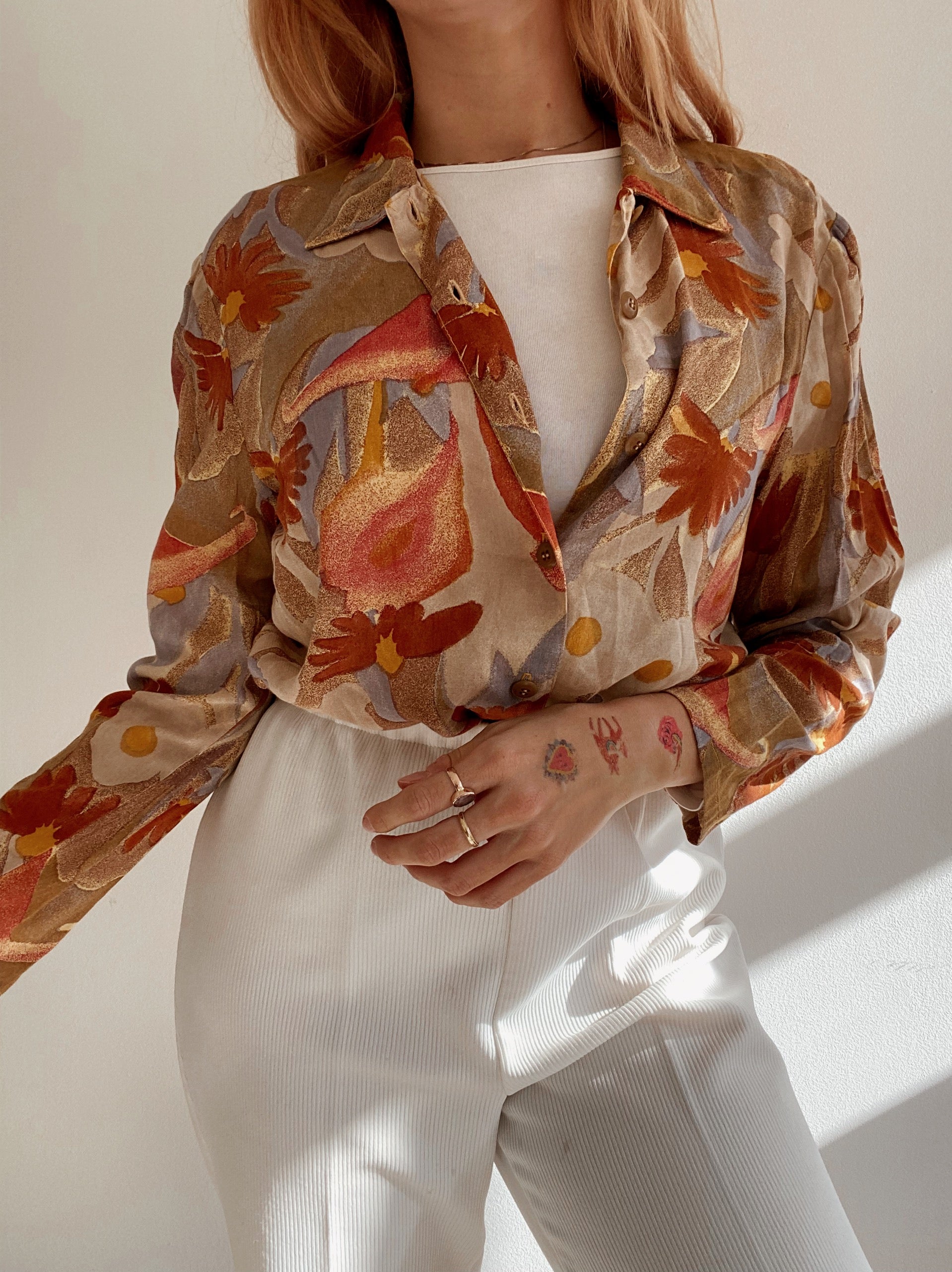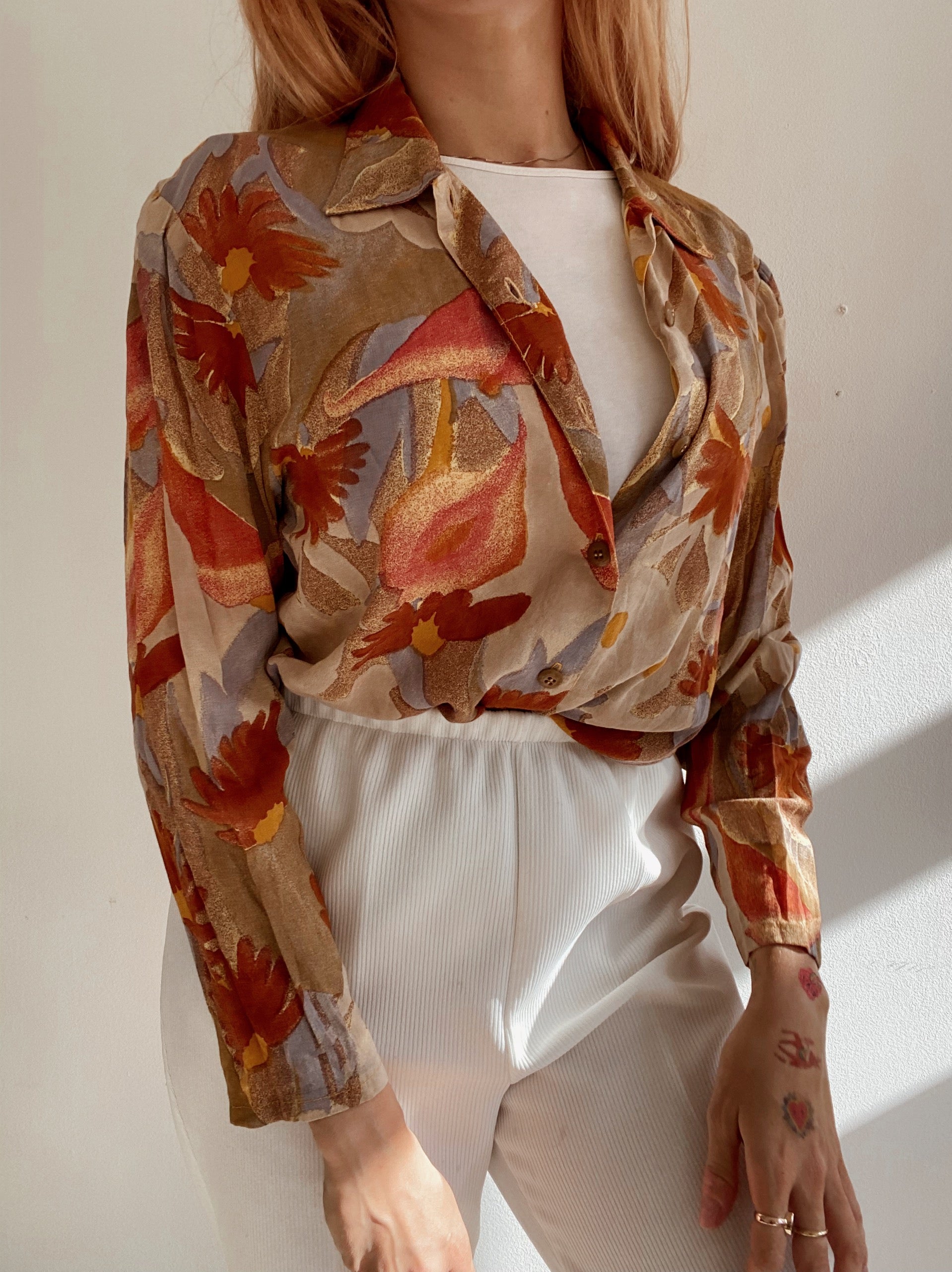 Chemise Vintage 80/90s beige orange à motifs