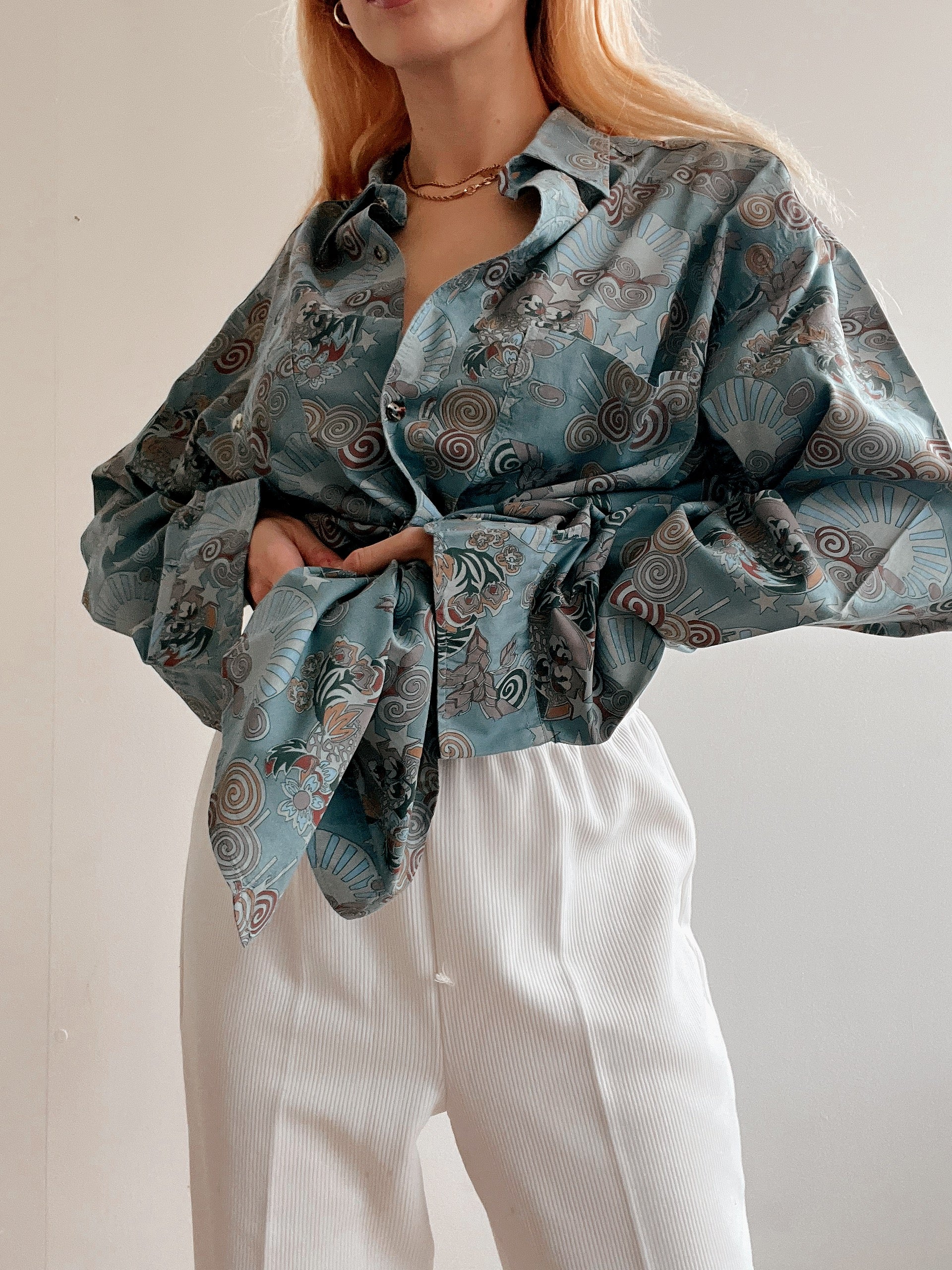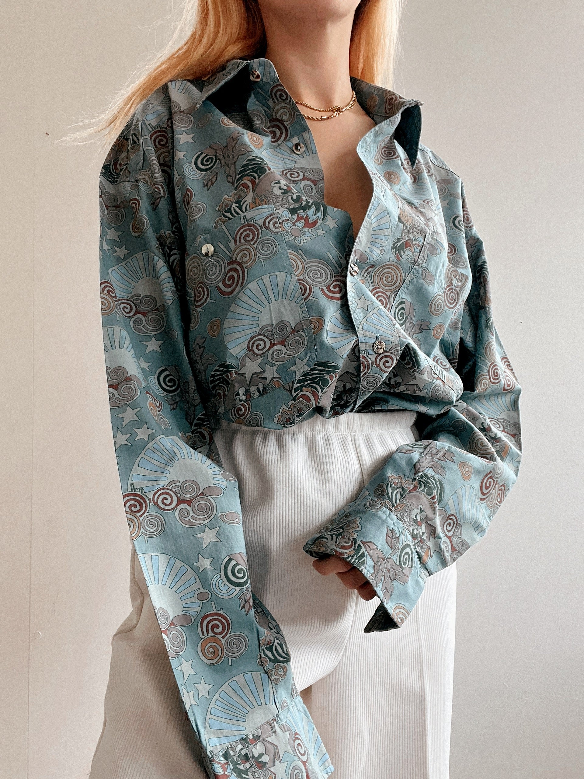 Chemise Vintage 80/90s bleue clair à motifs XL