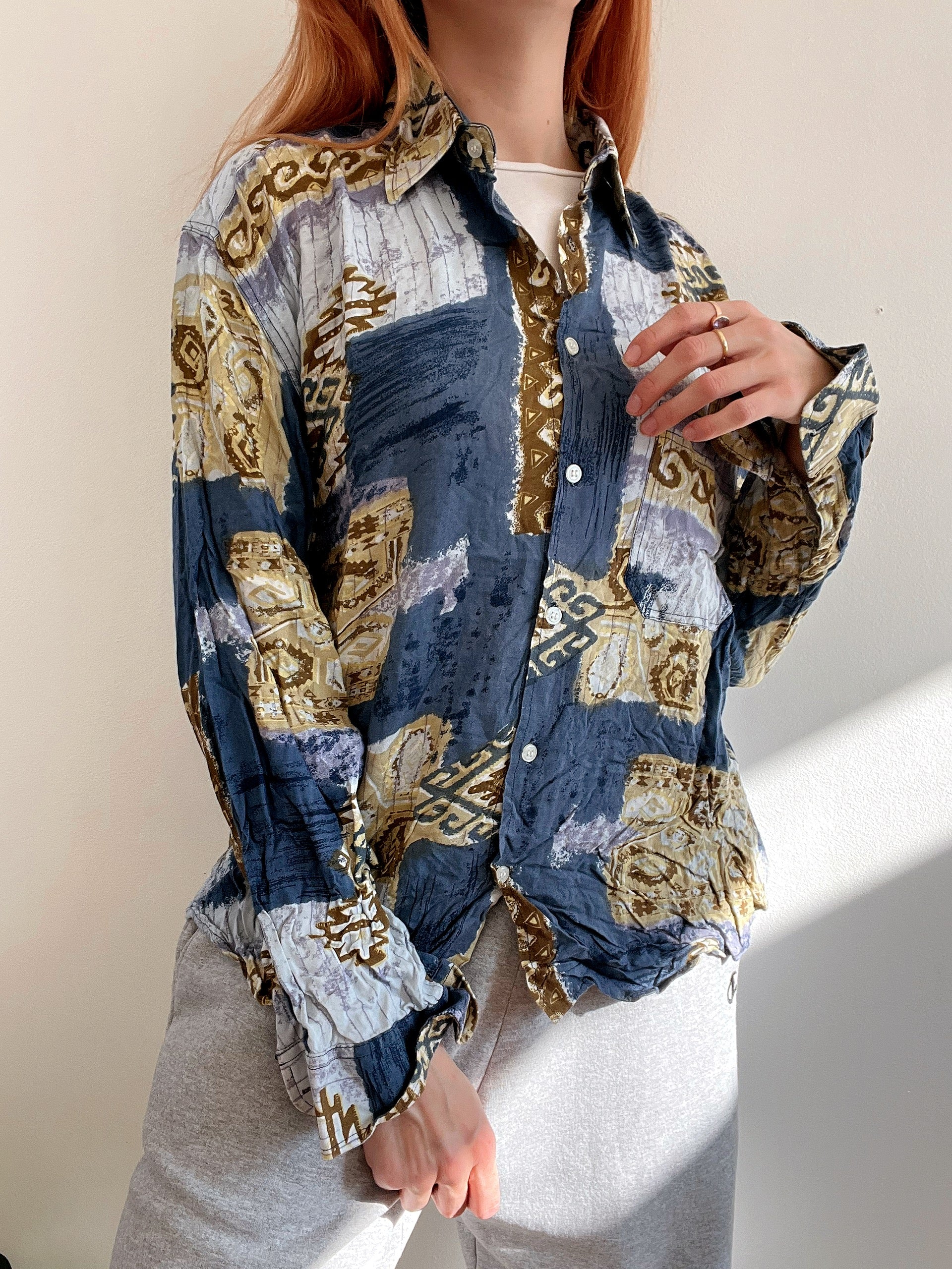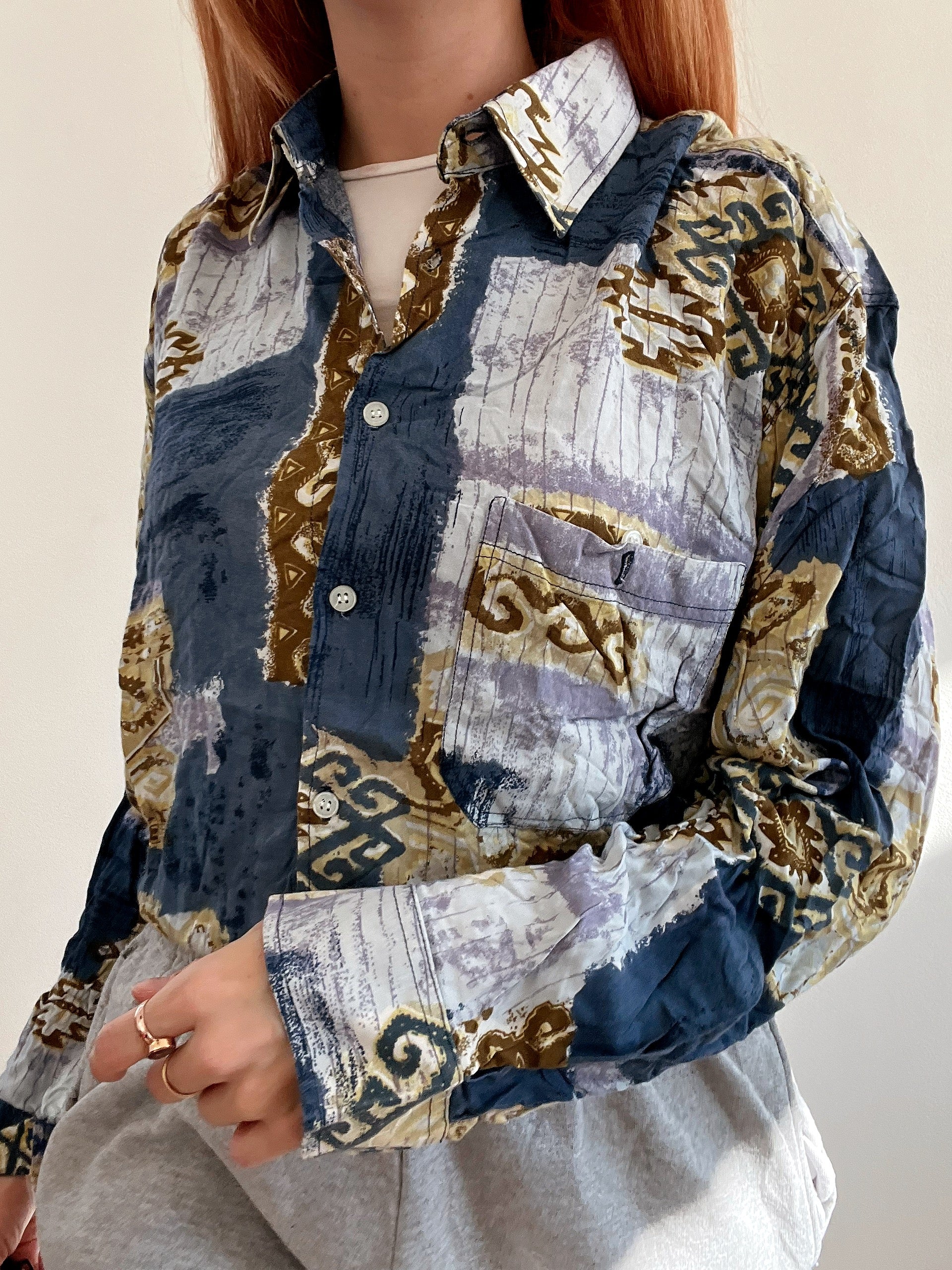 Chemise Vintage 80/90s bleue foncée à motifs XL