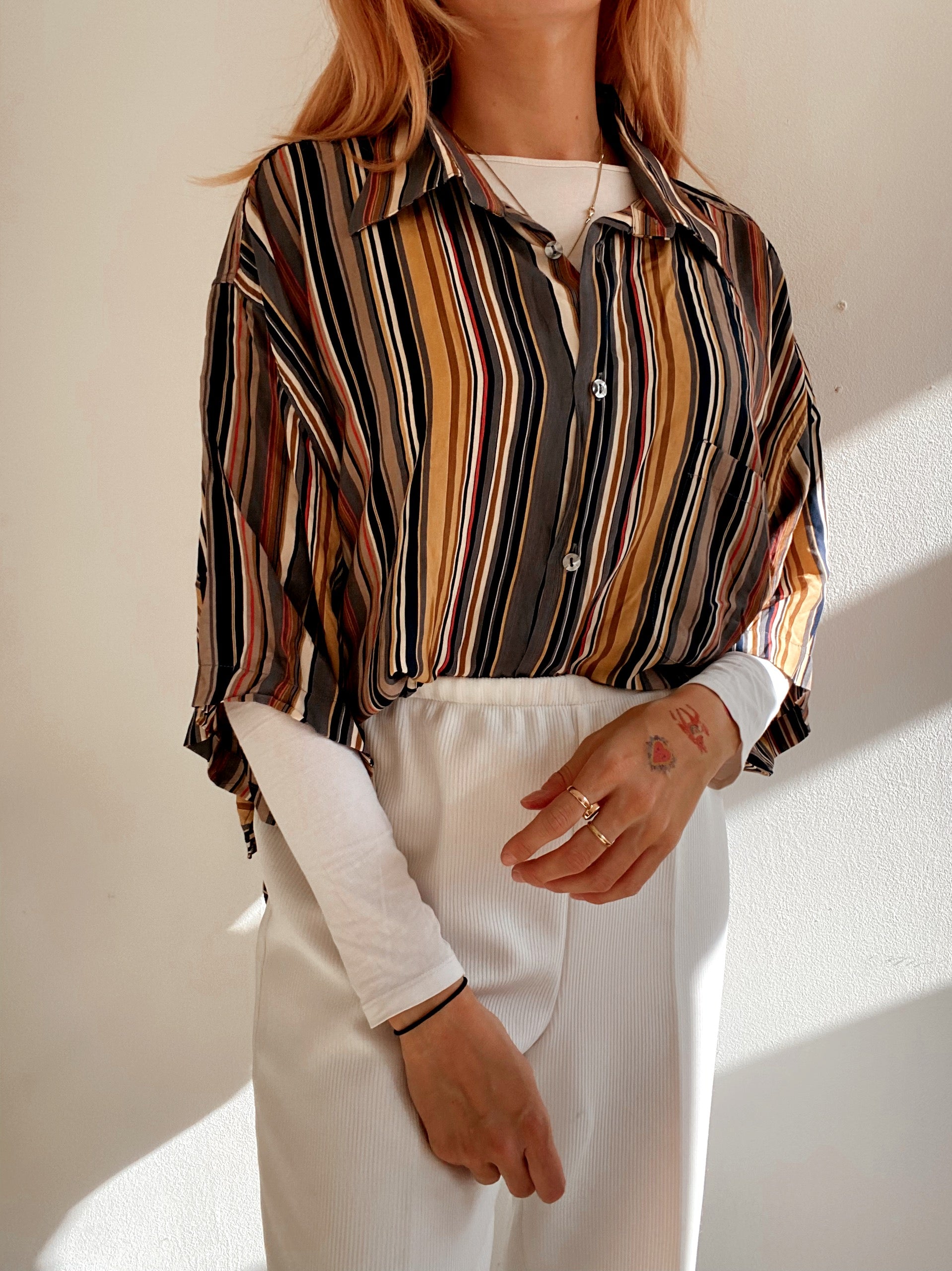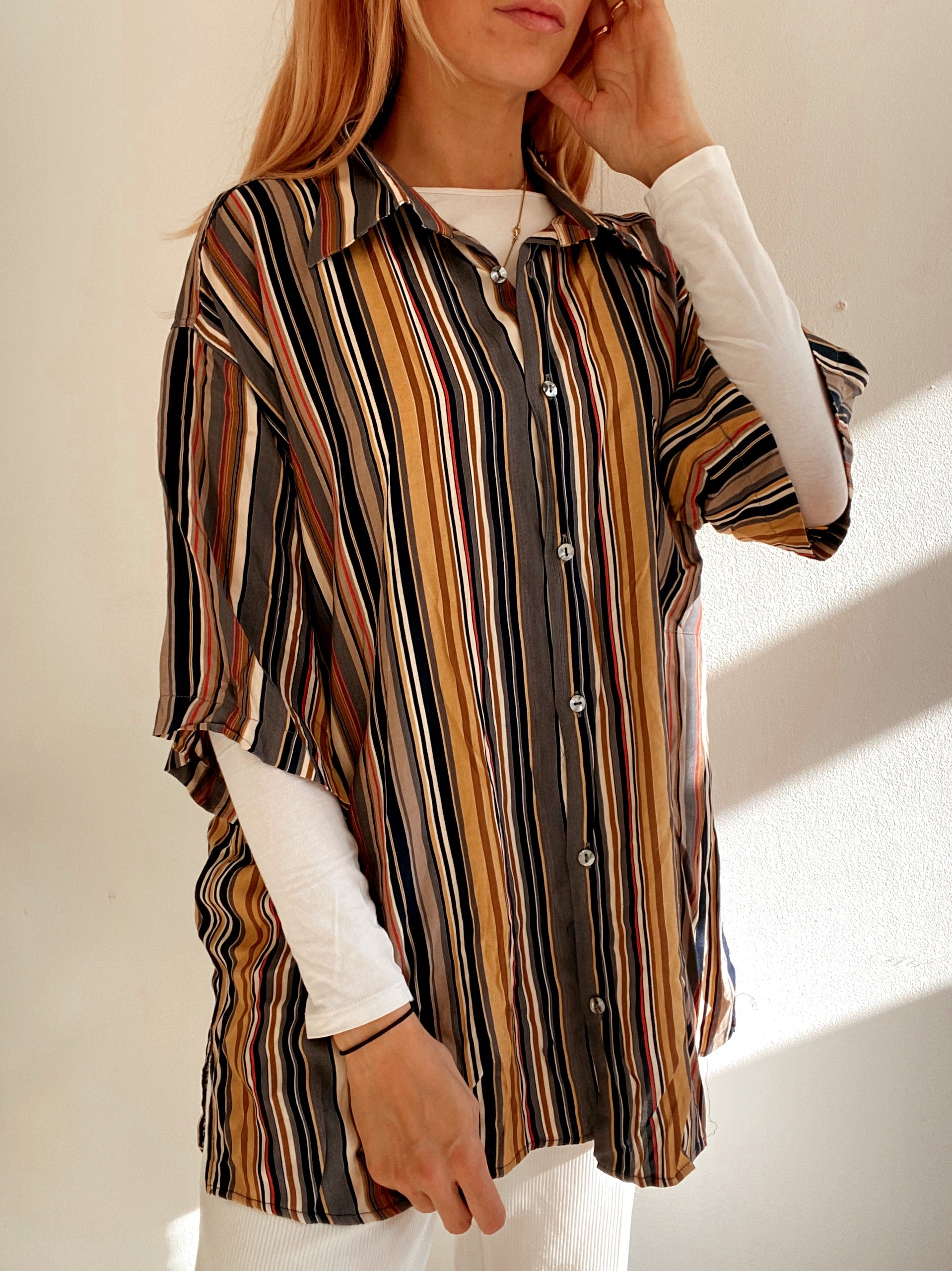 Chemise Vintage 80/90s brune à rayures