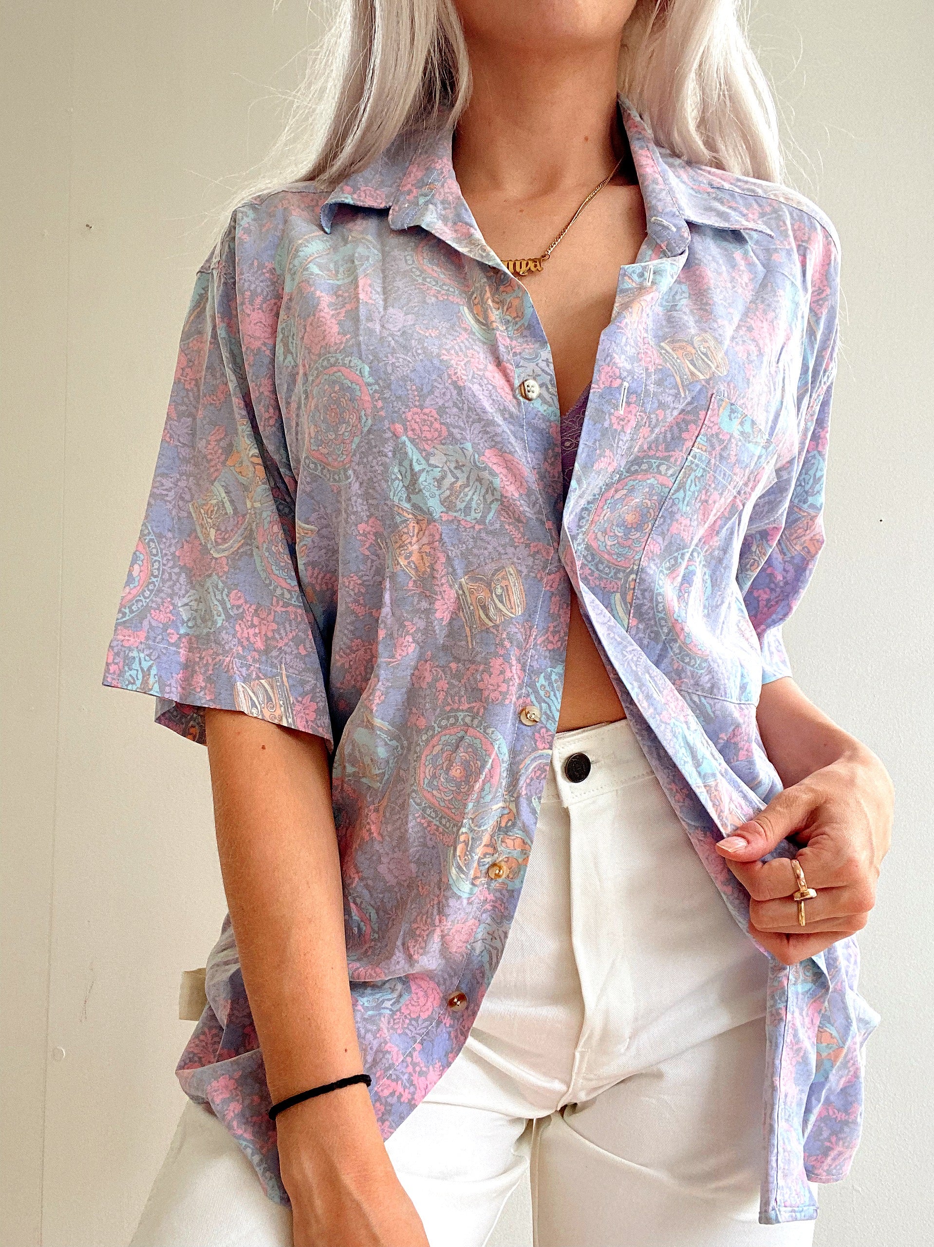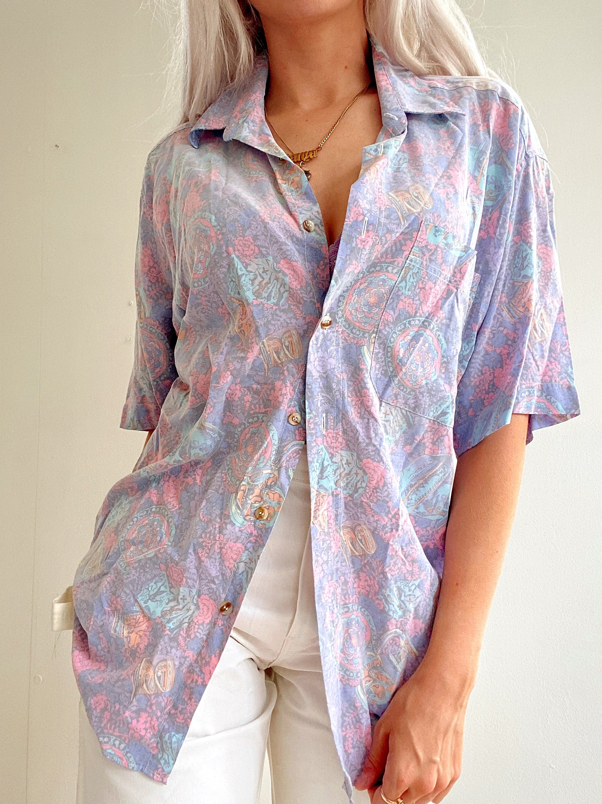 Chemise Vintage 80/90s mauve à motifs