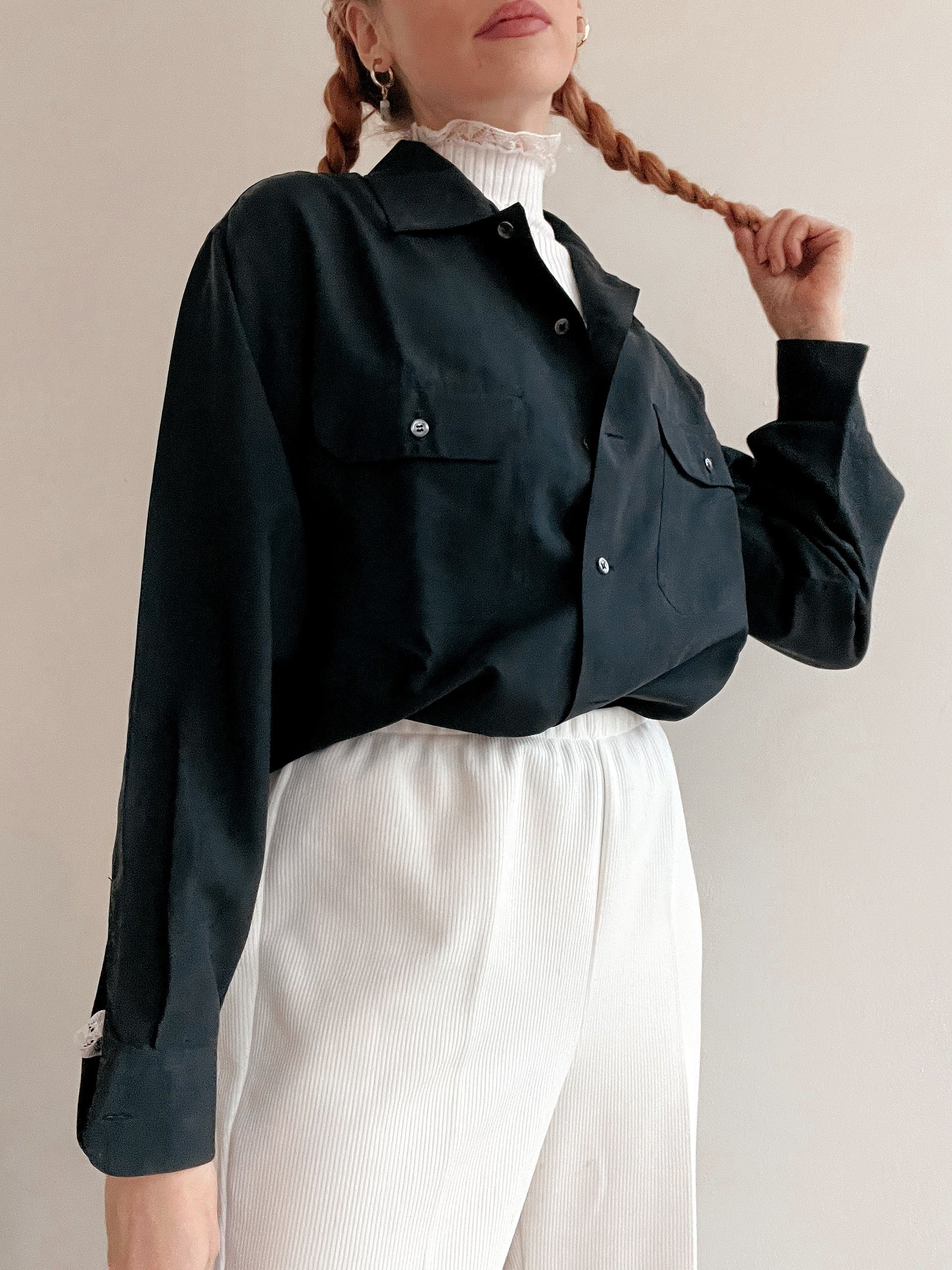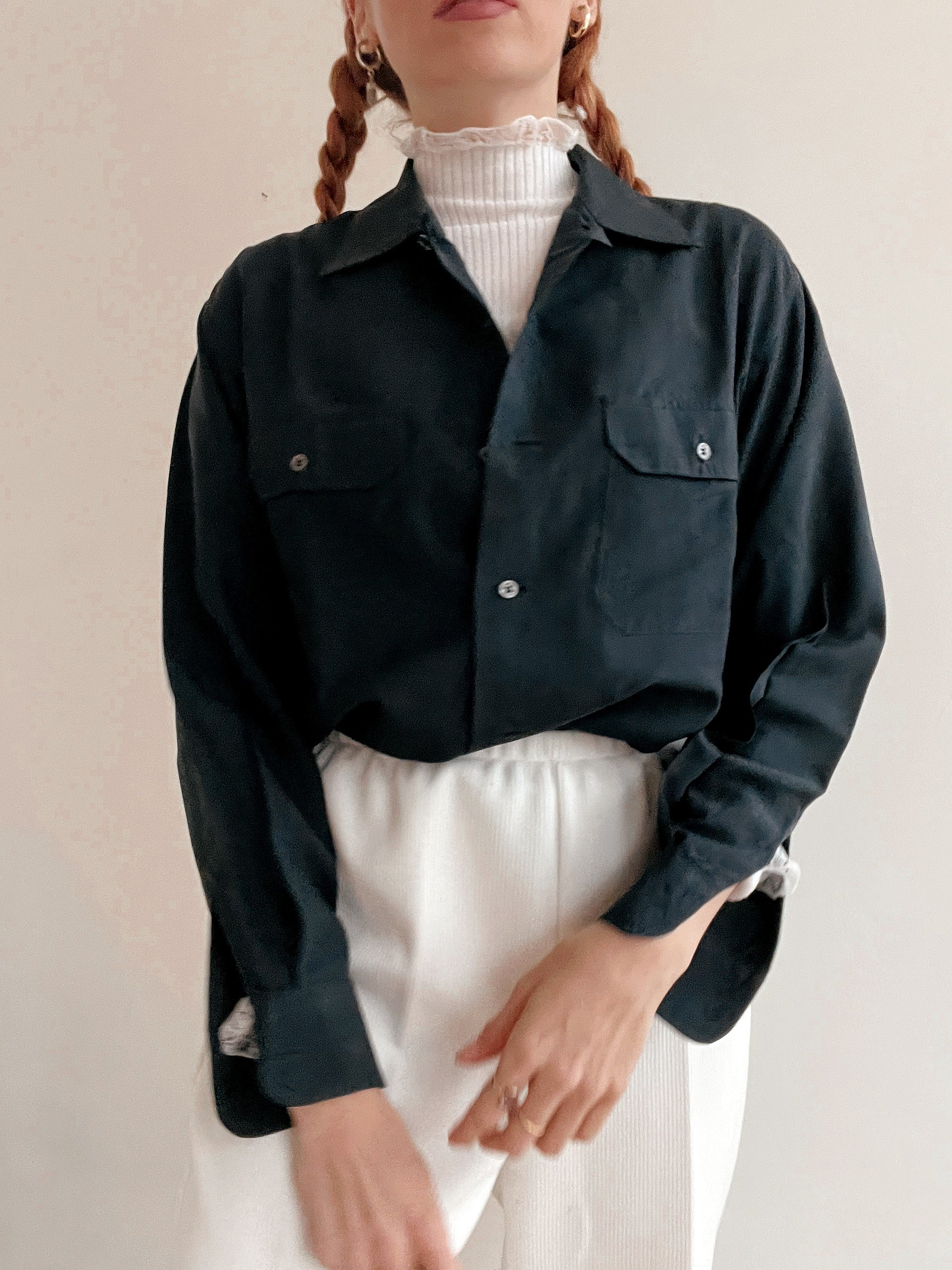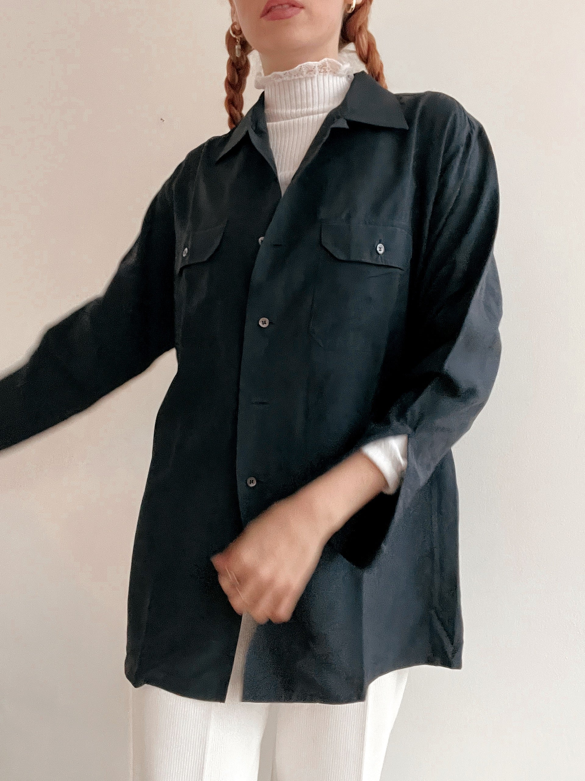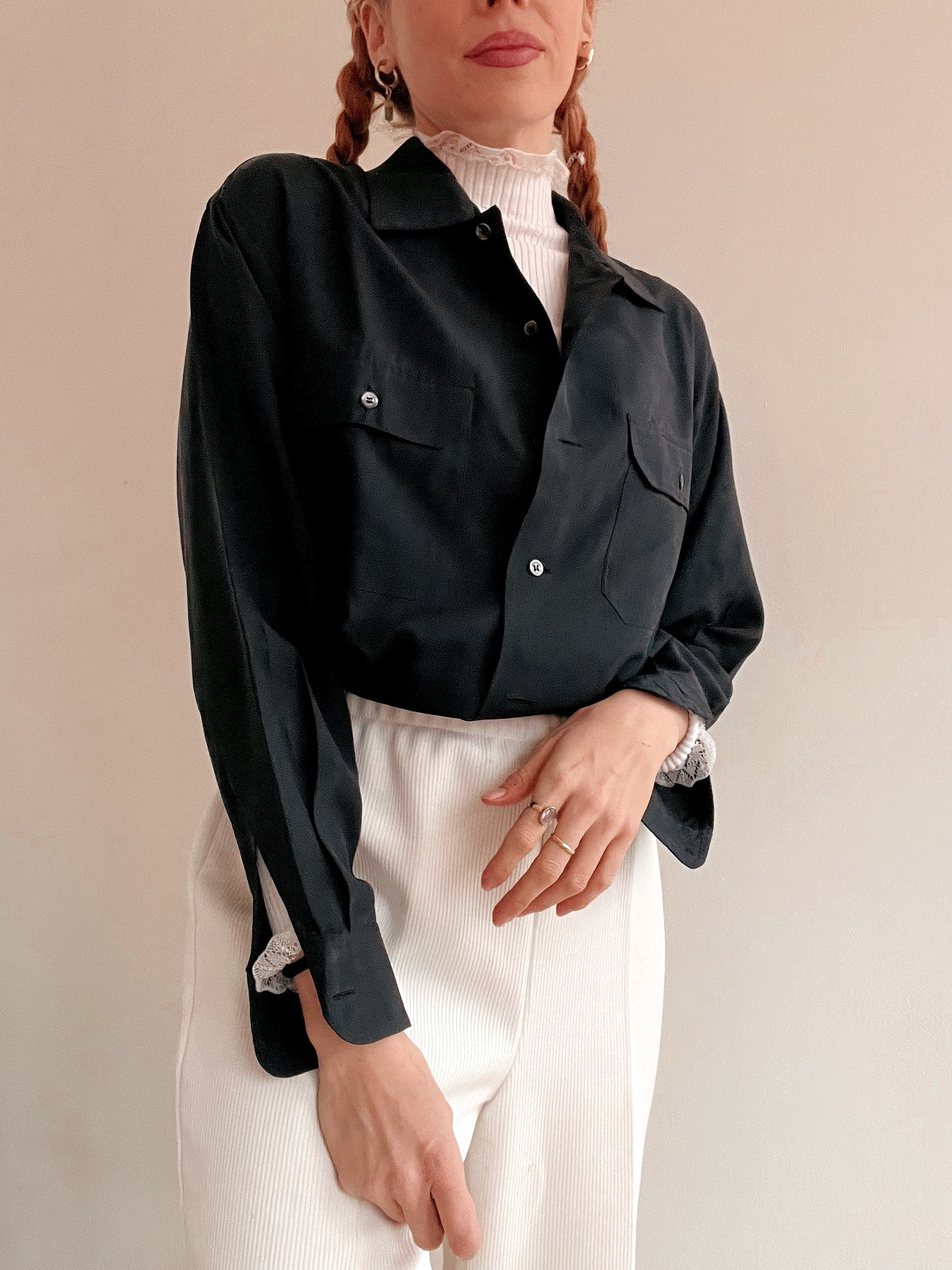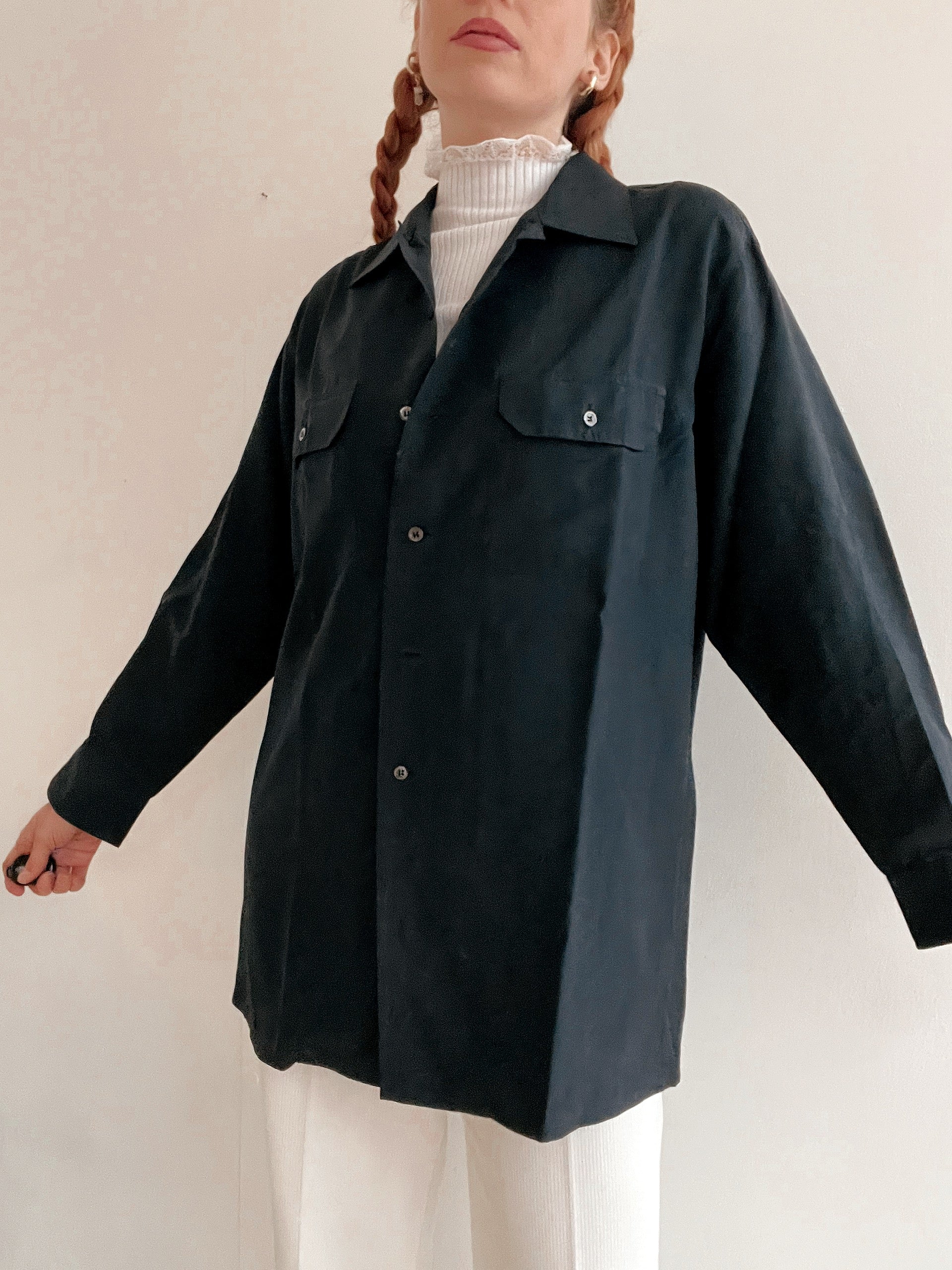 Chemise Vintage 80/90s noir/gris en soie M