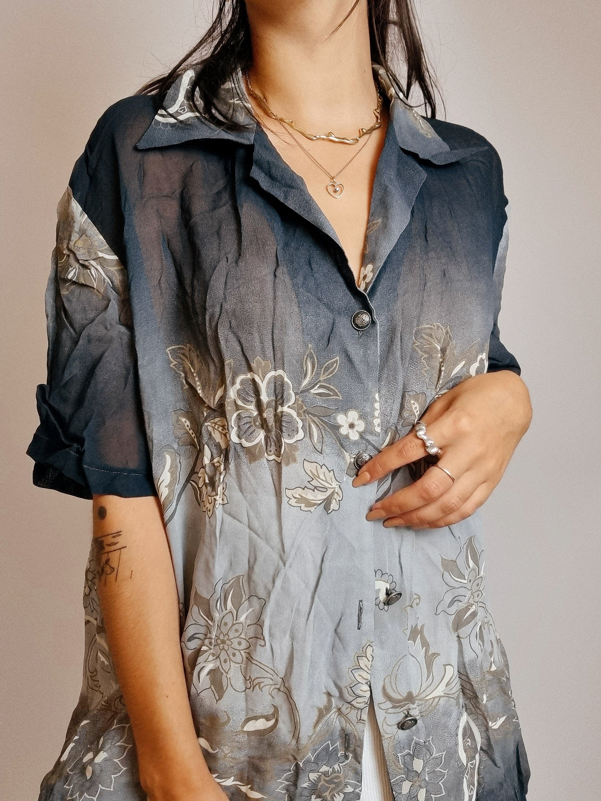 Chemise Vintage 80/90s noire et beige à motifs