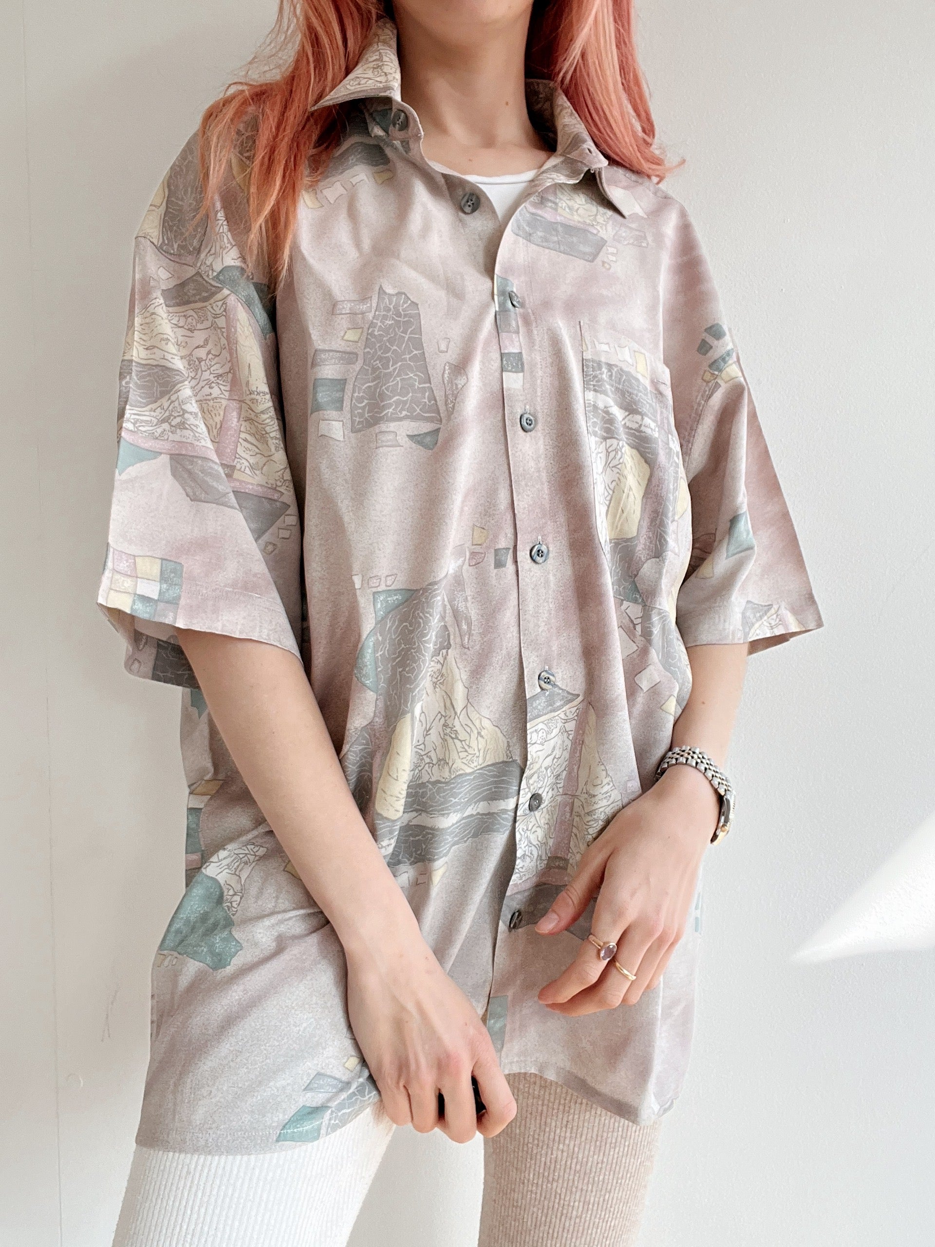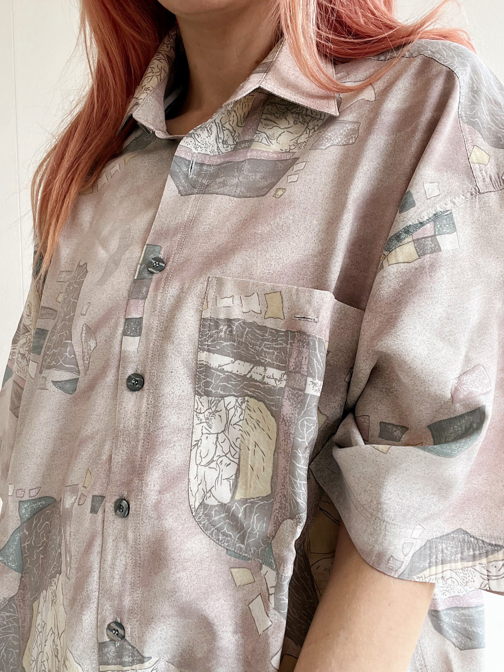 Chemise Vintage 80/90s rose, beige à motifs XL
