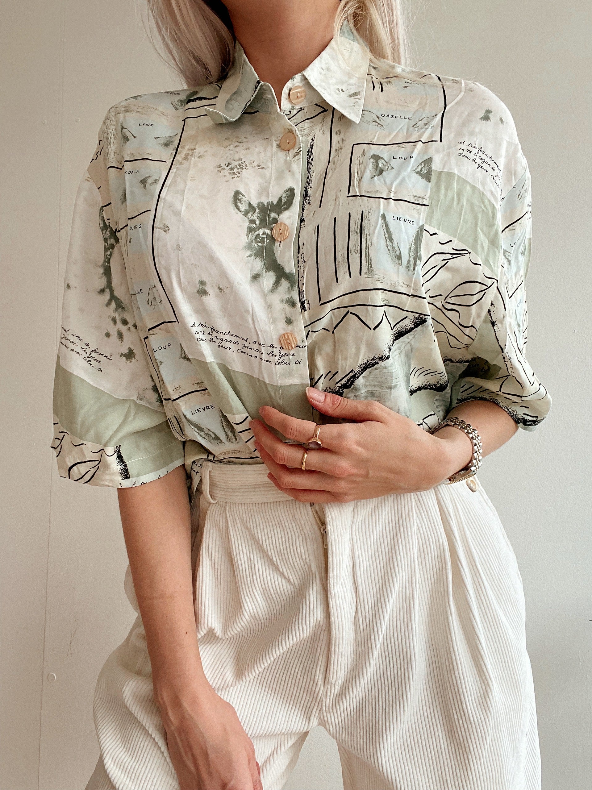 Chemise Vintage 80/90s verte et beige