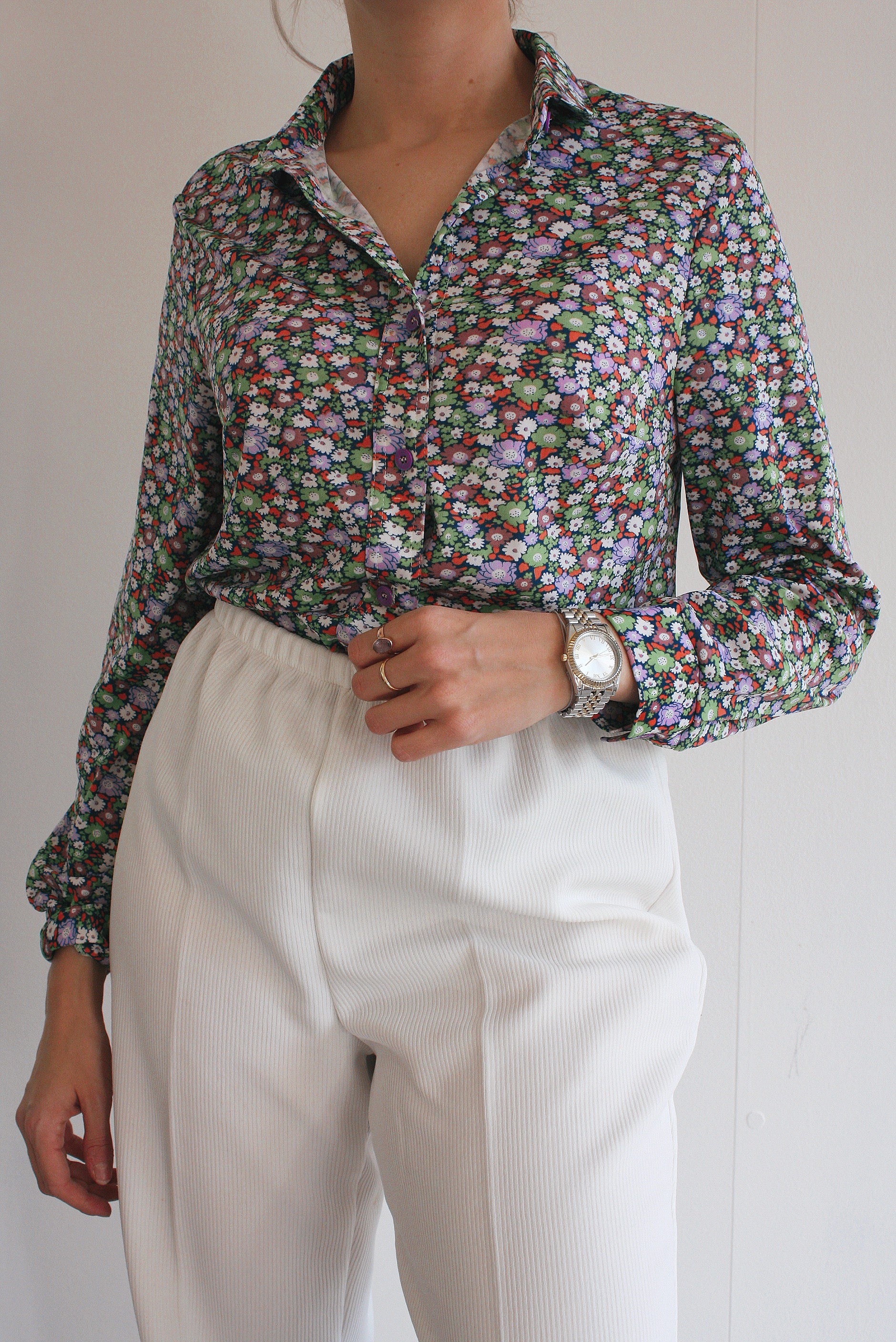 Chemise Vintage 80/90s violette et orange à fleurs S