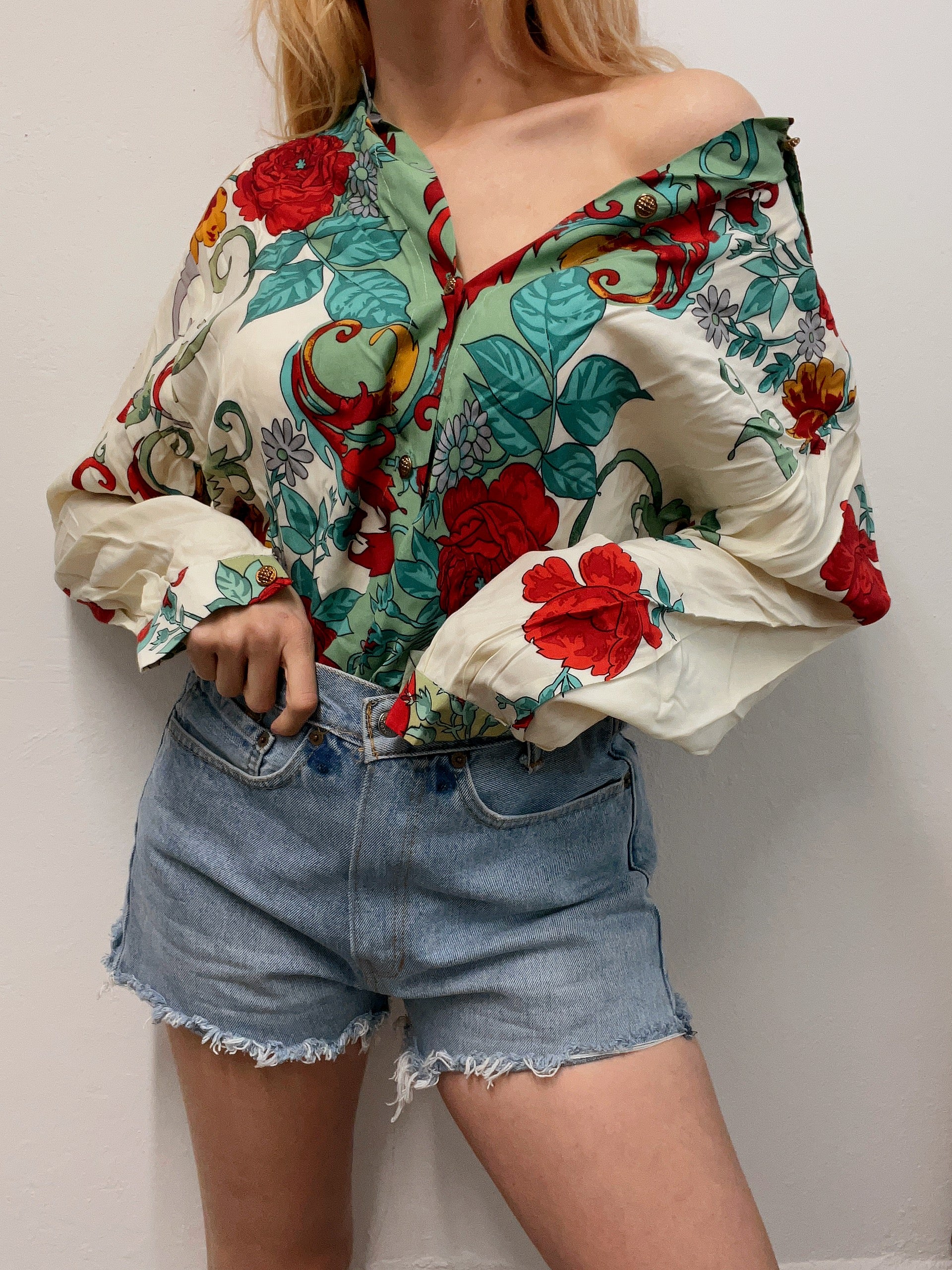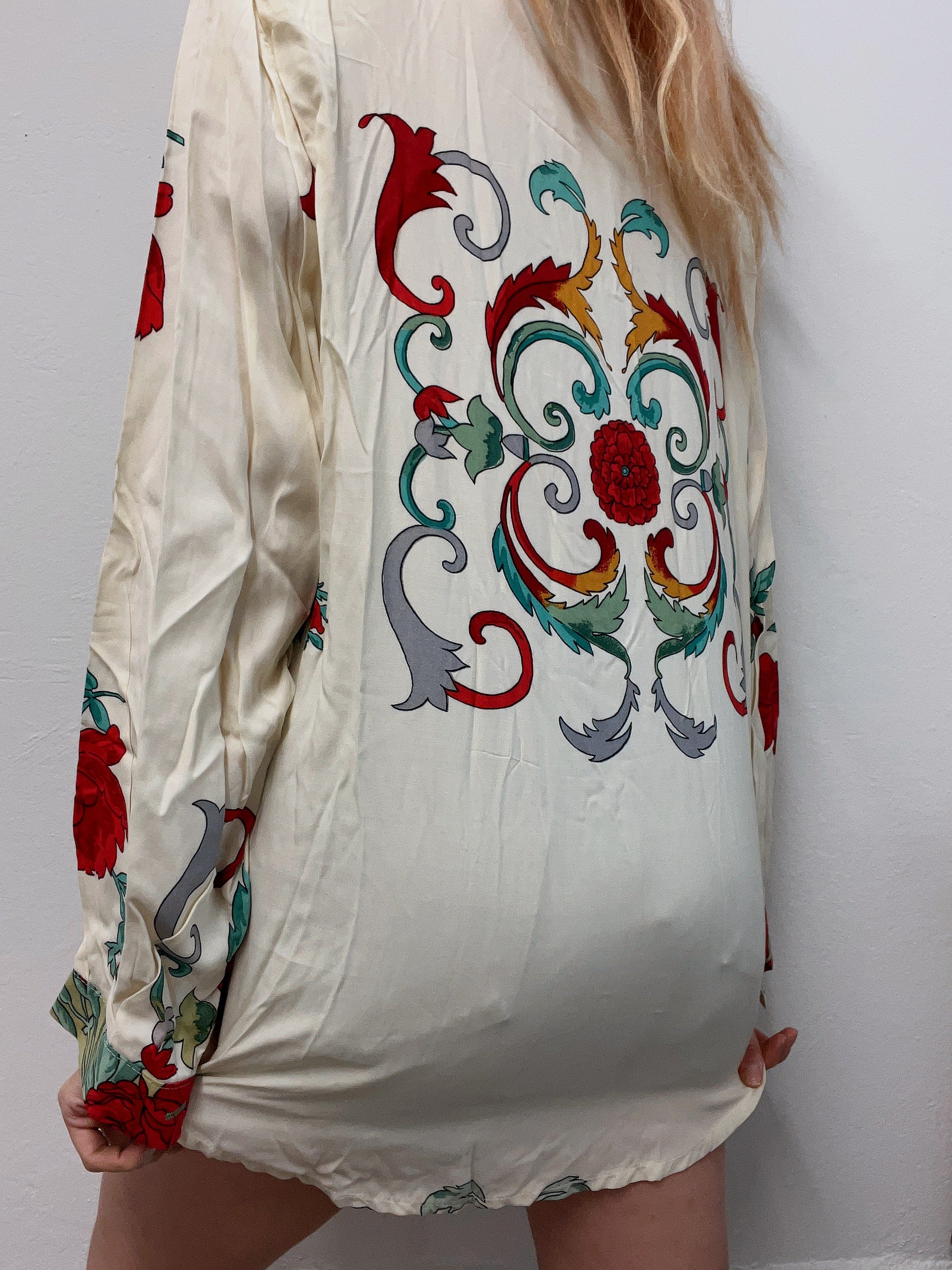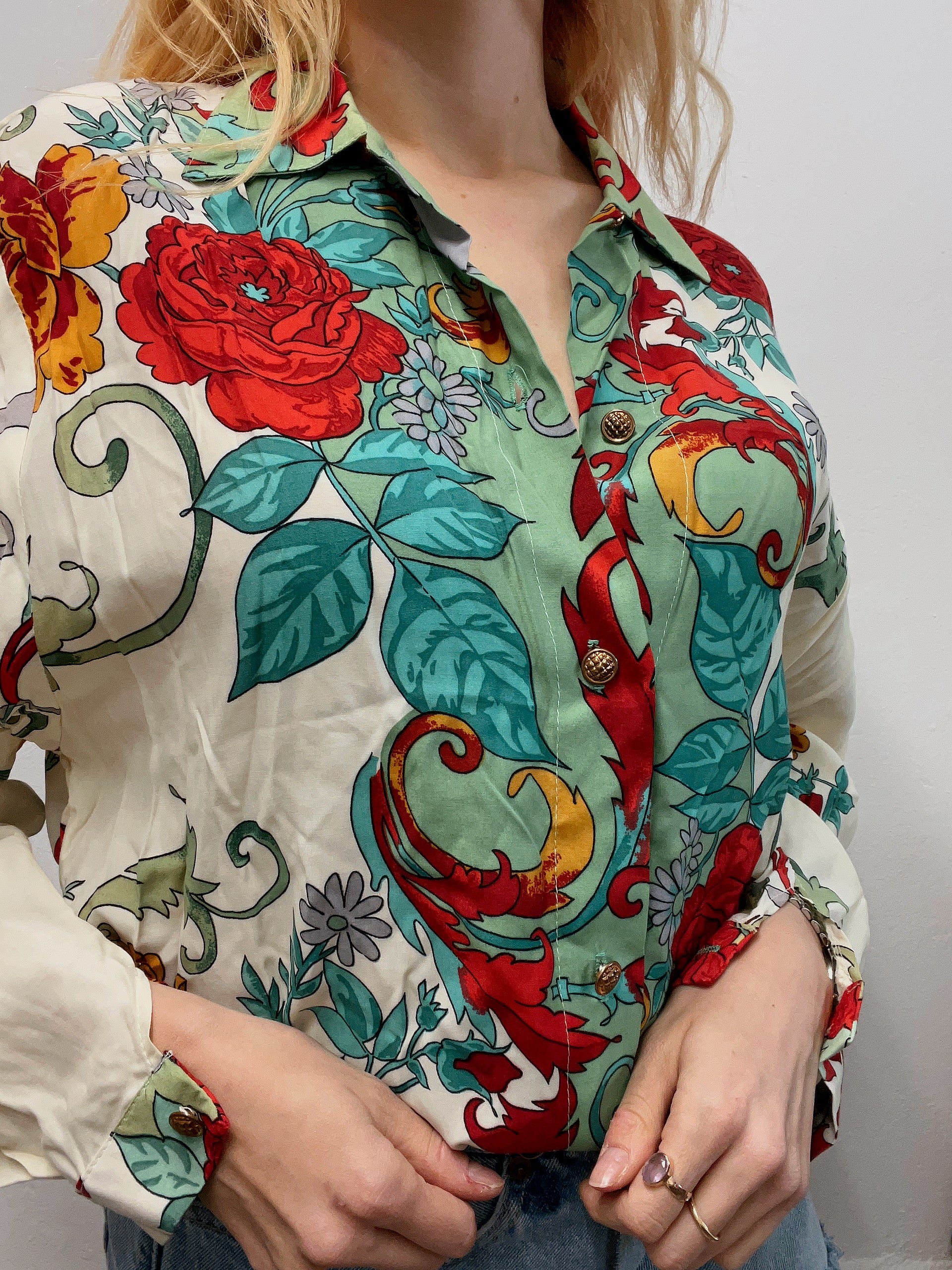Chemise vintage 80’s 90’s beige à motifs verts L