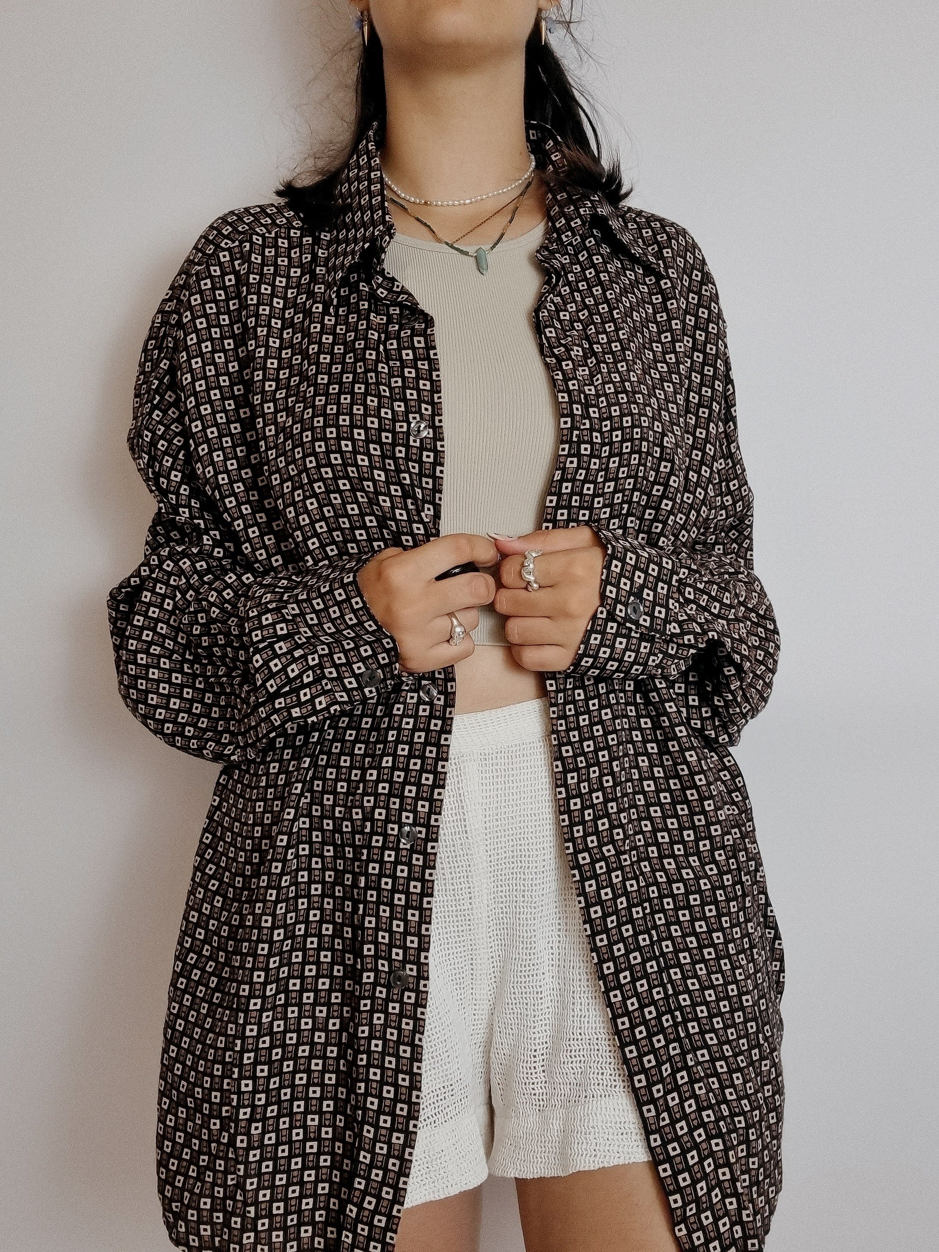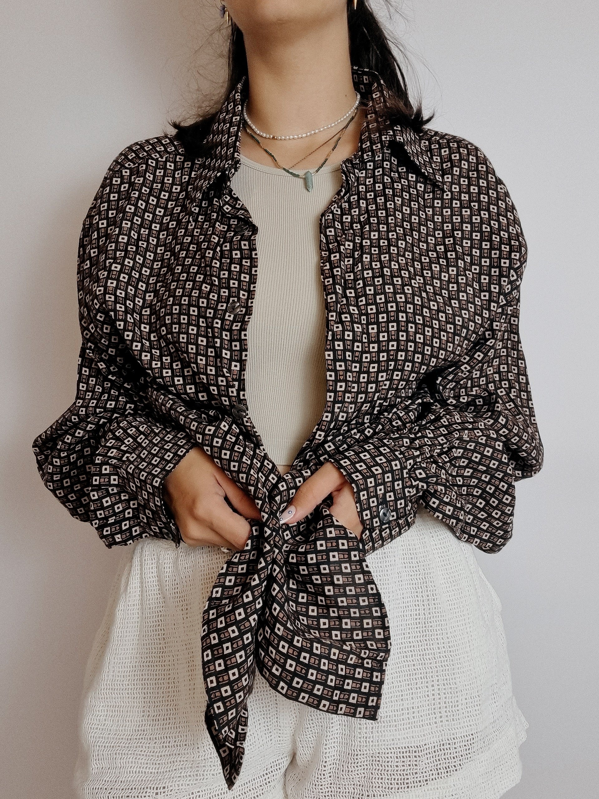 Chemise vintage 80’s 90’s brune à motifs XL