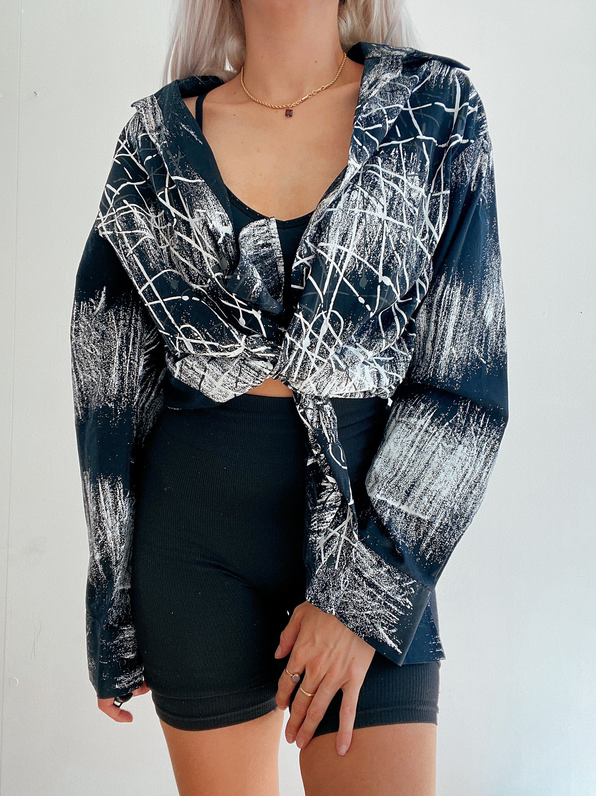 Chemise vintage 80’s 90’s noire et blanche à motifs L