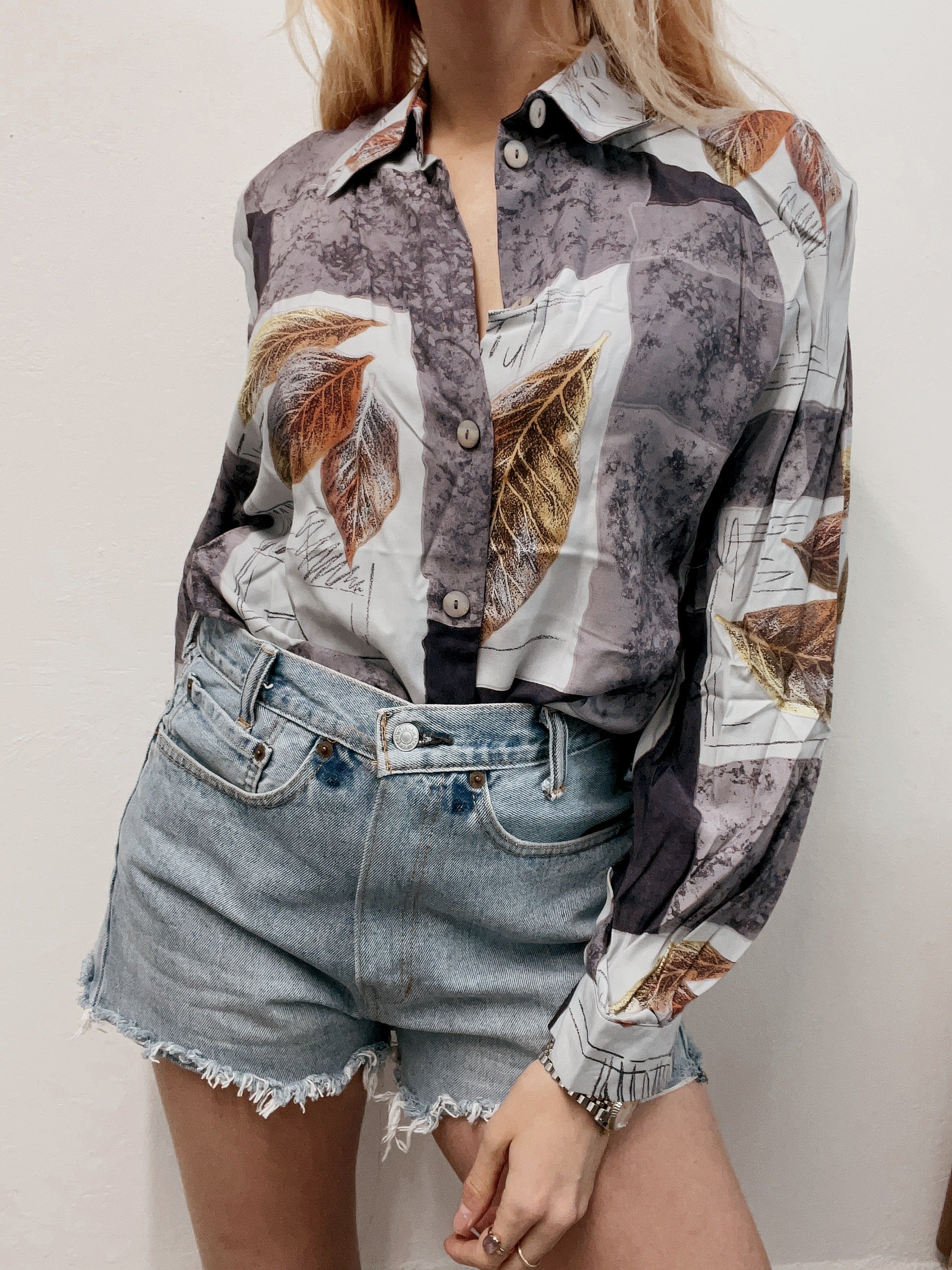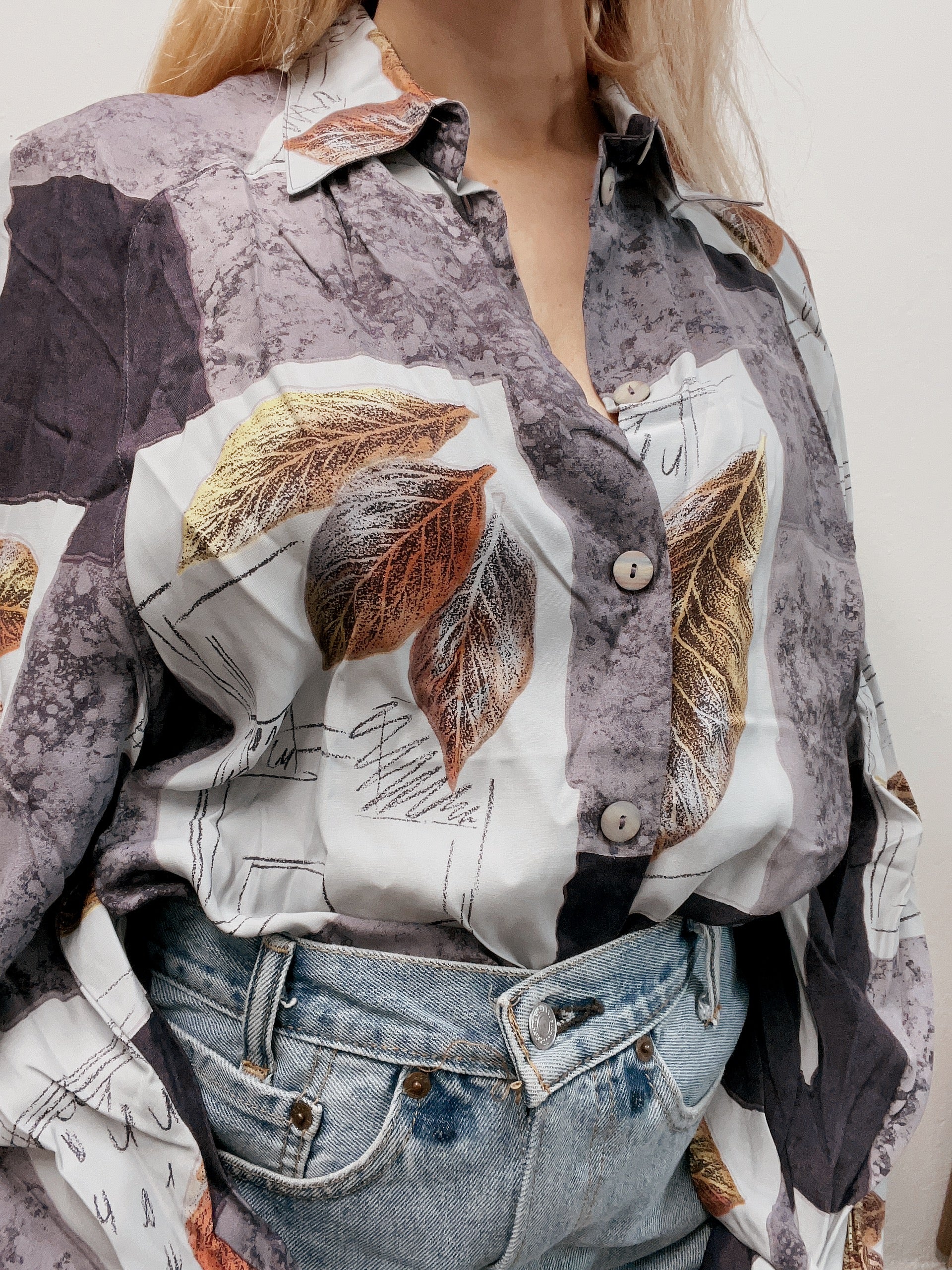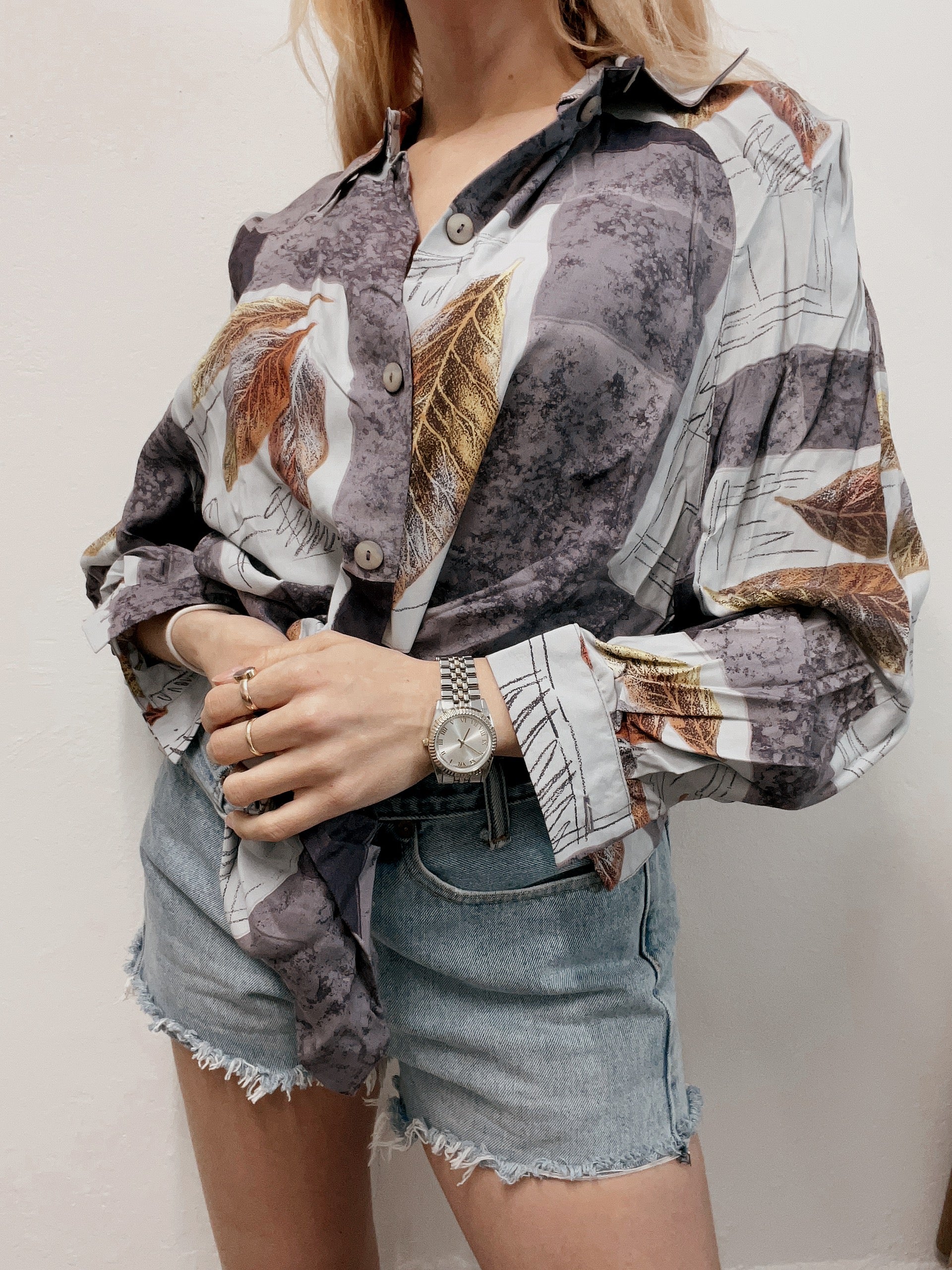 Chemise vintage 80’s 90’s violette à motifs L
