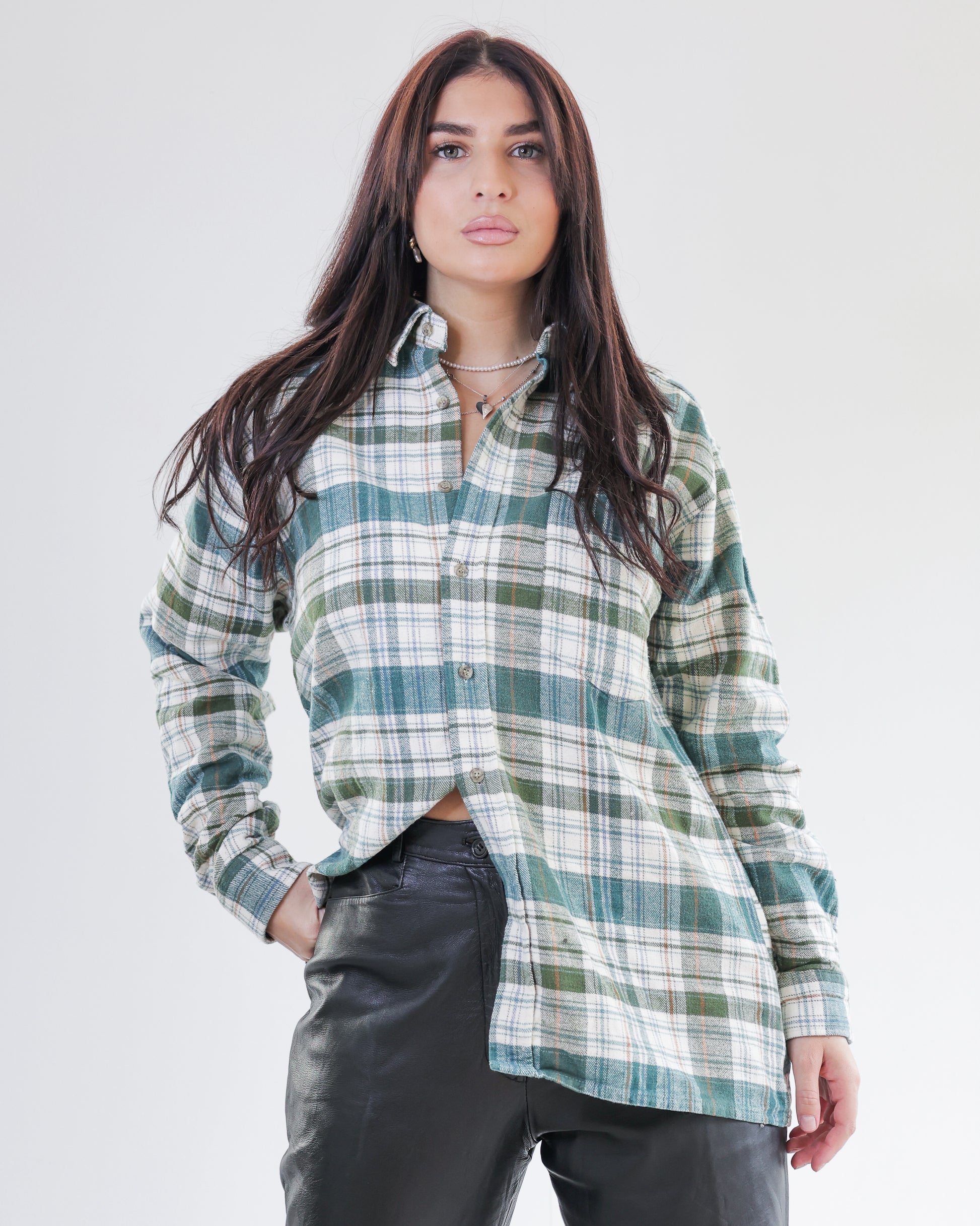 Chemise Vintage à carreaux verts et blancs L