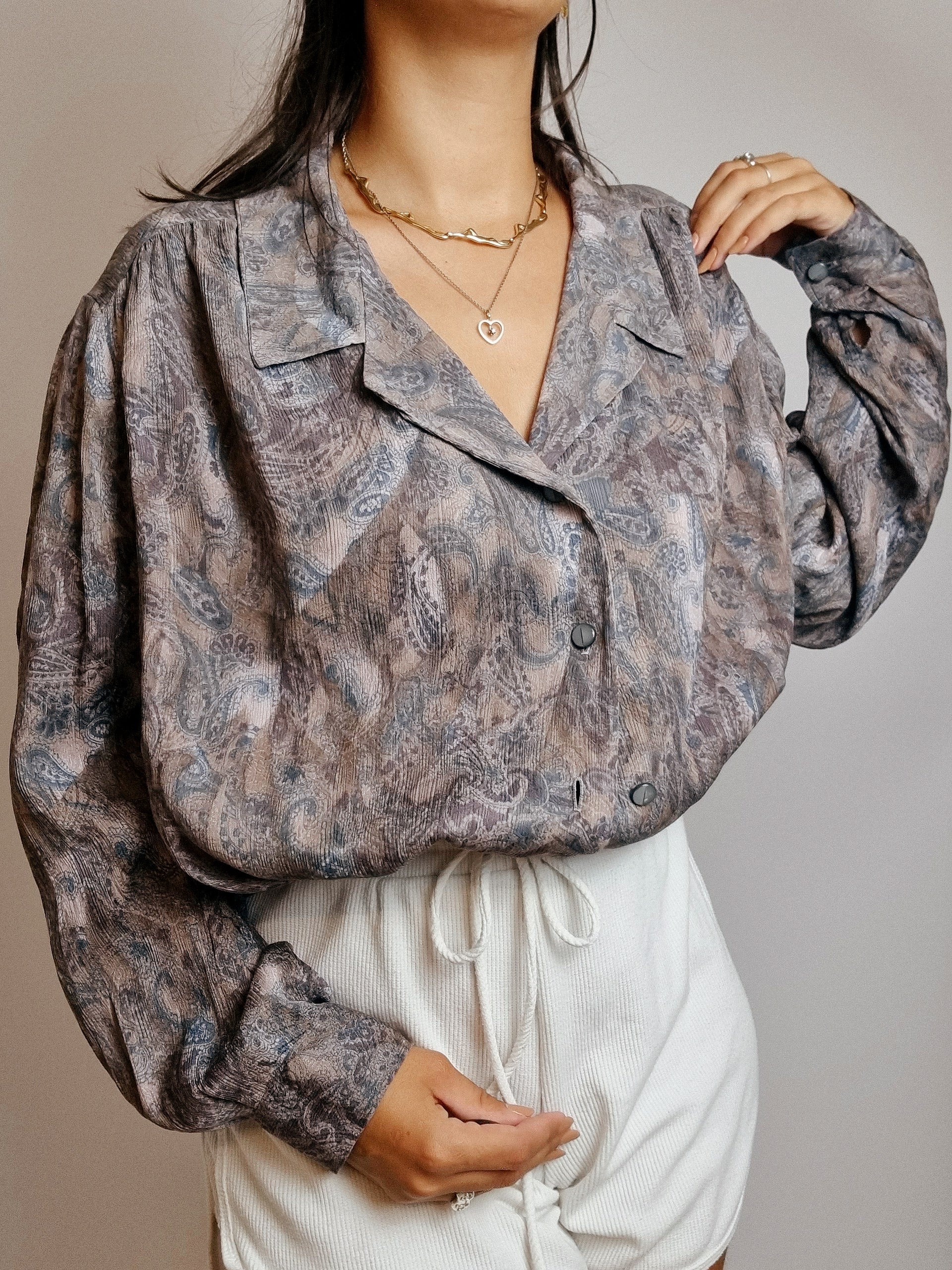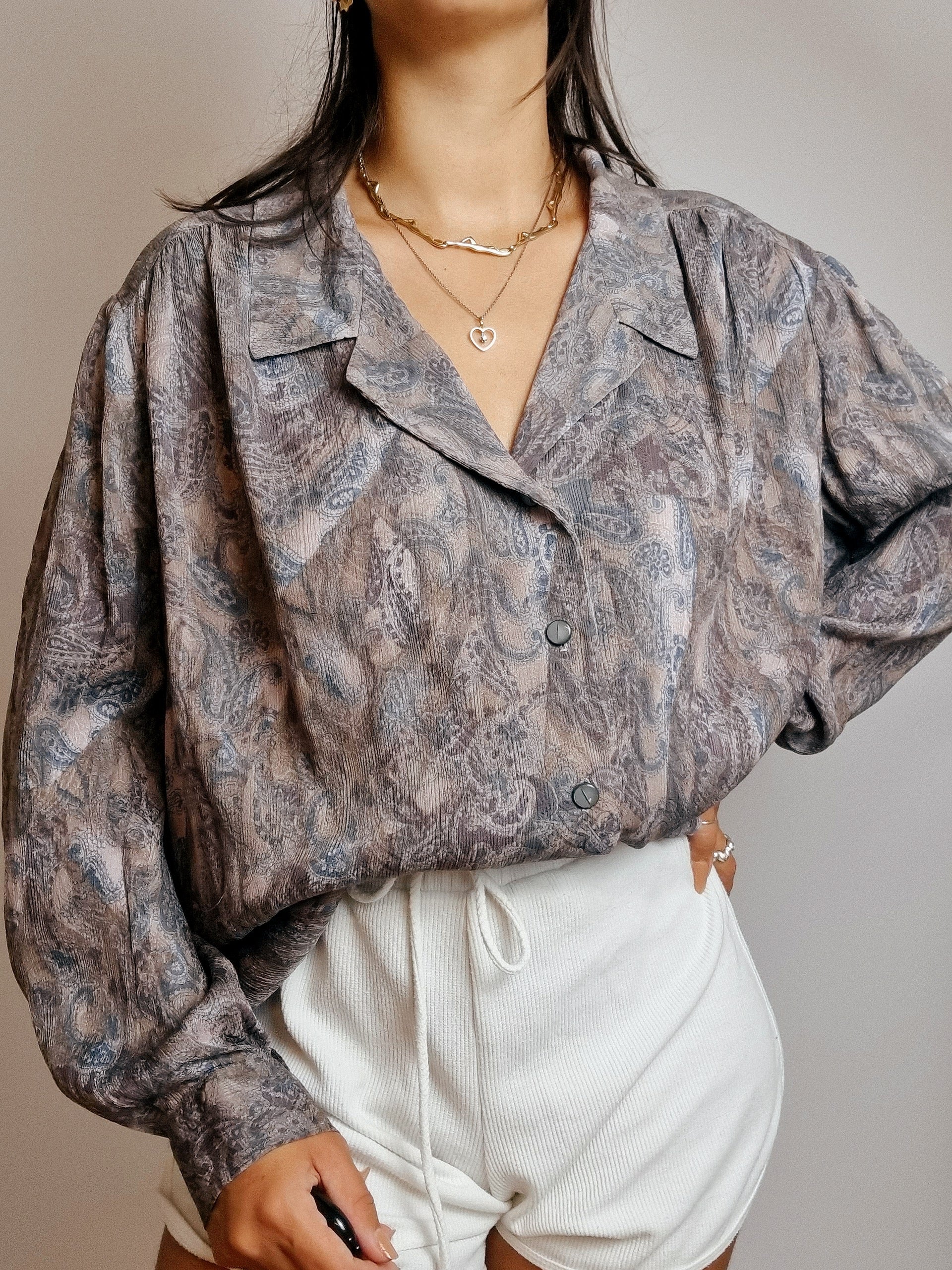 Chemise Vintage à motifs gris/bleus