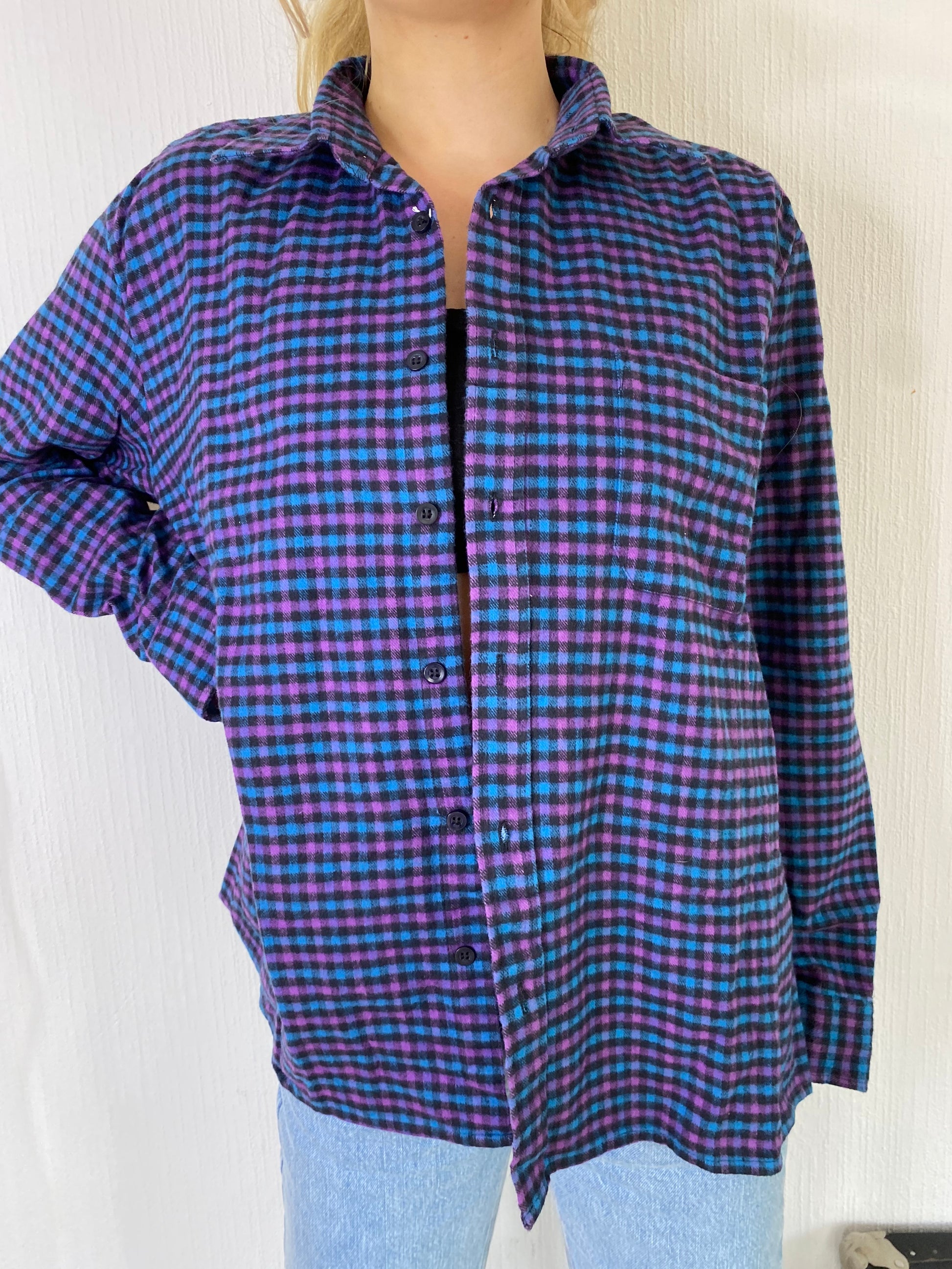Chemise Vintage à petits carreaux turquoise/rose L