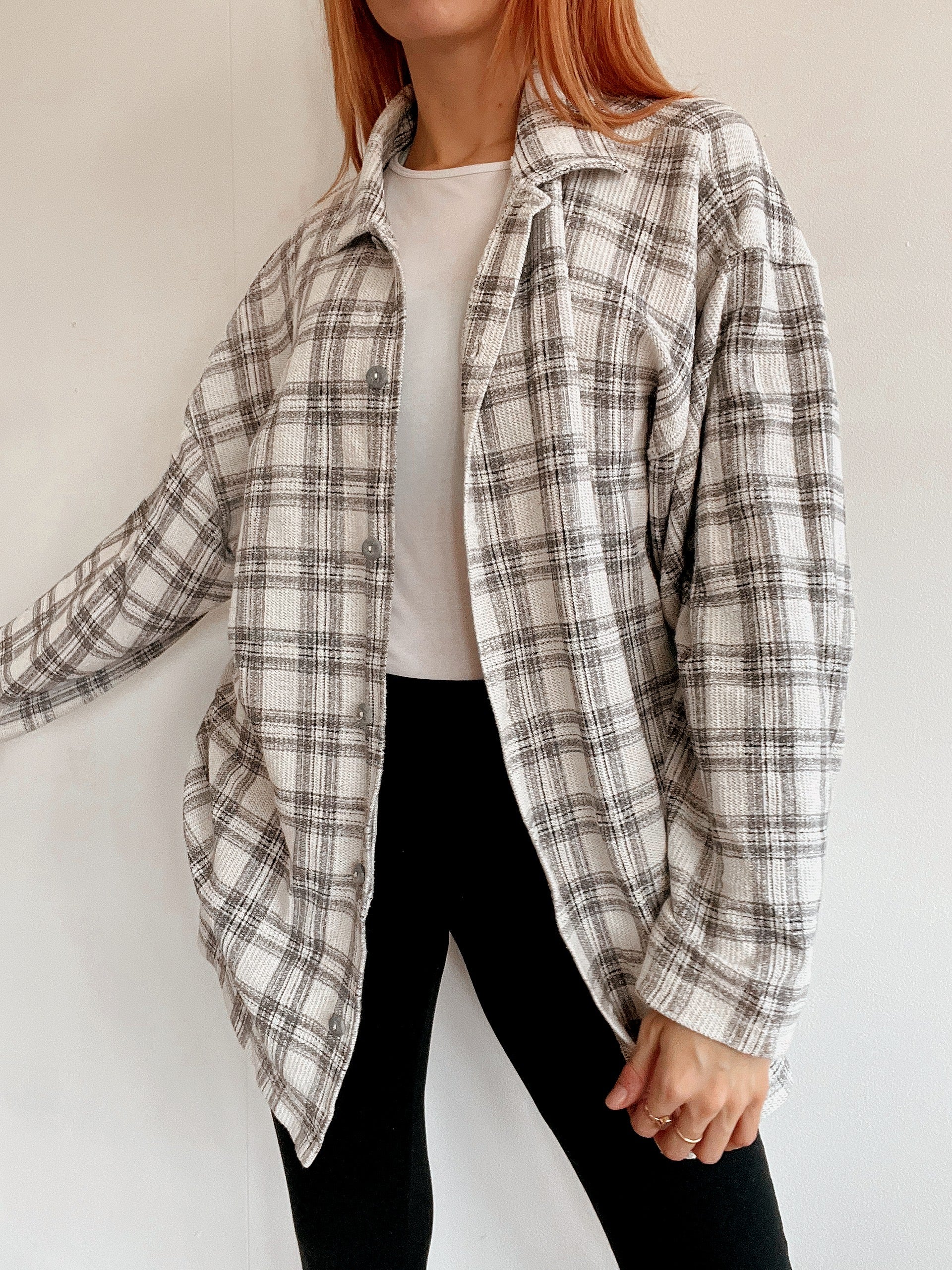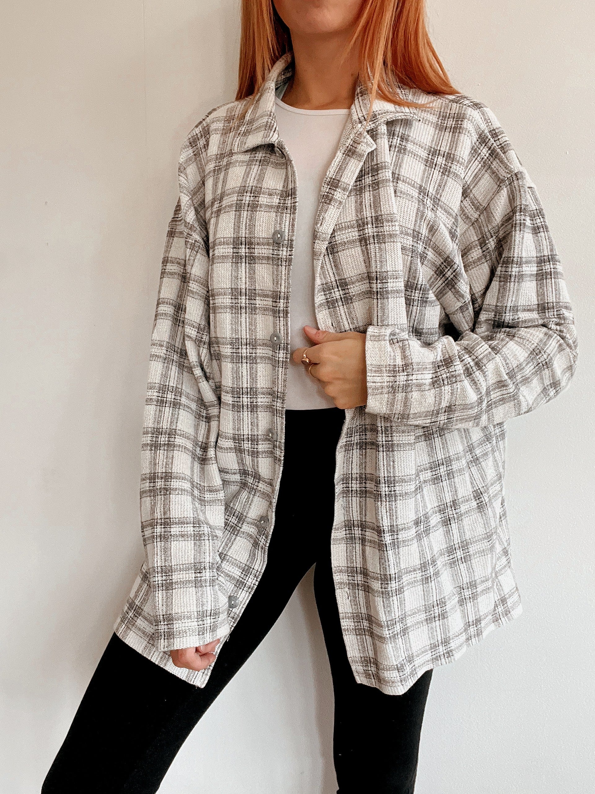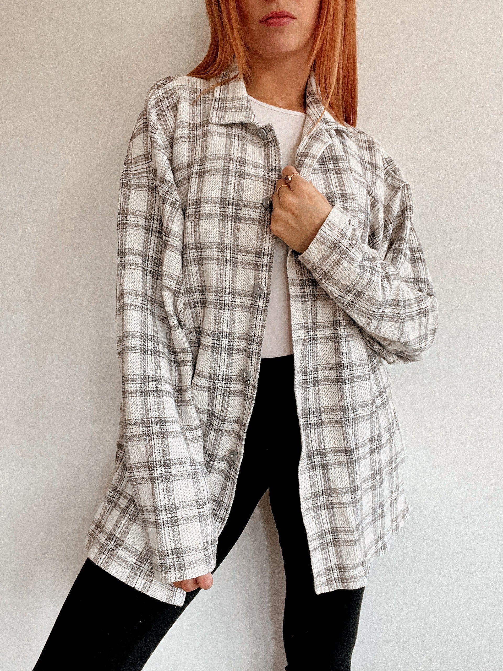 Chemise vintage beige/grise à carreaux XL
