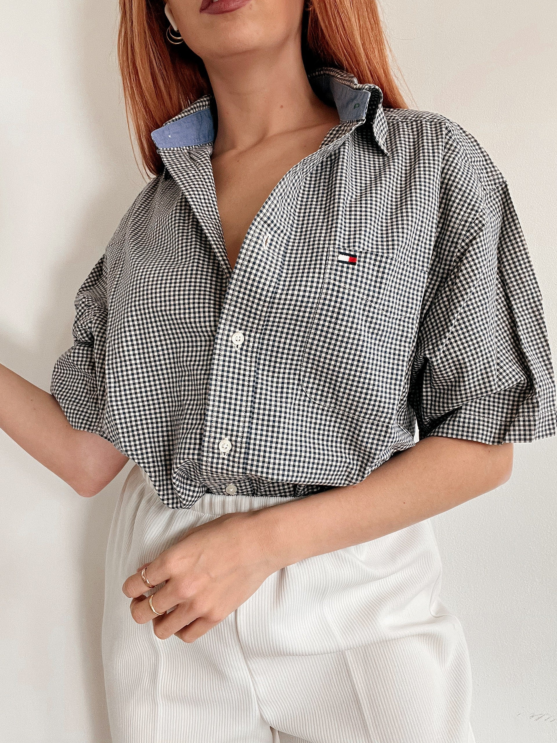Chemise vintage blanc et bleu Tommy Hilfiger S