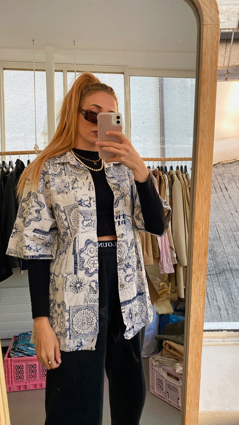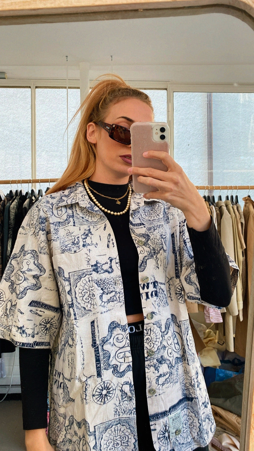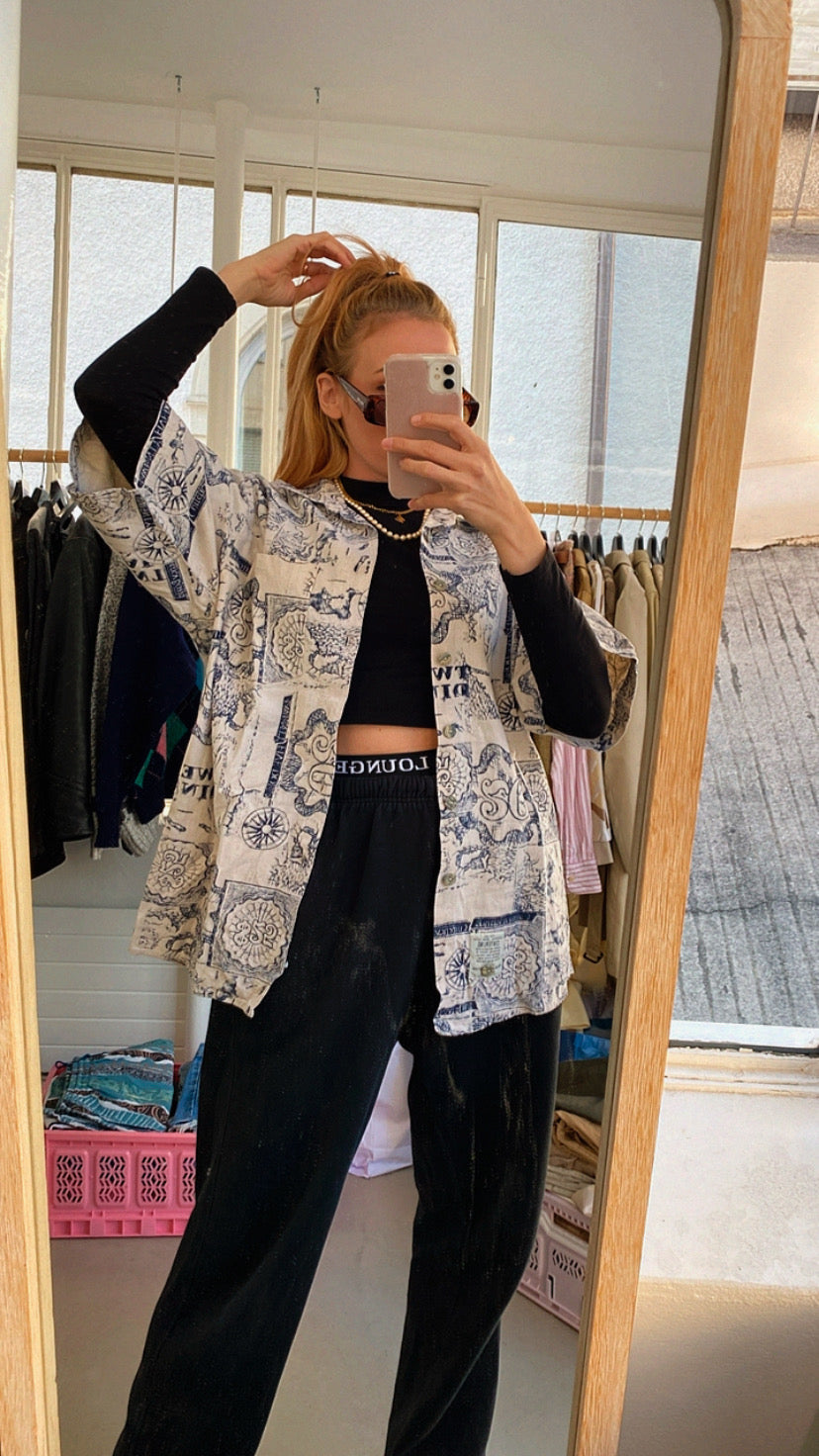 Chemise Vintage beige et bleue à motifs XL
