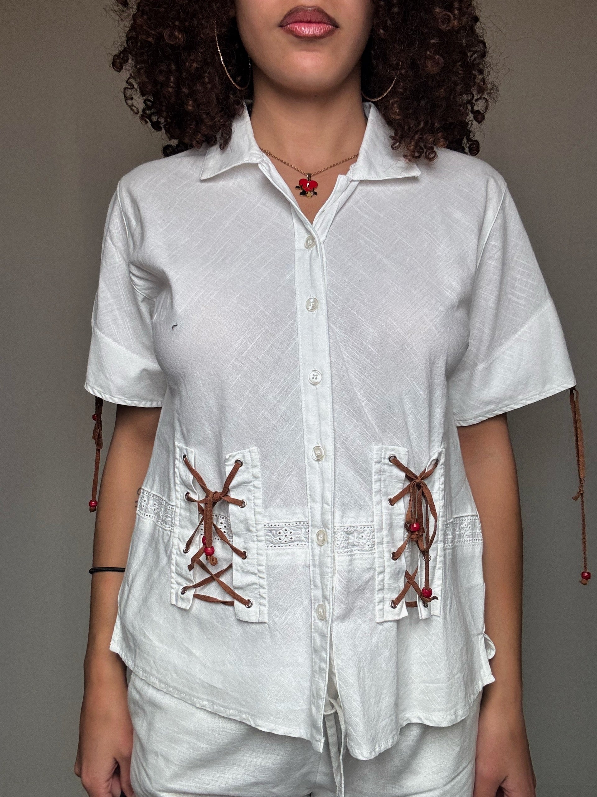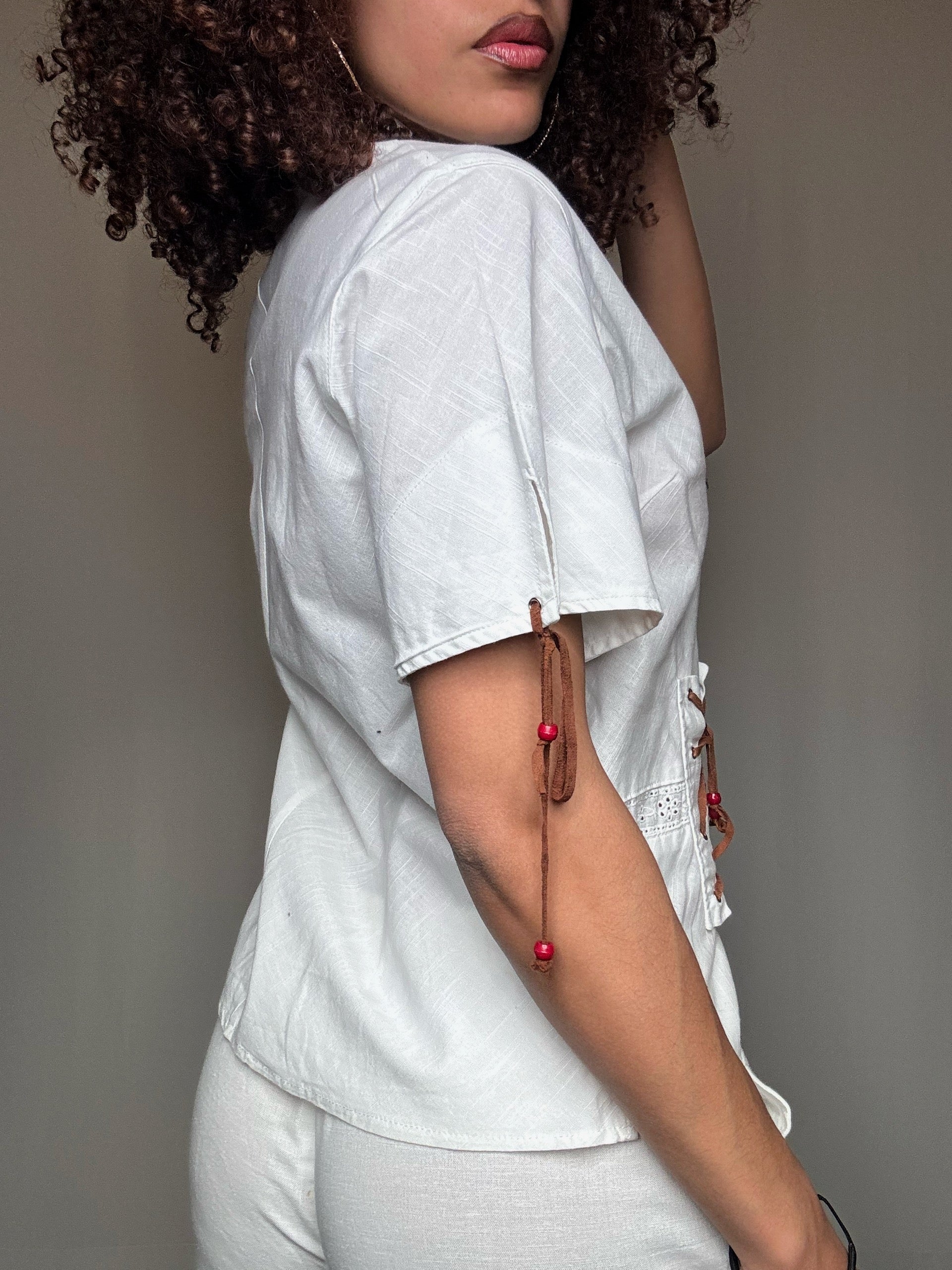 Chemisier en coton blanc avec détail M vintage