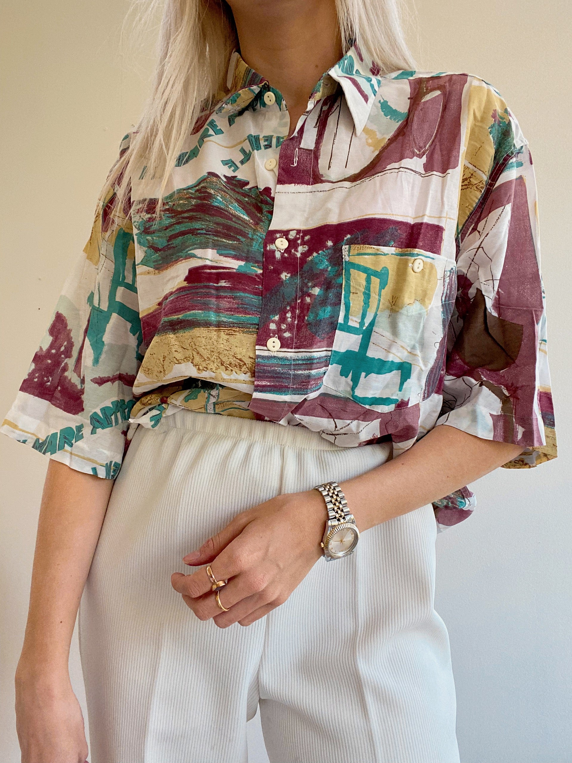 Chemise Vintage 80/90s à motifs blanches et Bordeaux