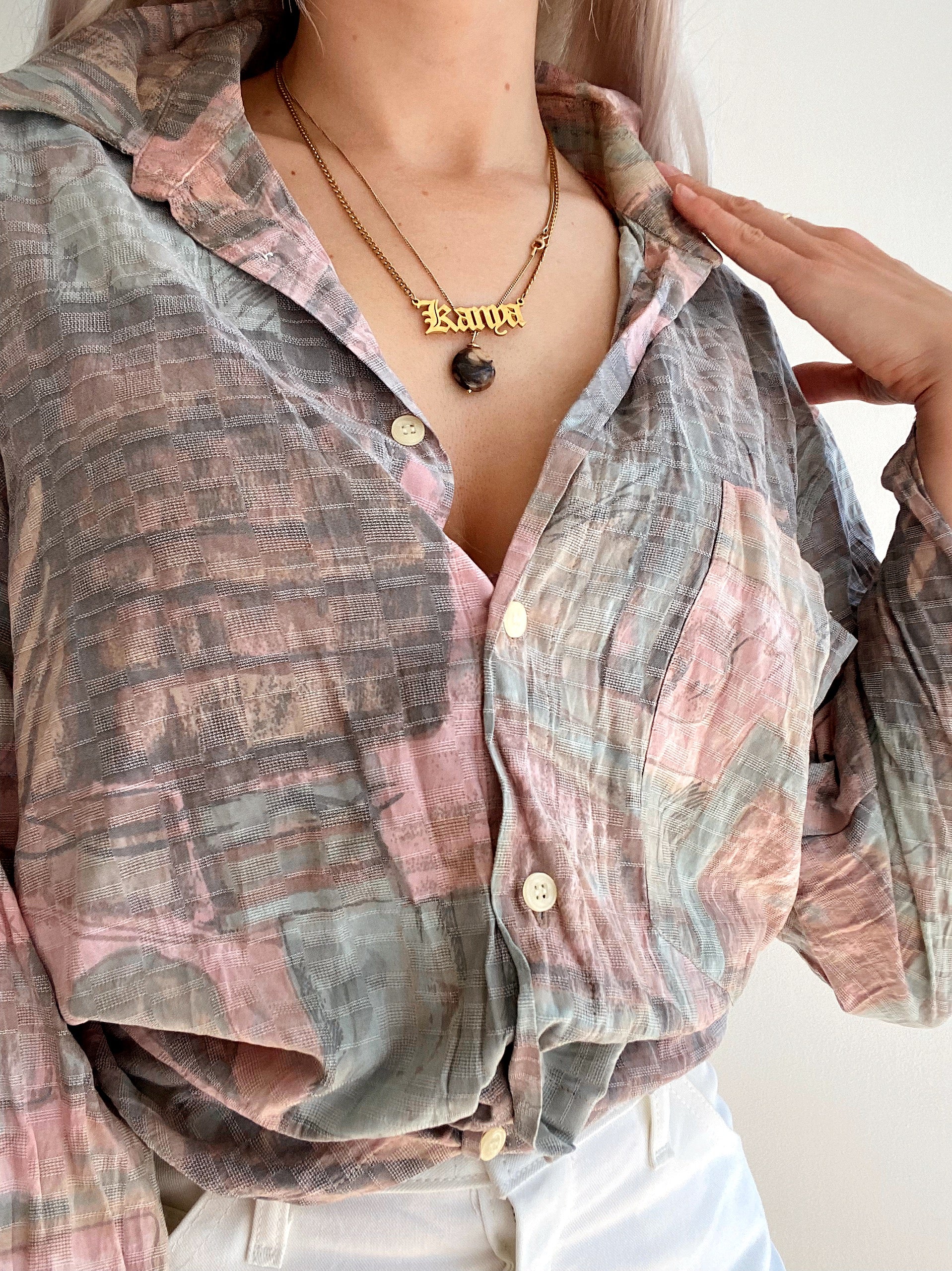 Chemise Vintage 80/90s rose pâle à motifs