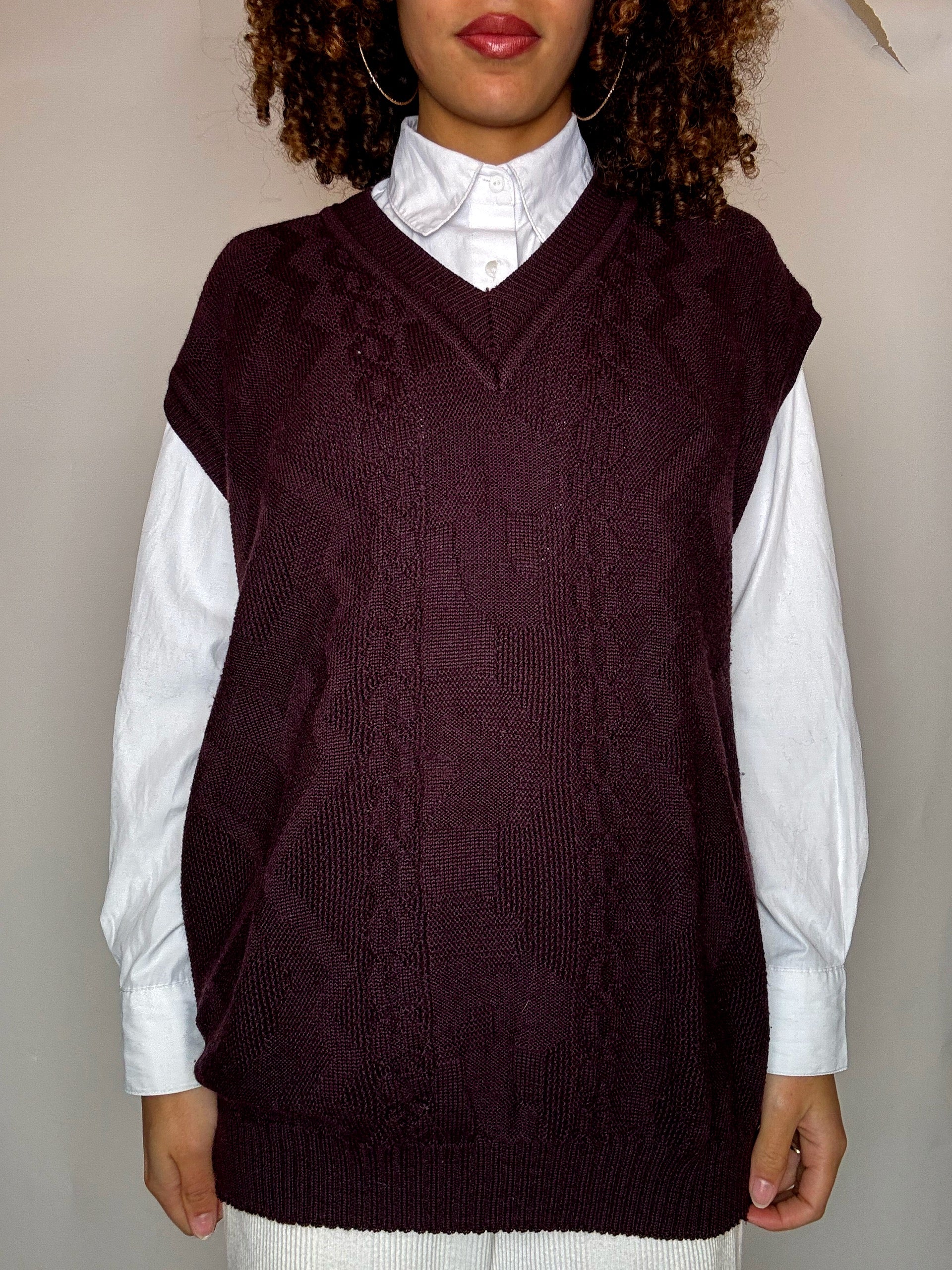Gilet col V bordeaux XL vintage