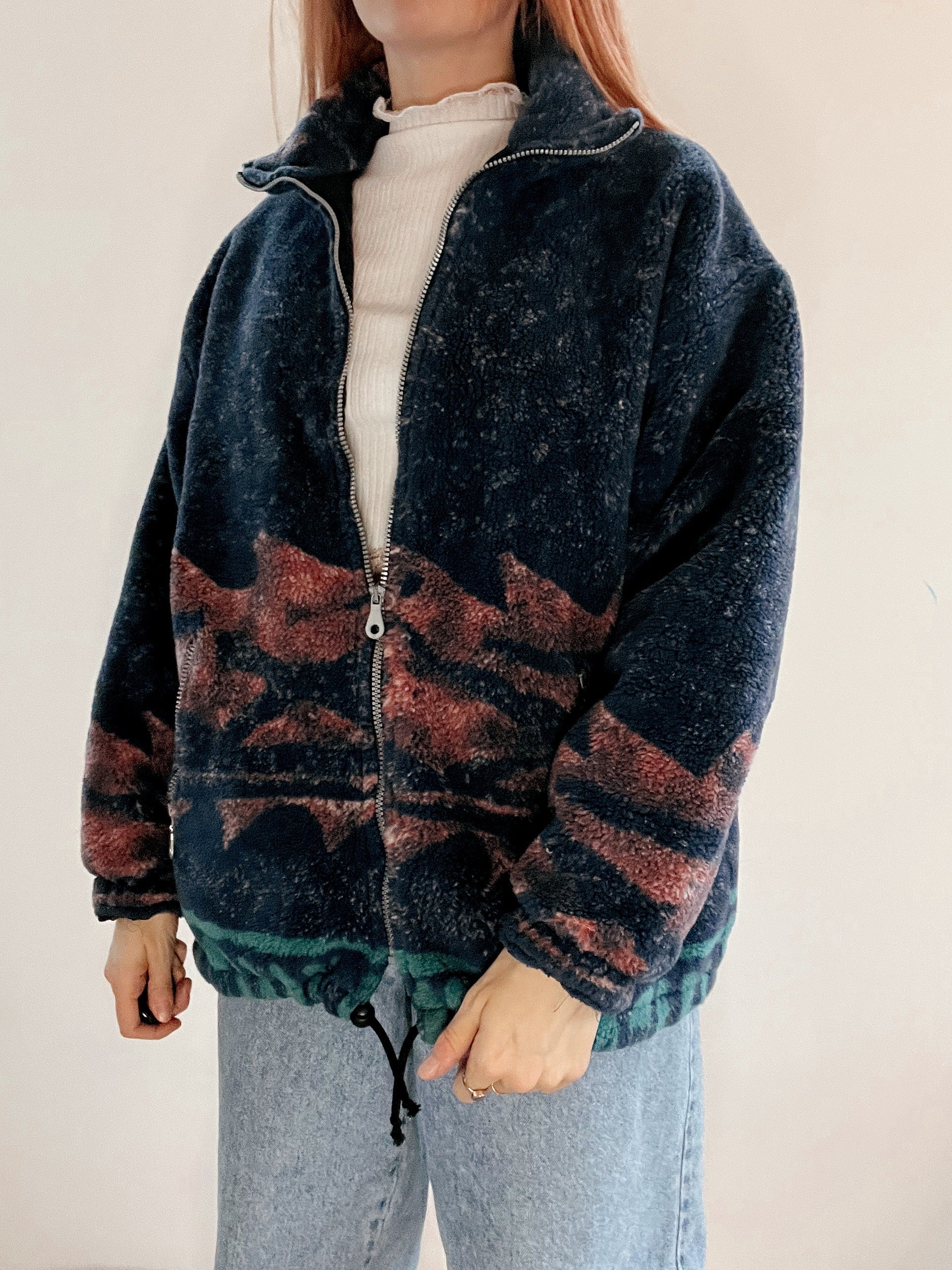 Veste polaire vintage bleue foncée à motifs M