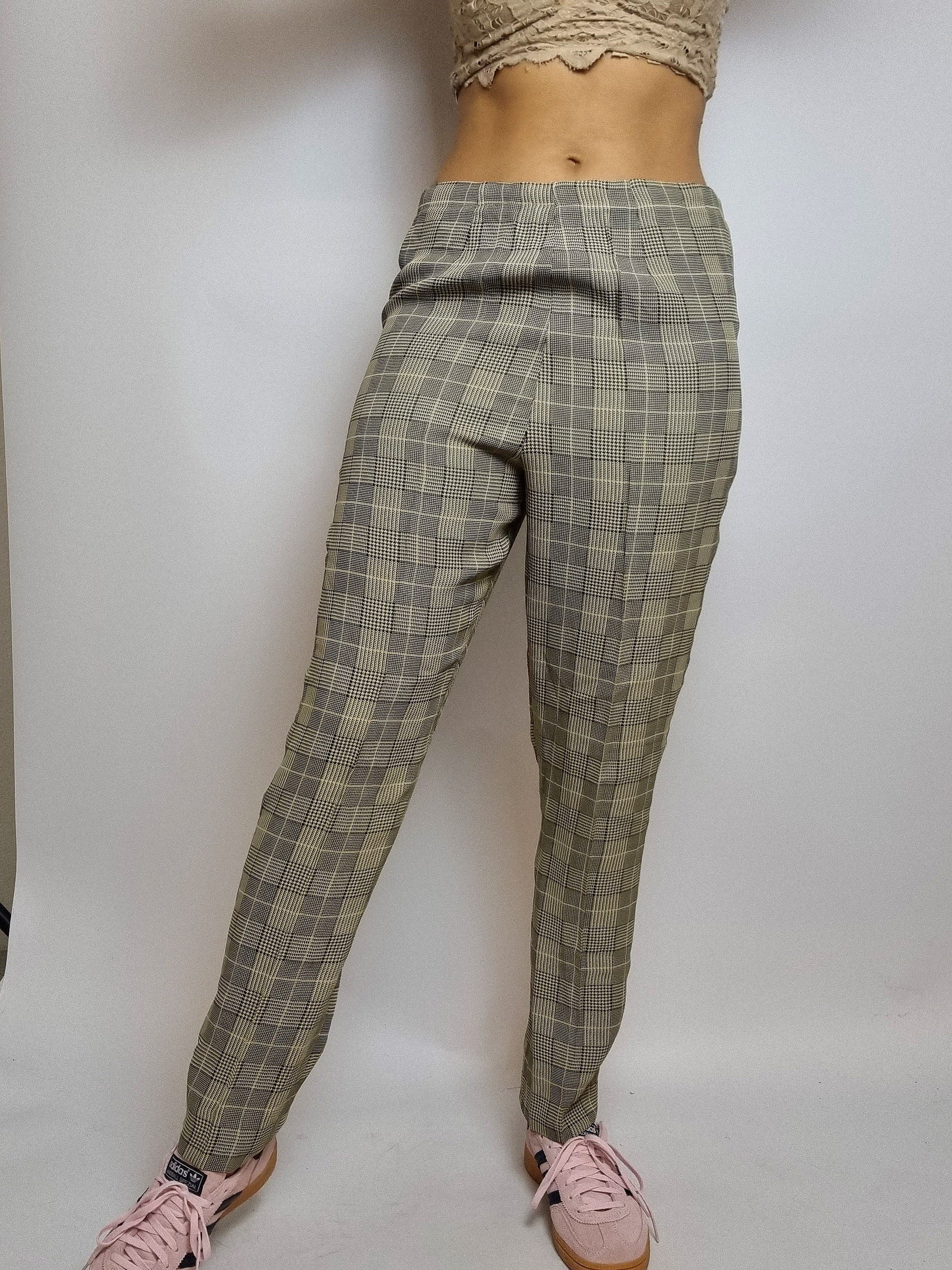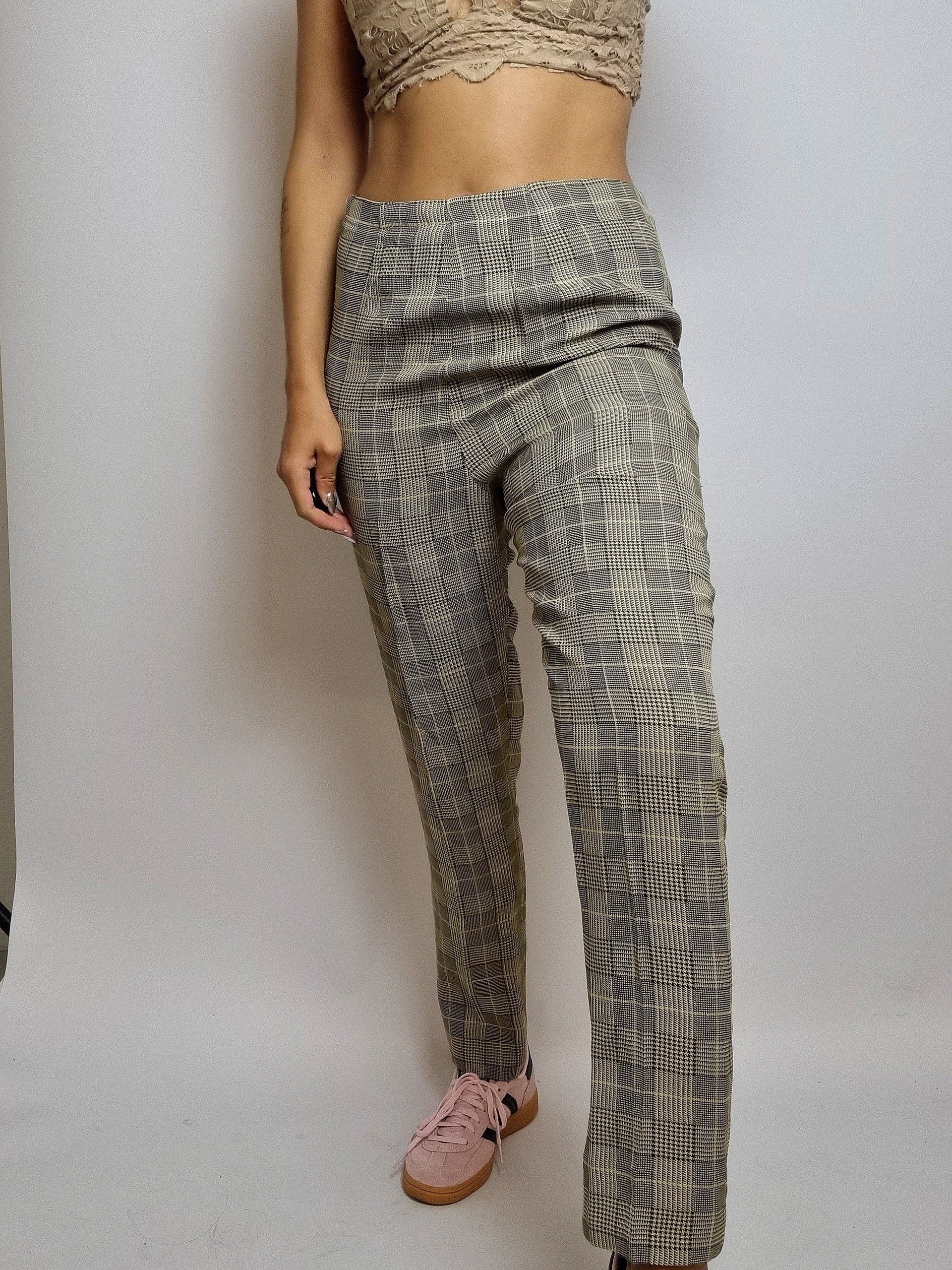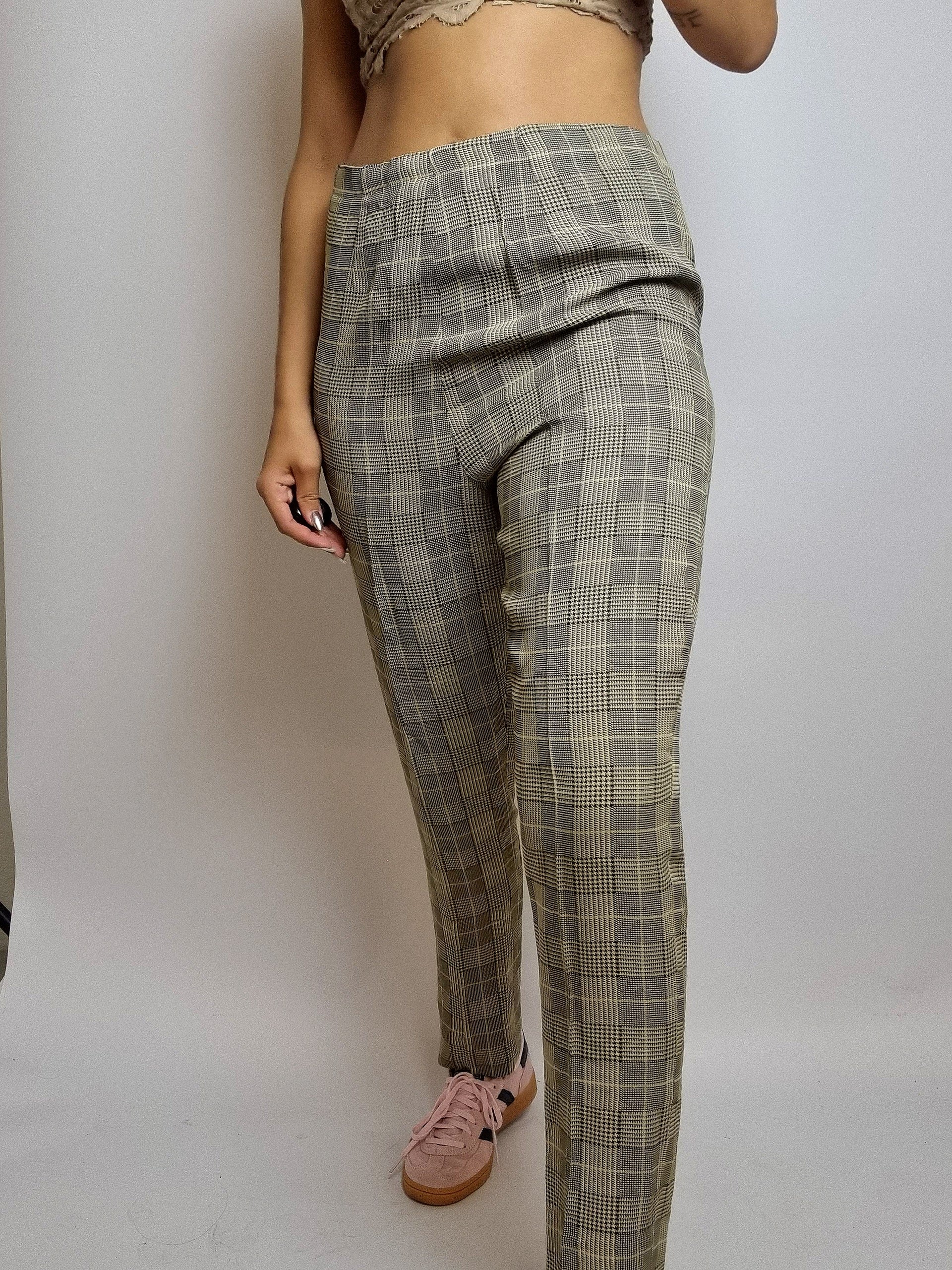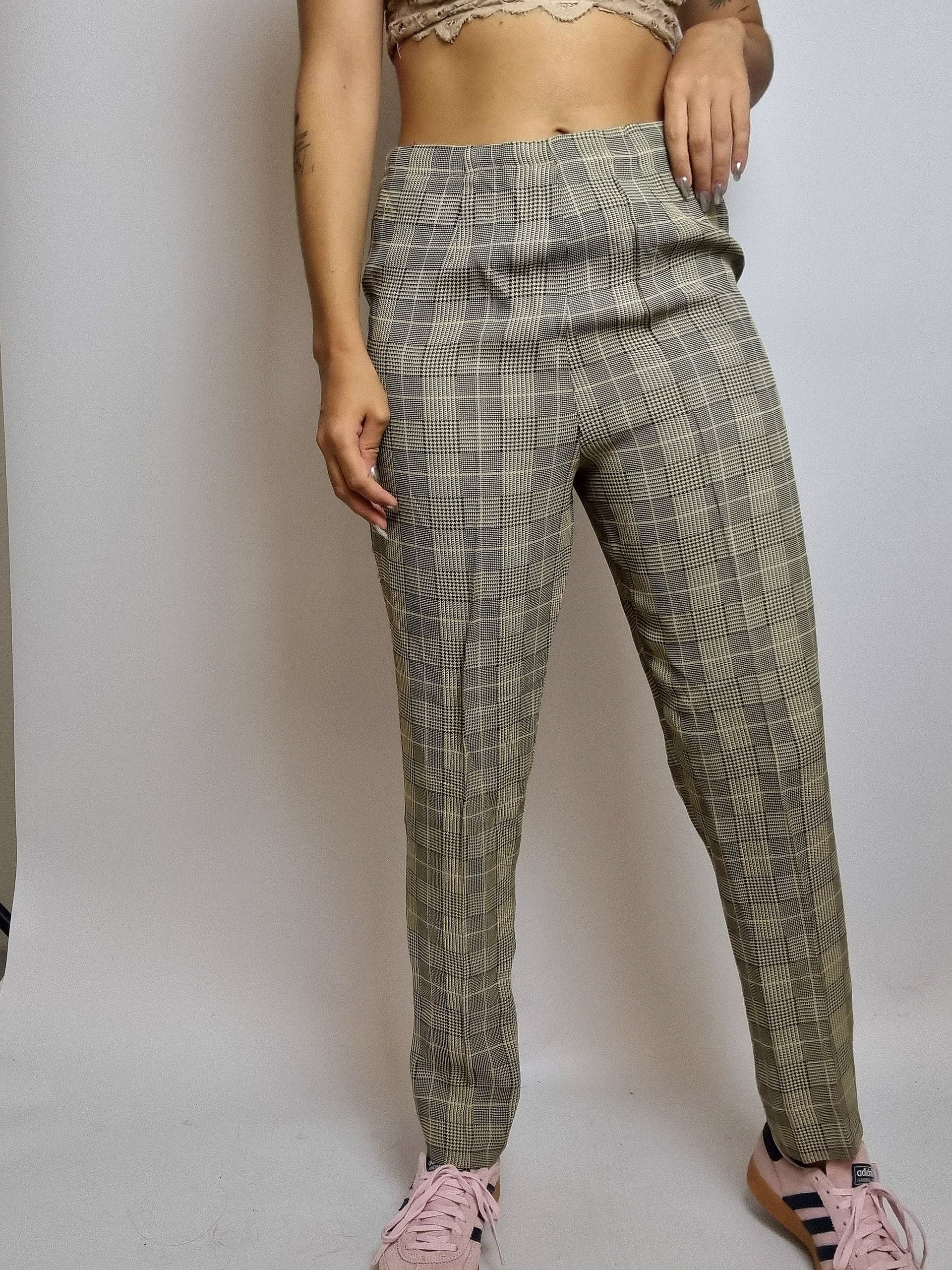Pantalon vintage beige à carreaux taille haute M