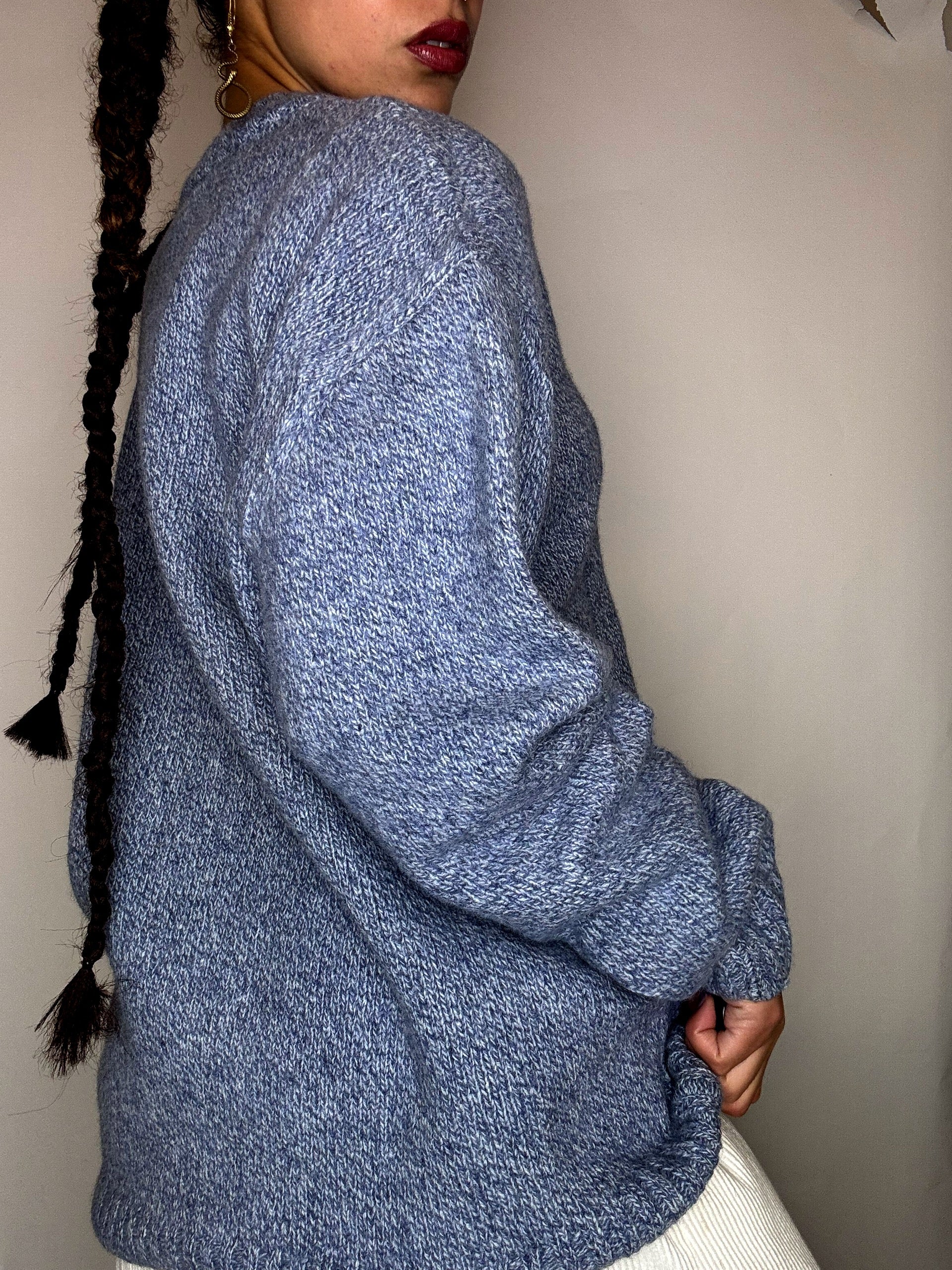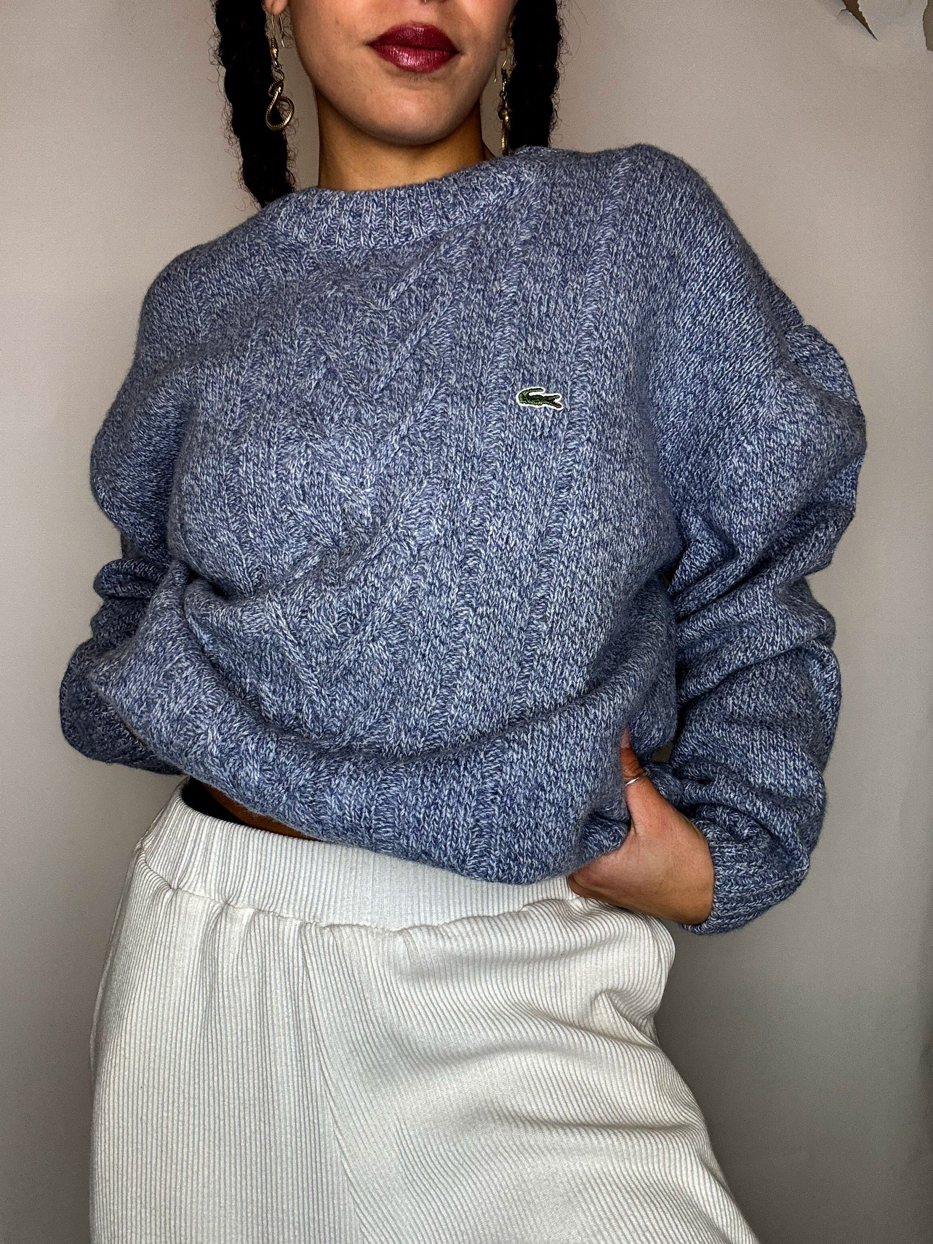 Pull a col rond bleu ciel tressé LACOSTE L/XL vintage