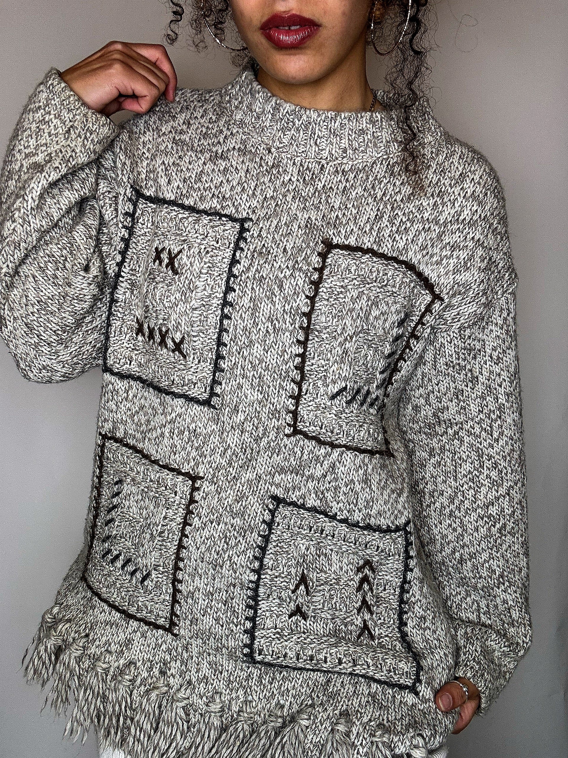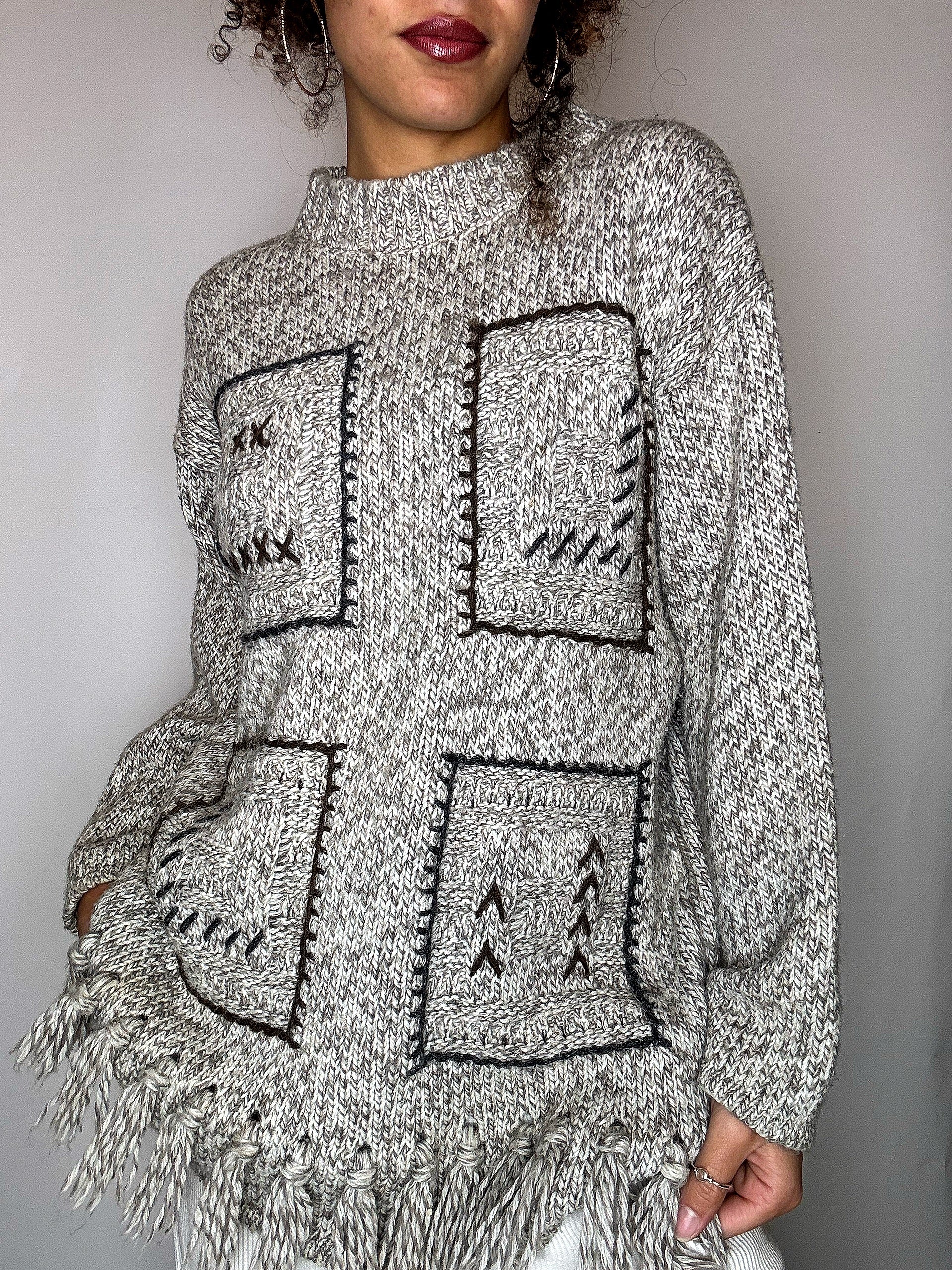Pull à franges beige M vintage