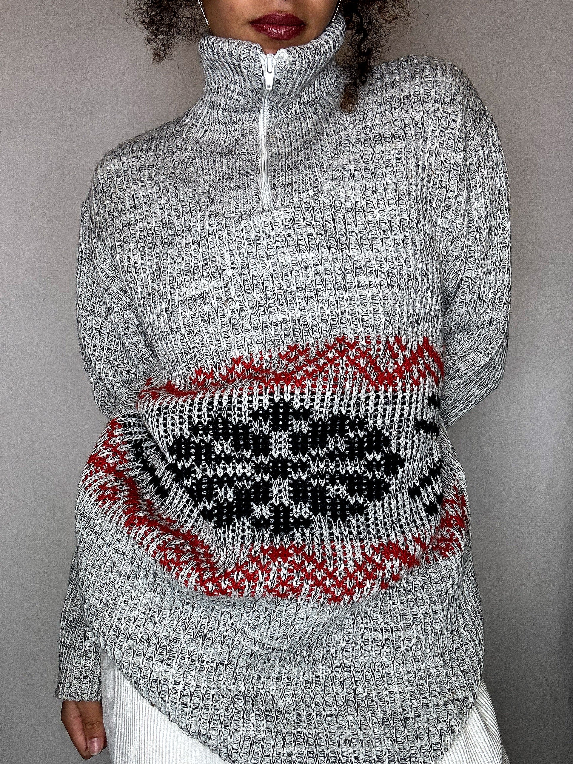 Pull col cheminée gris et rouge XL vintage