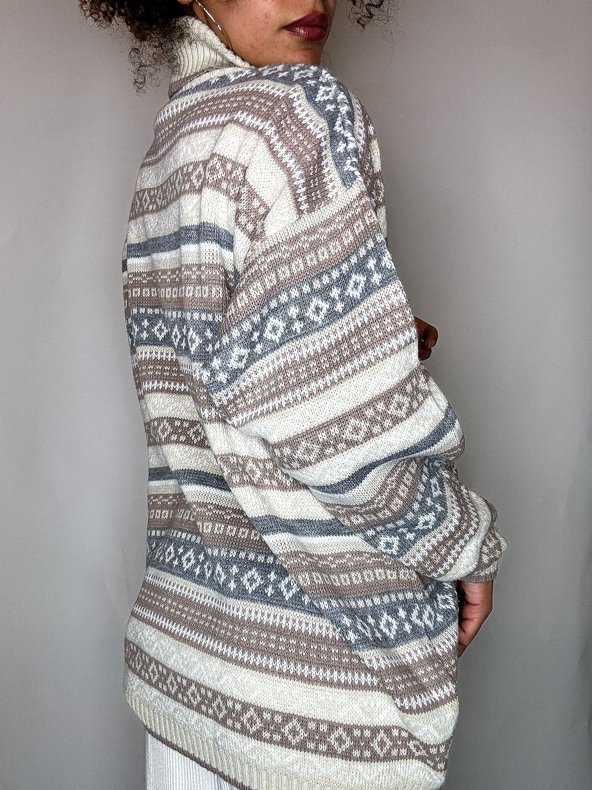 Pull col roulé graphique S vintage