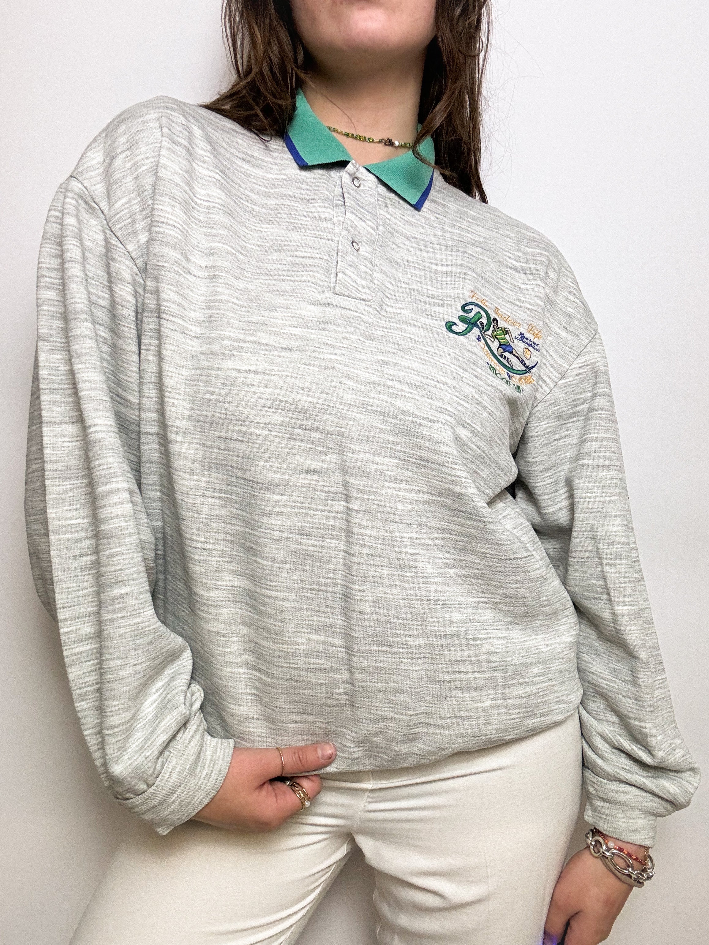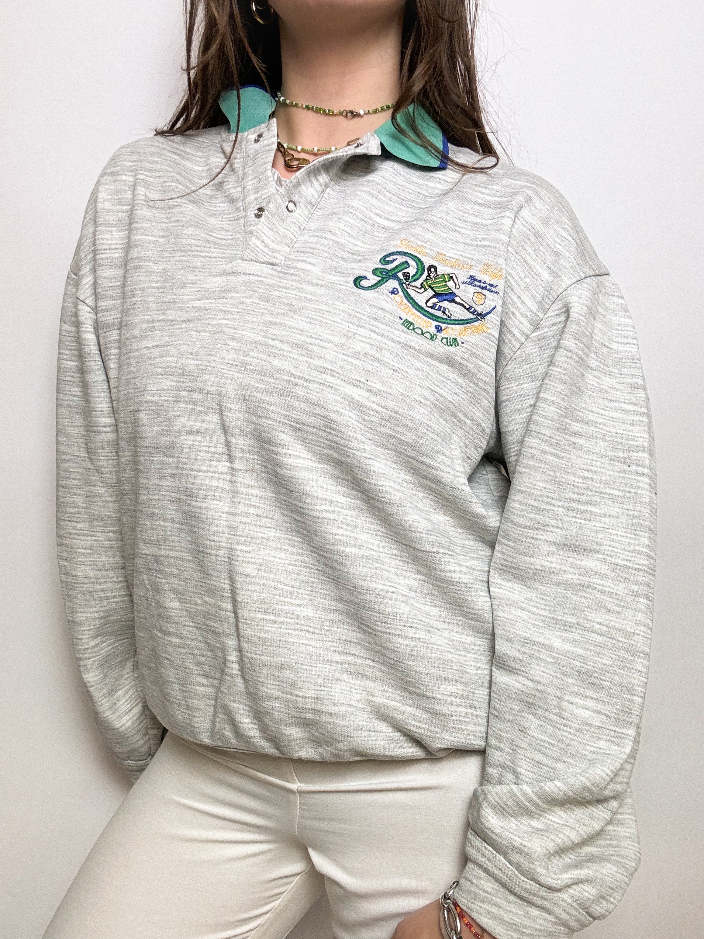 Pull gris à col vintage M